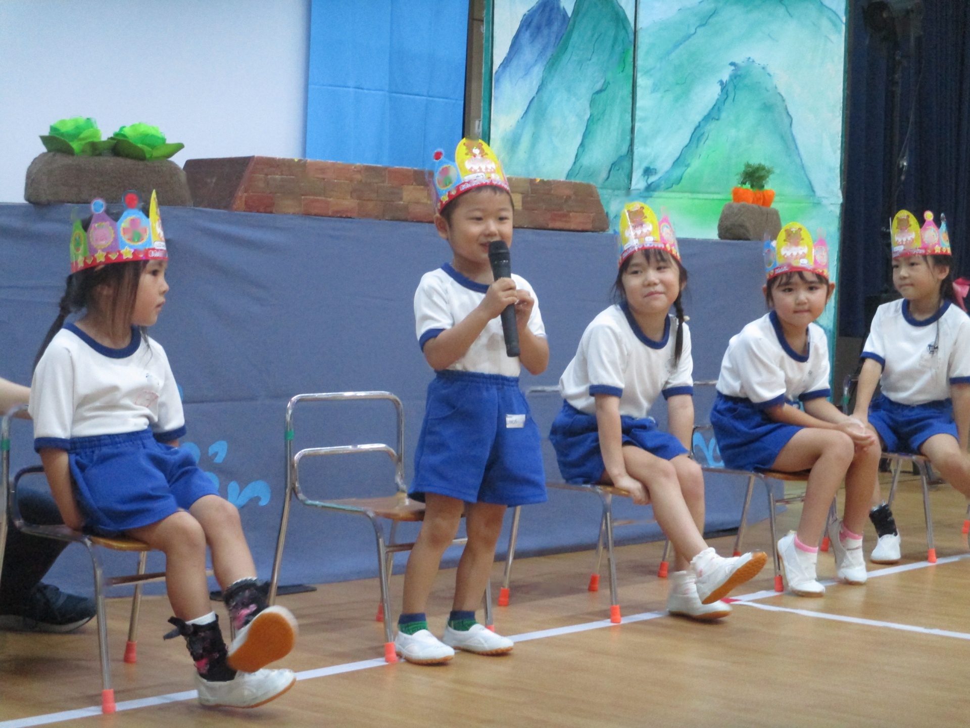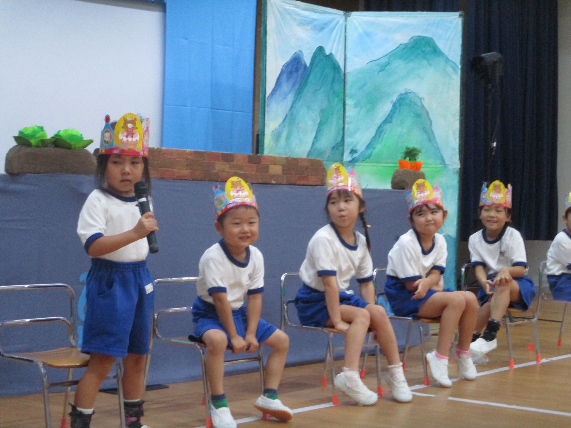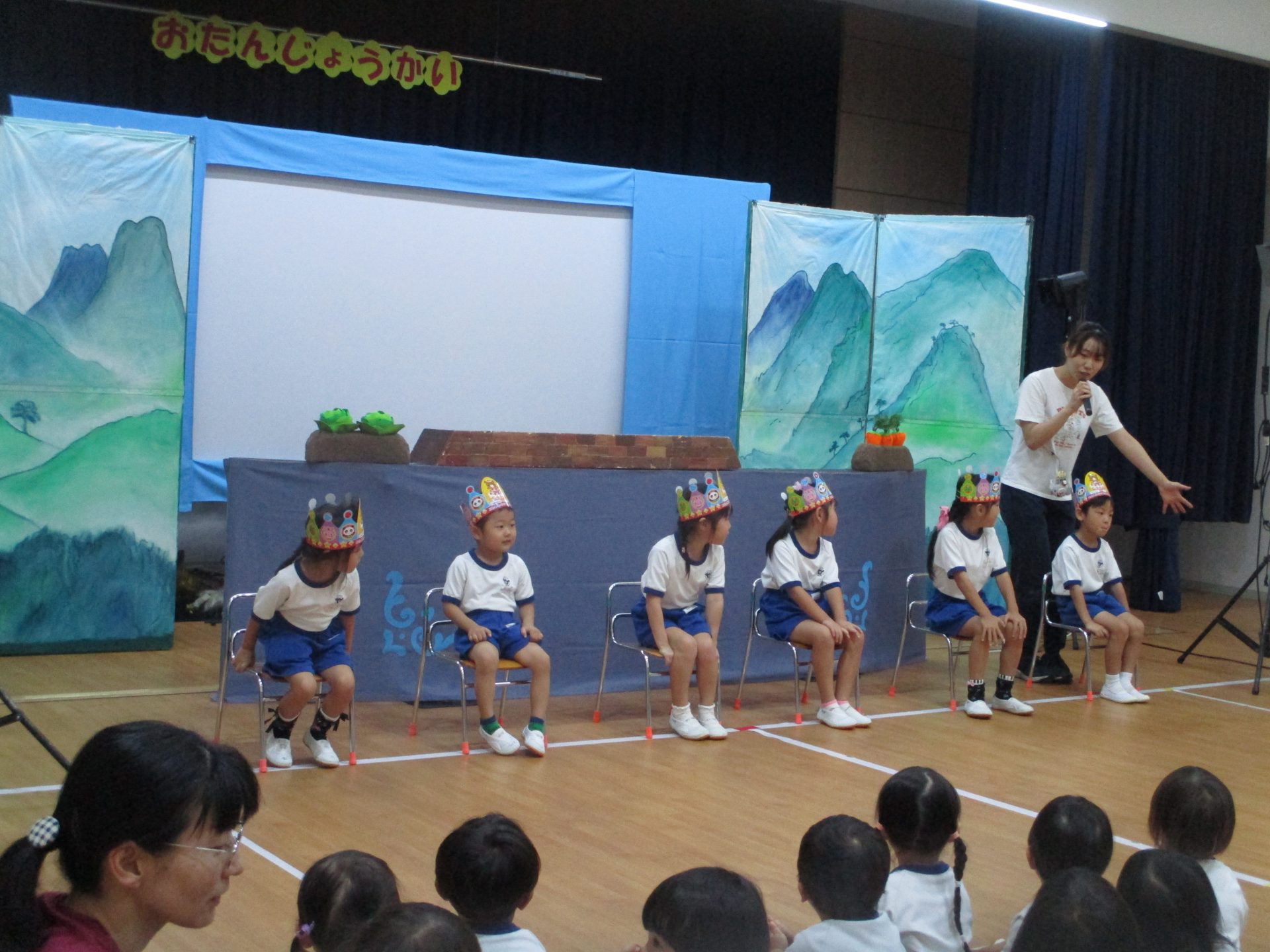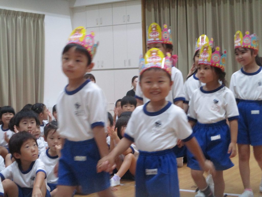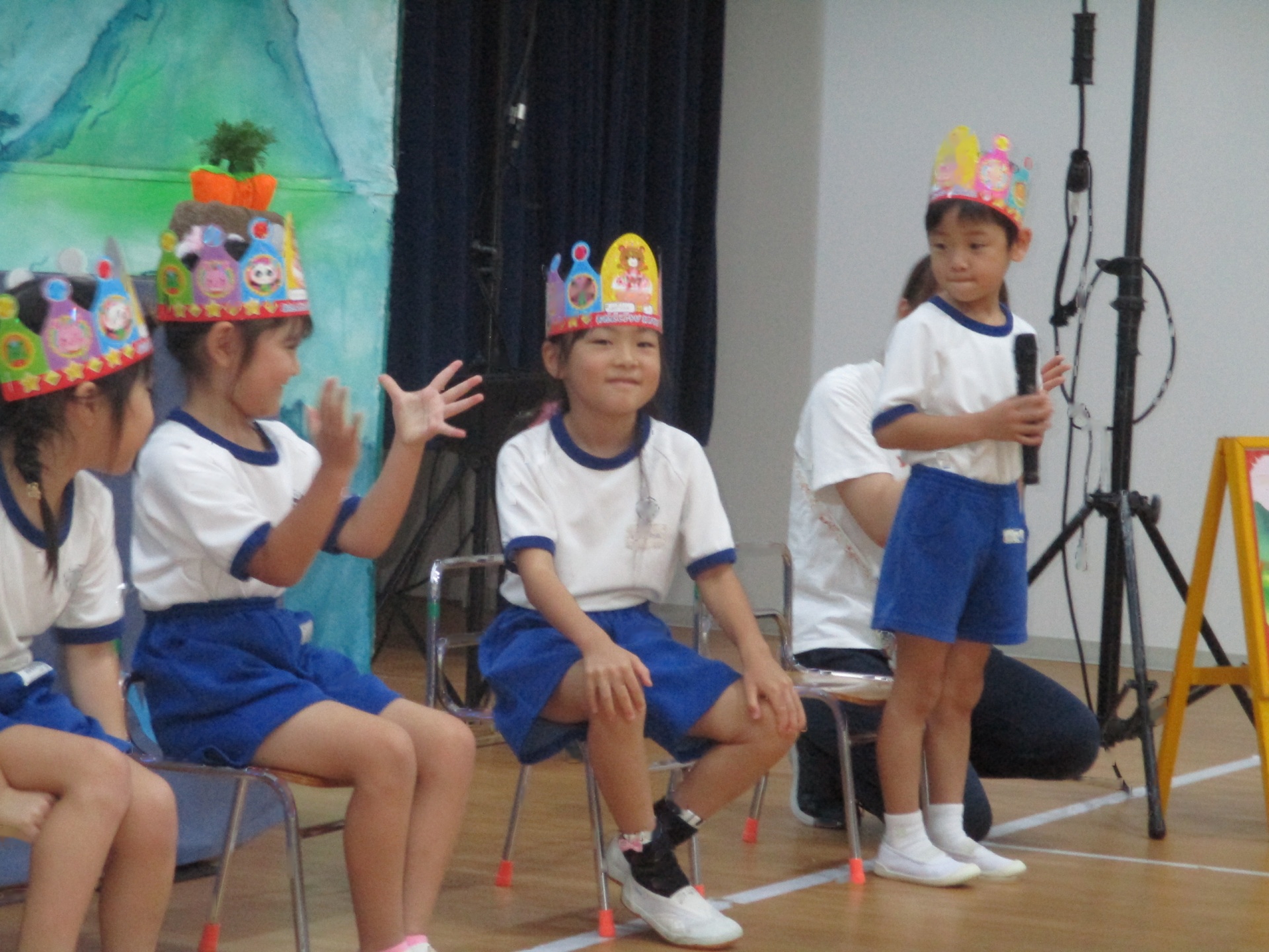 9月の誕生会を行いました。どのお友達もマイクをもってお名前をしっかり言うことができました。