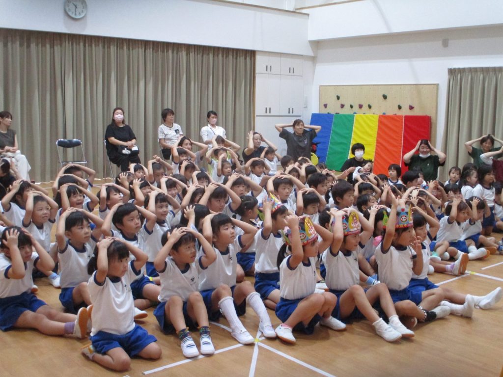 園長先生からお祝いのお話と、マジックを見せてもらいました。