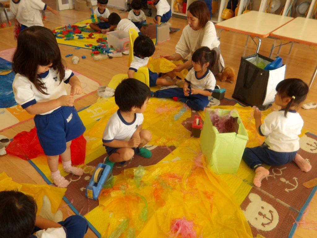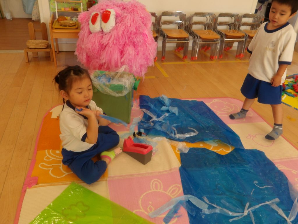 パーティーのあともまだまだもじゃぽんぽんが好きなみんなです。ハロウィーンに向けて遊びが続いています。また様子をお知らせしますので楽しみにしていてくださいね♪