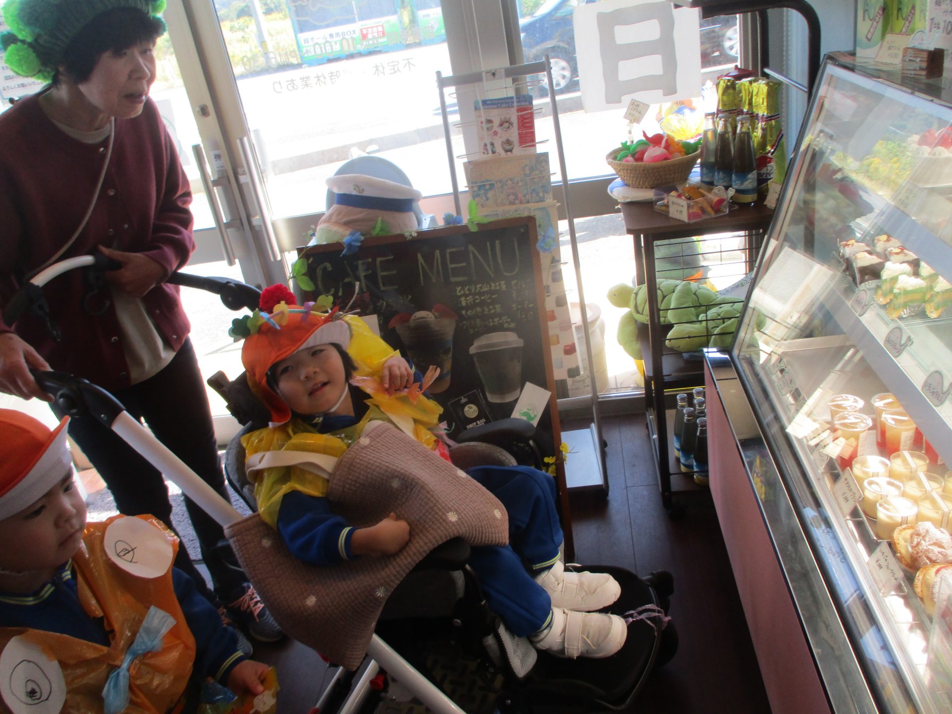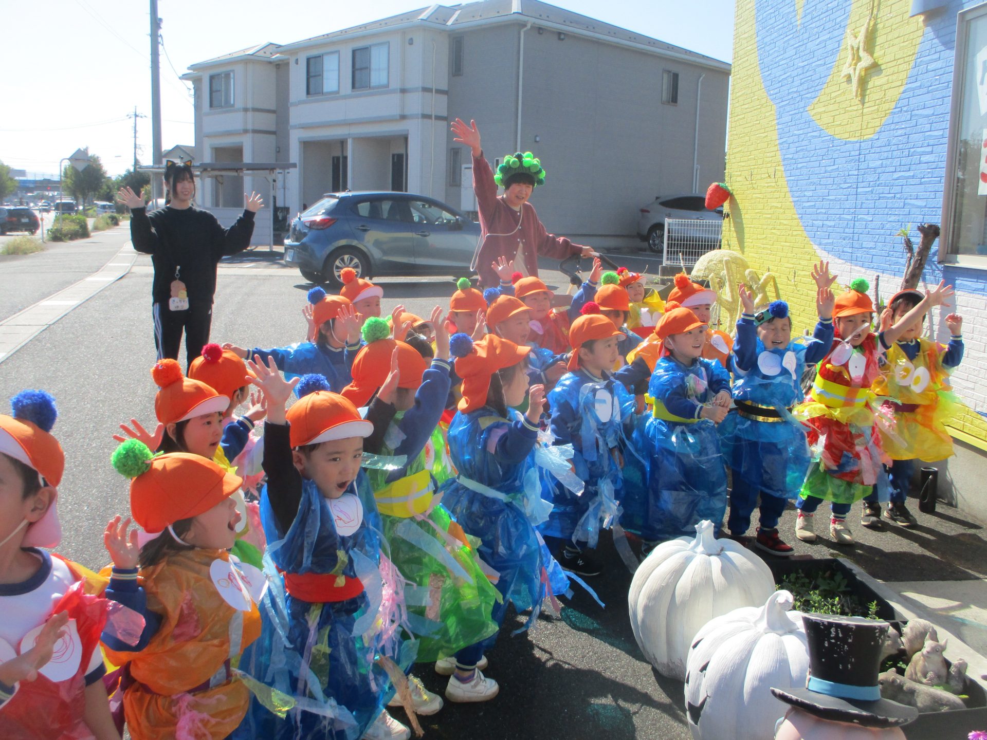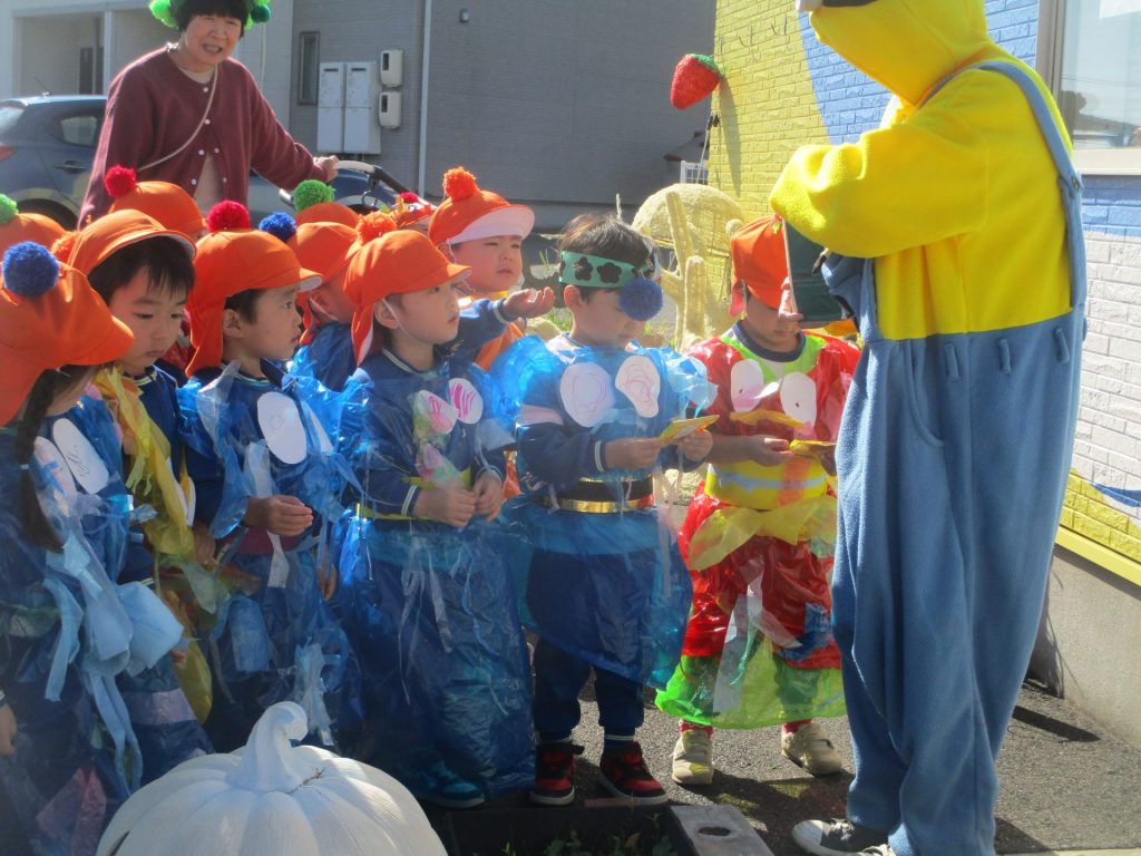 「♪Trick or Treat Trick or Treat おかしくれなきゃいたずらしちゃうぞ~!」と魔法の呪文を唱えると、本当にお菓子をいただき、大喜びです。