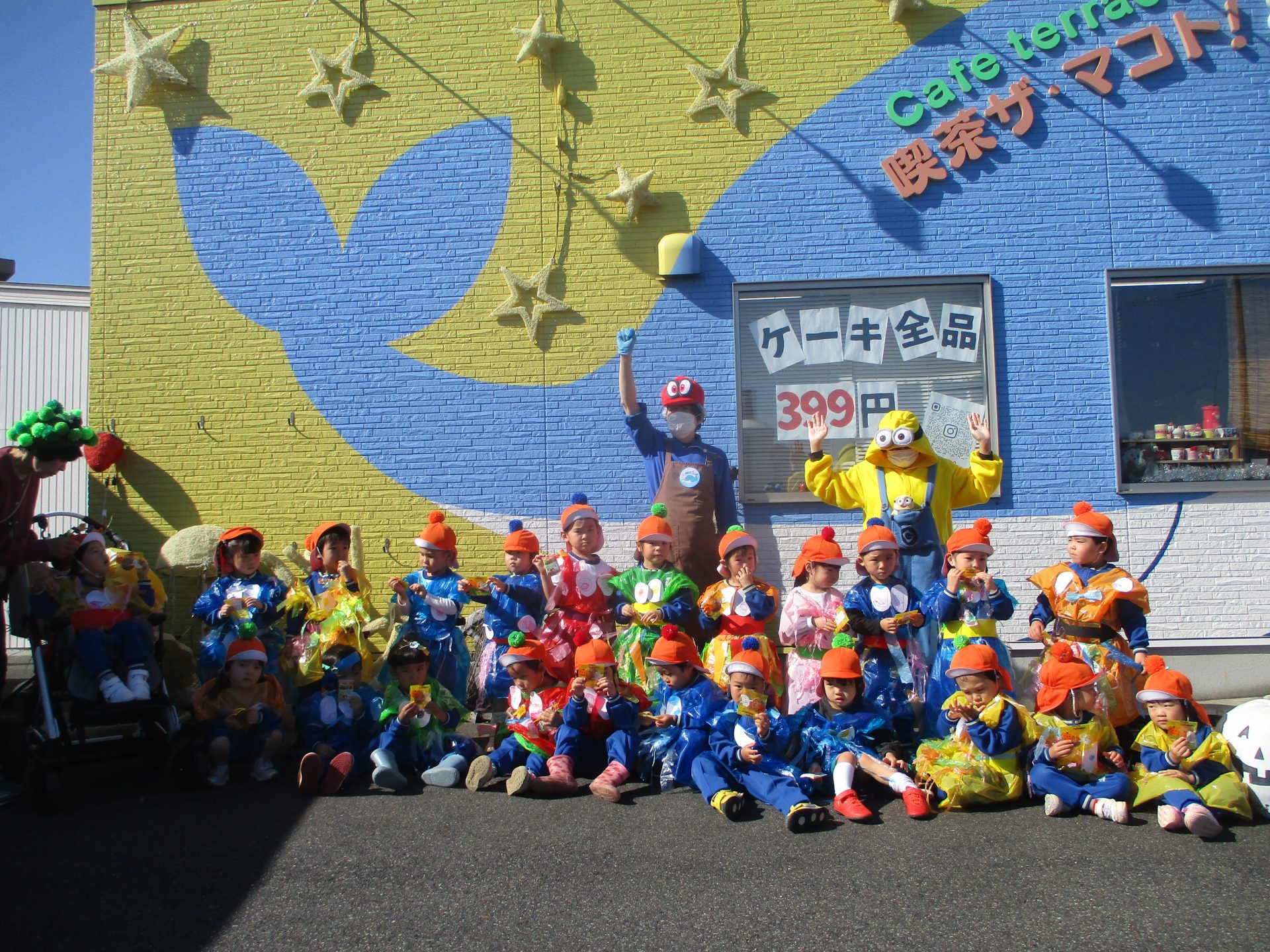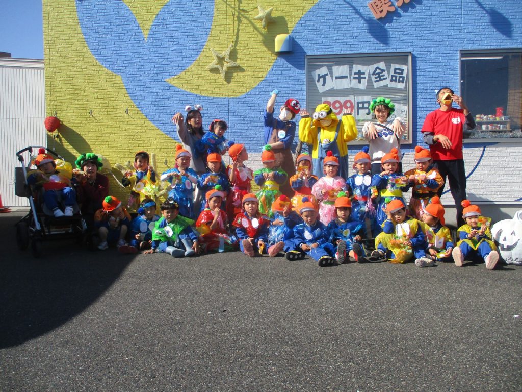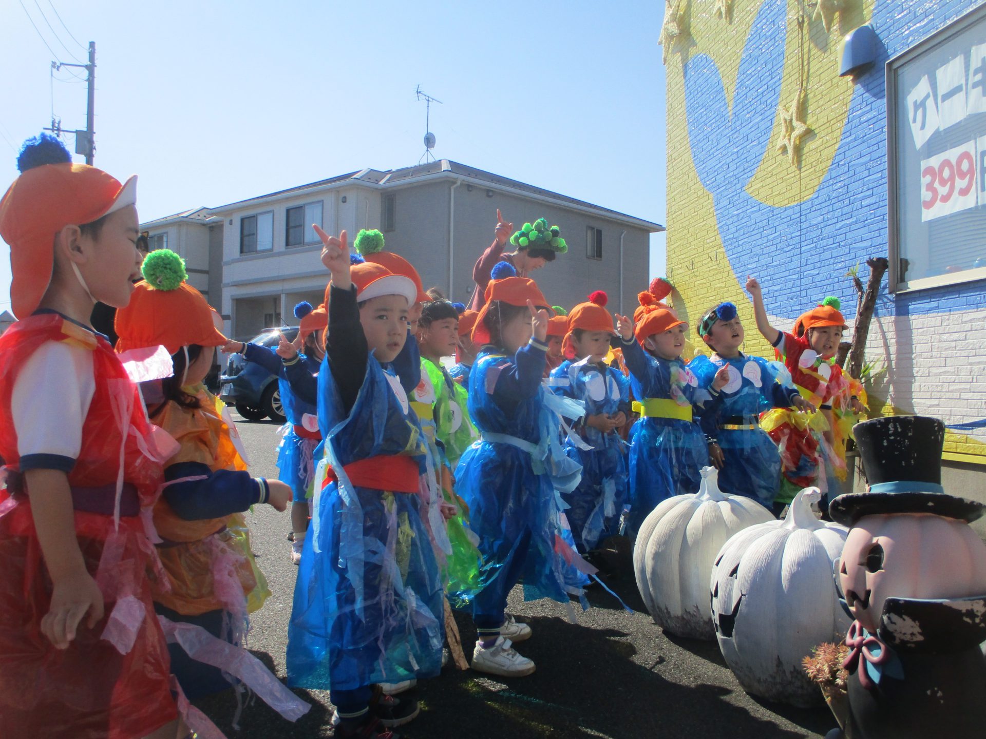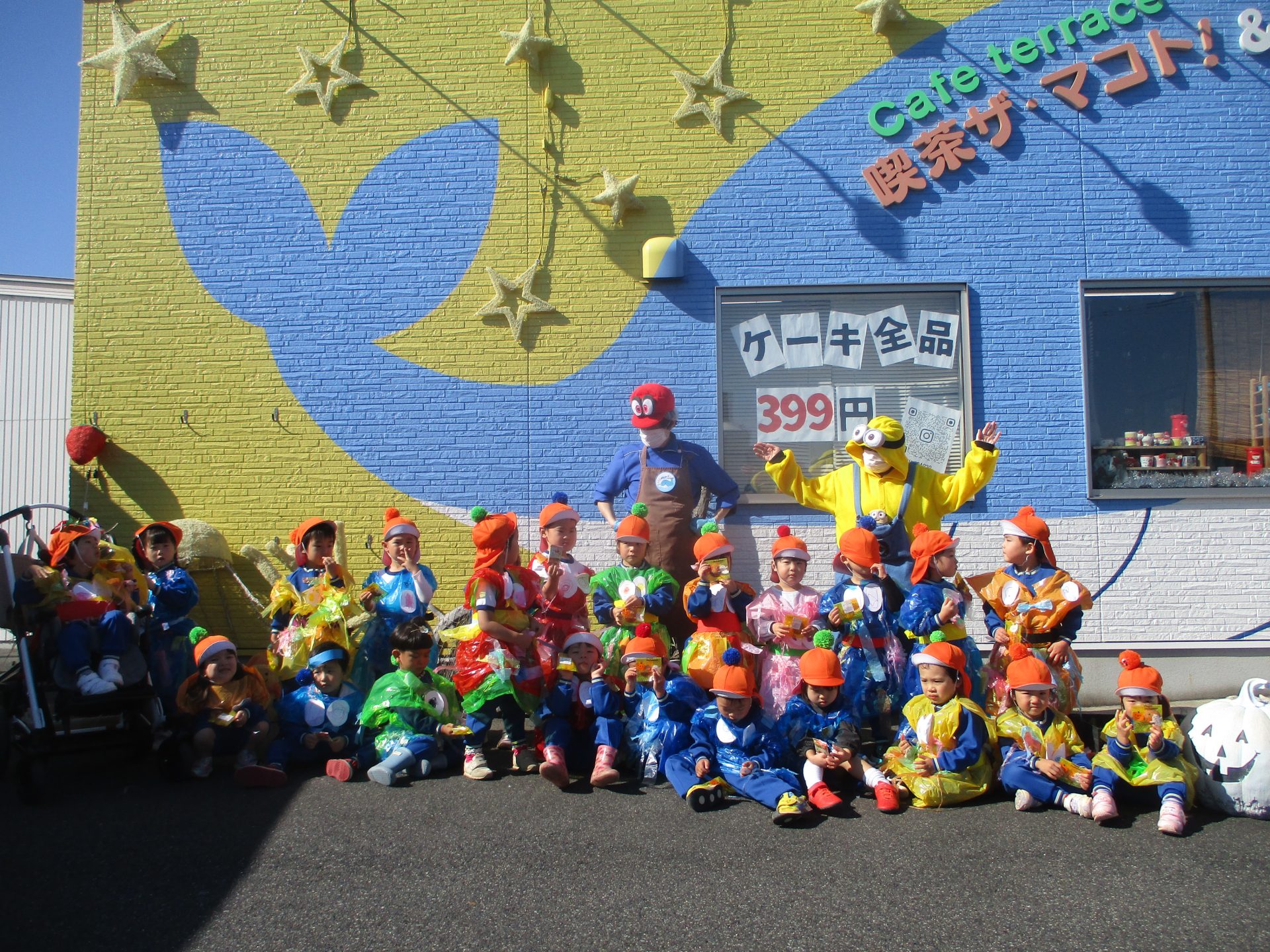 「♪Trick or Treat Trick or Treat おかしくれなきゃいたずらしちゃうぞ~!」と魔法の呪文を唱えると、本当にお菓子をいただき、大喜びです。