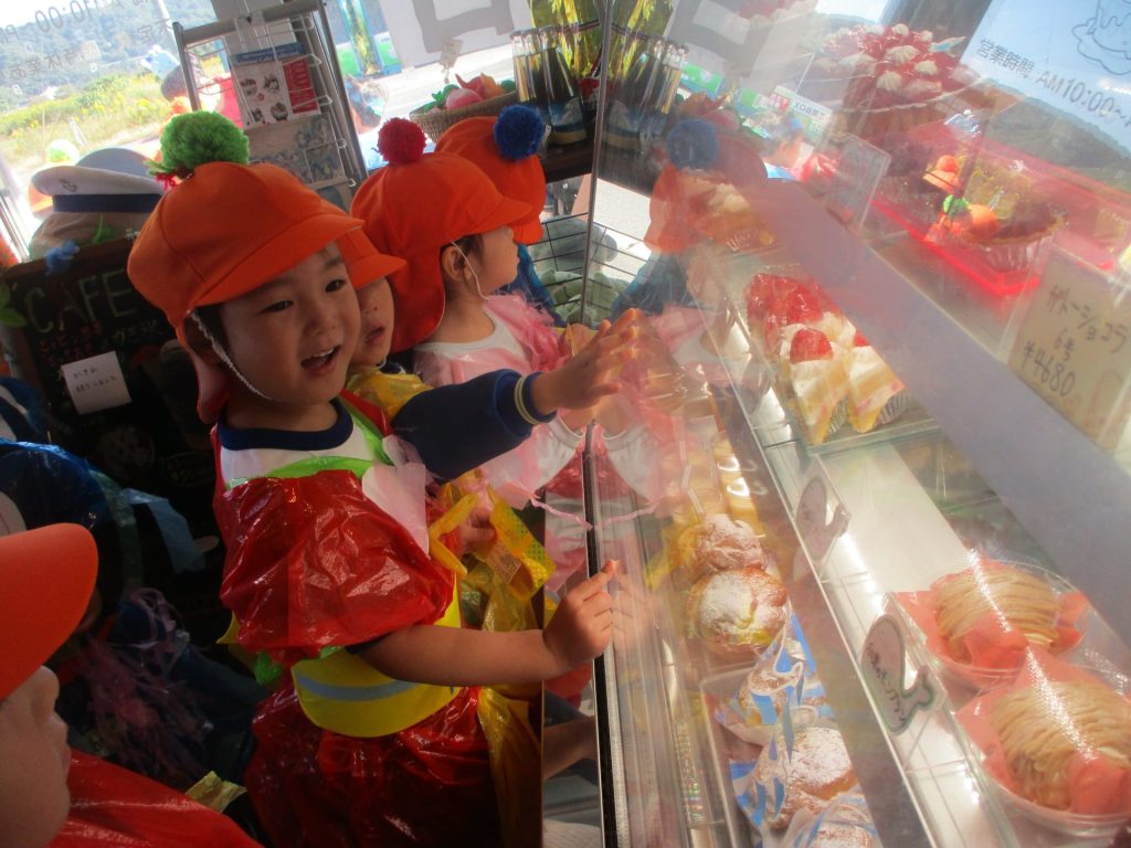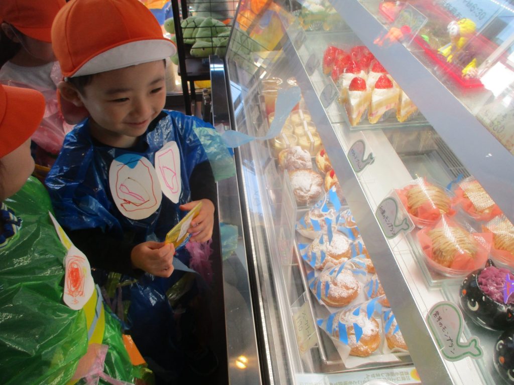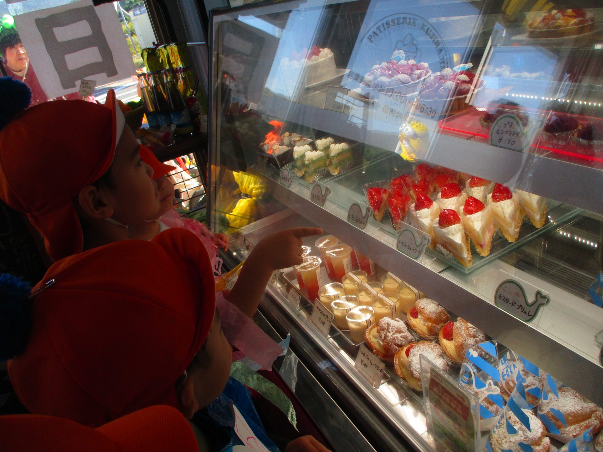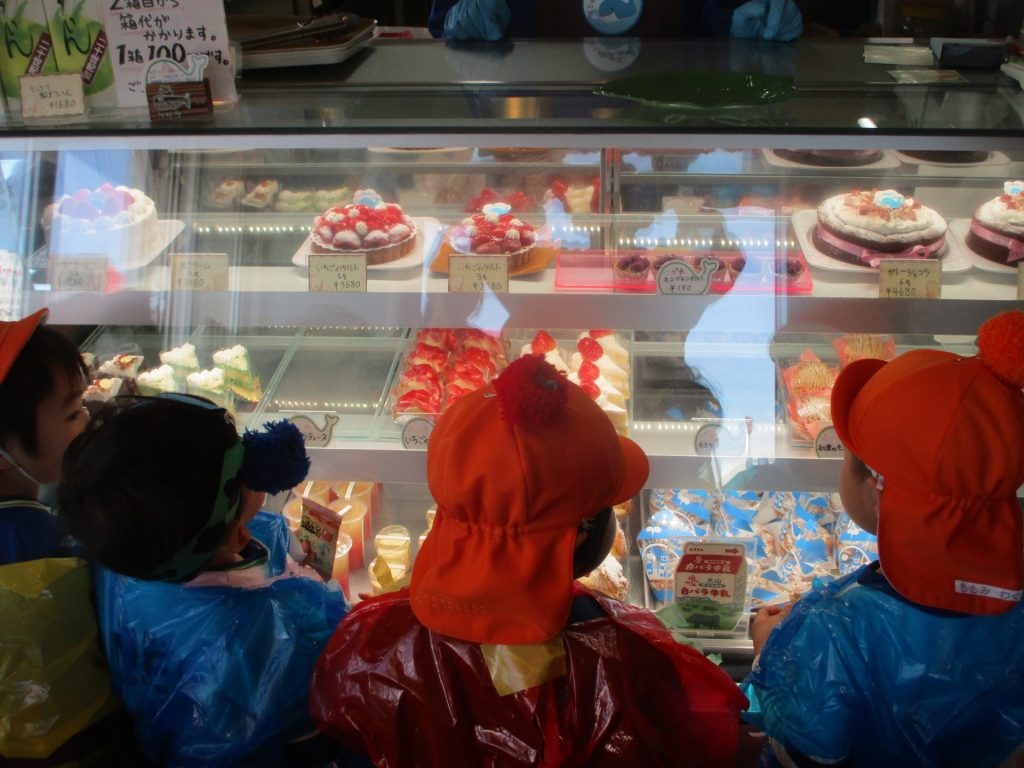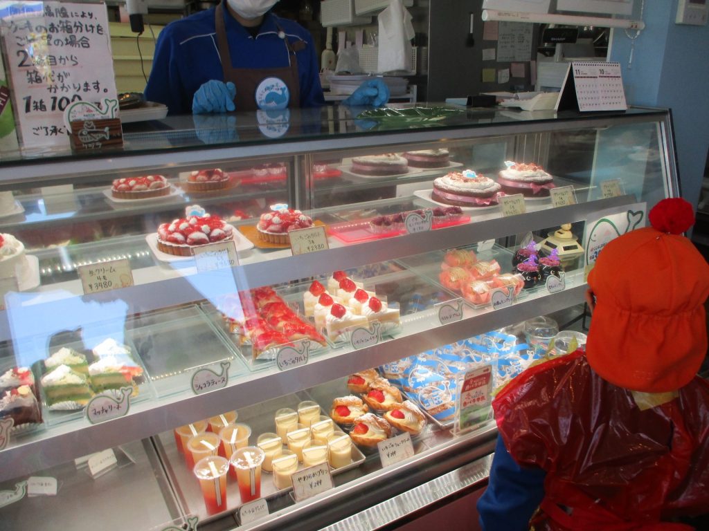 お店の中も特別に見せていただきました。「ねこちゃんのケーキだ!」「苺ケーキたべたい!」「今度お金持ってこうね」と目を輝かせていました。