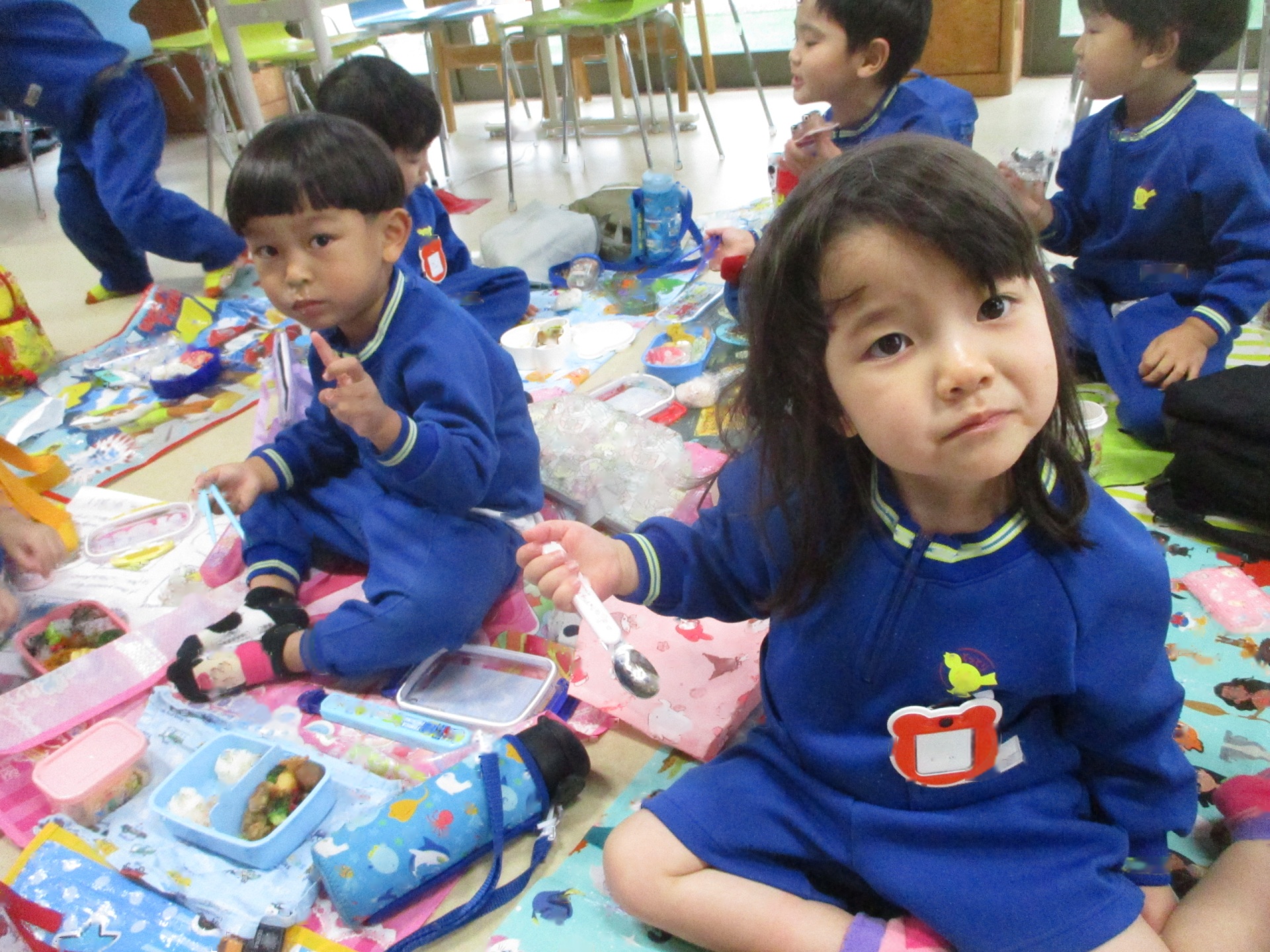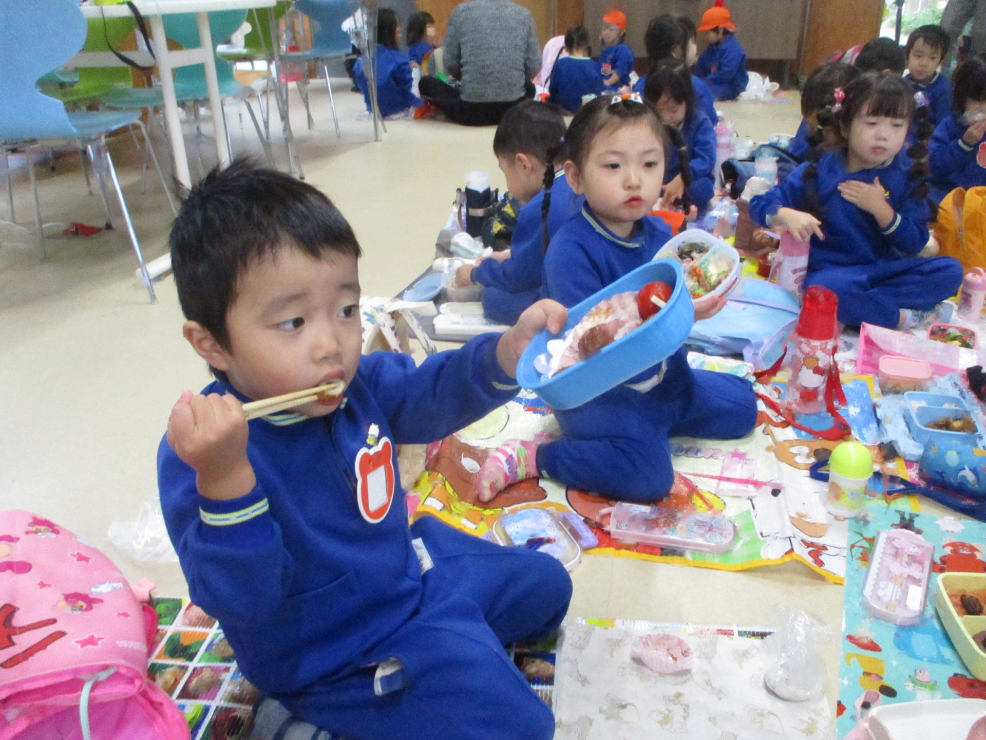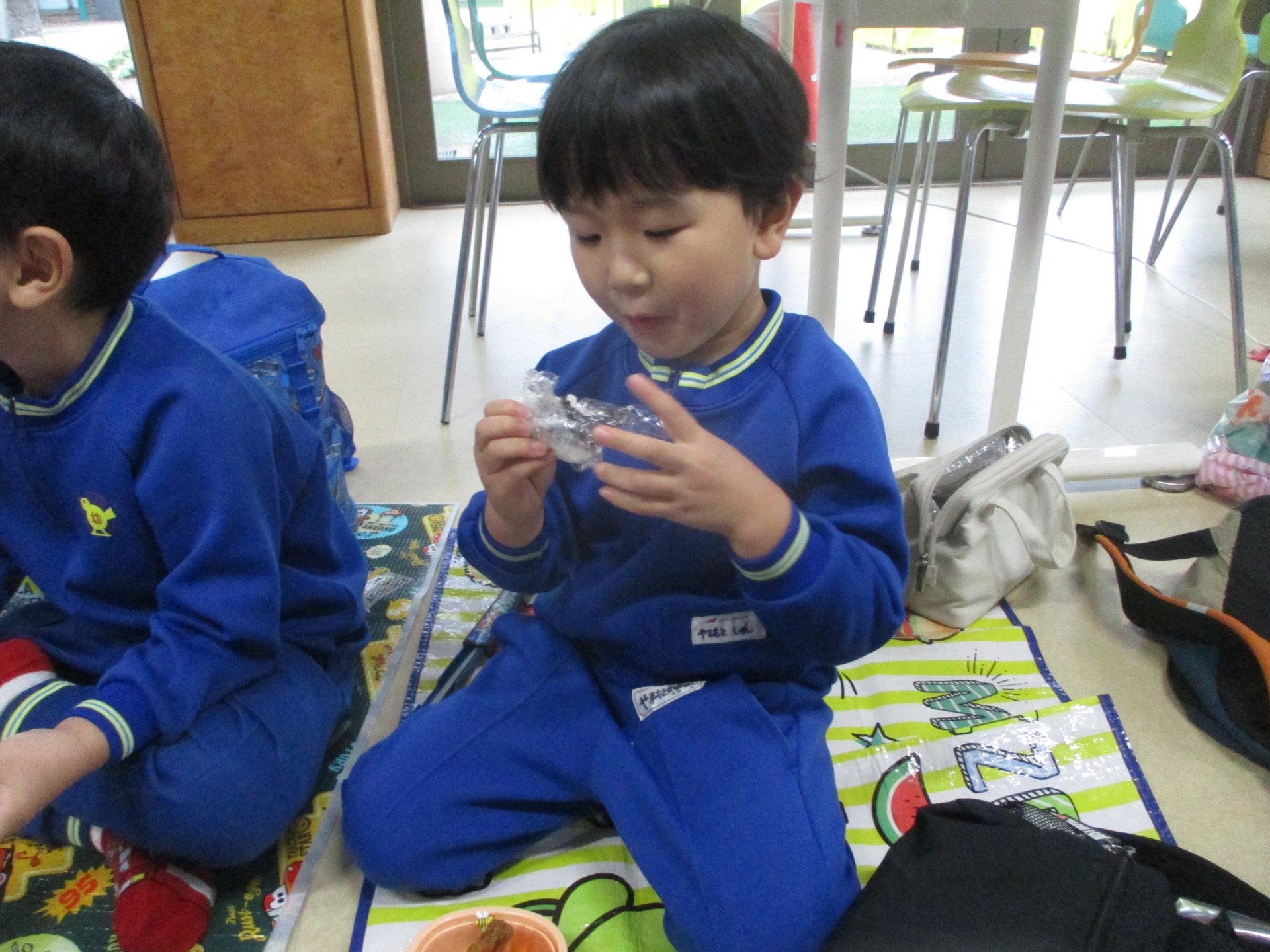 待ちに待ったおひるごはん!お弁当を嬉しそうに見せてくれました。