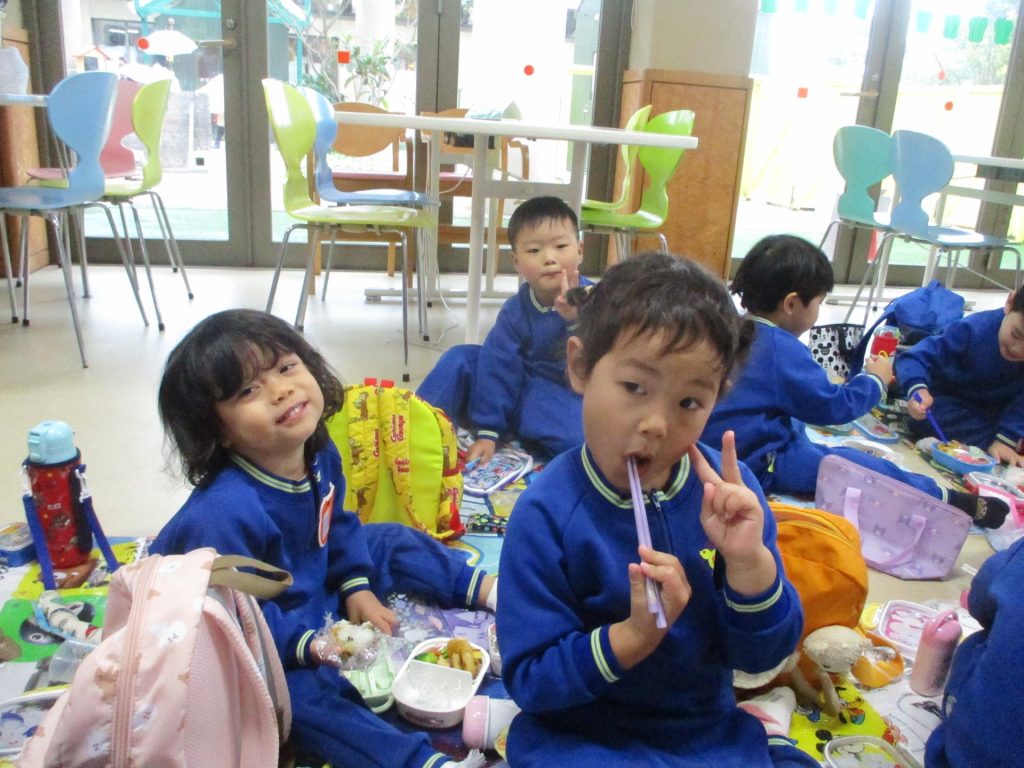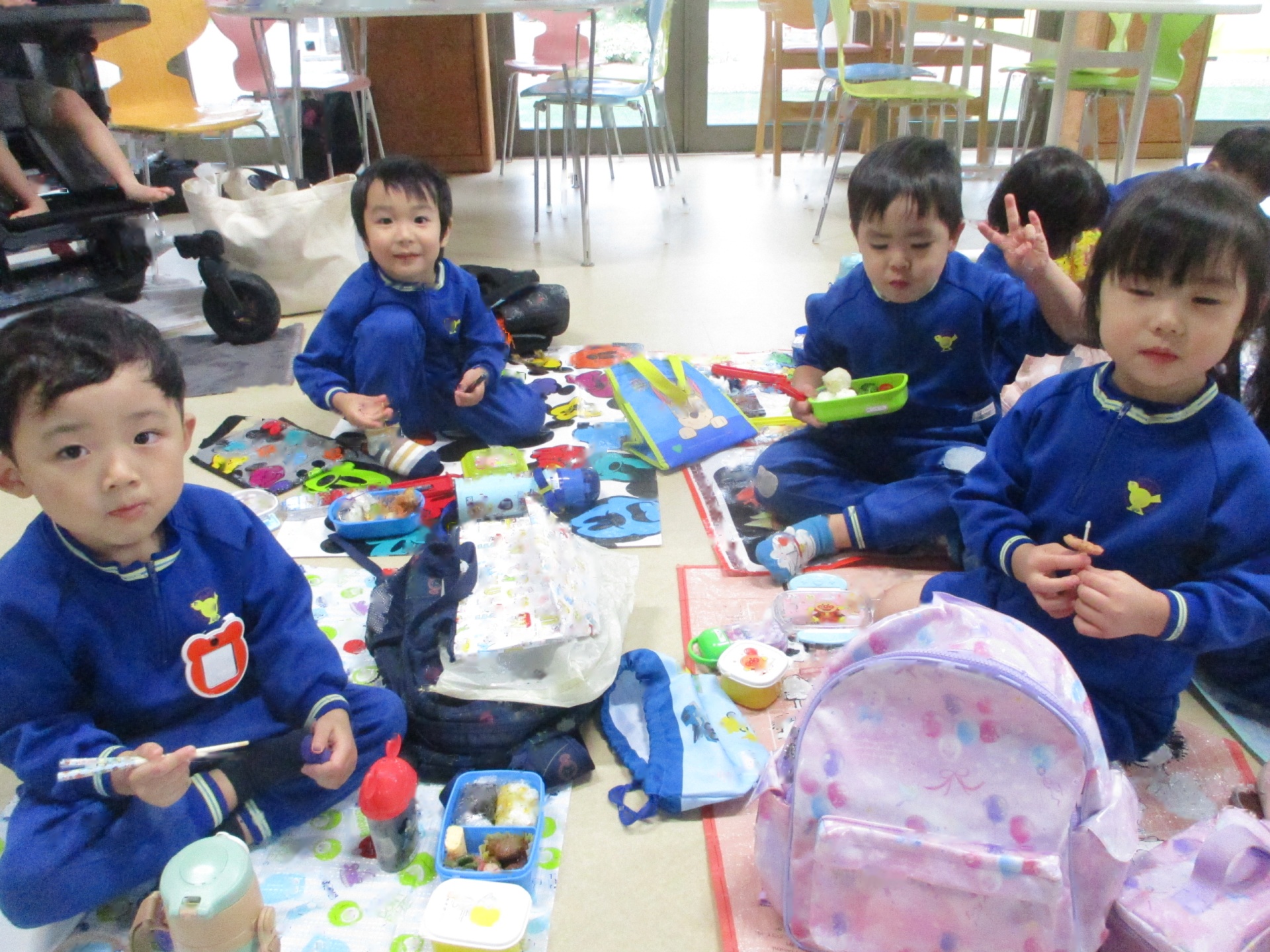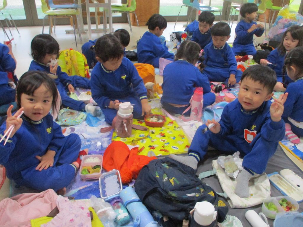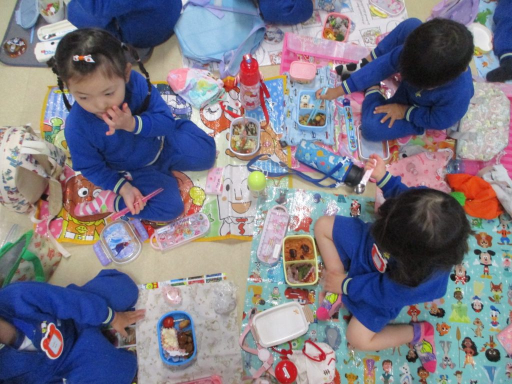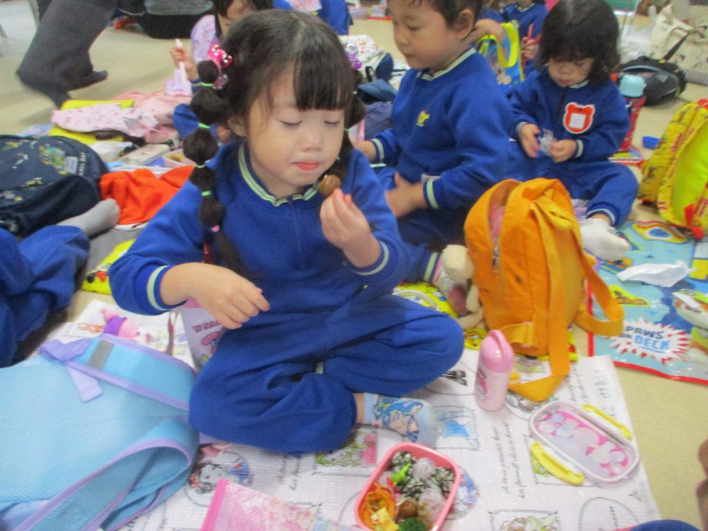 待ちに待ったおひるごはん!お弁当を嬉しそうに見せてくれました。