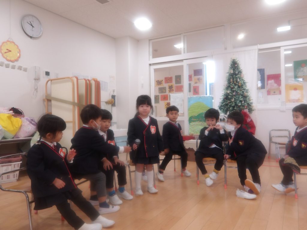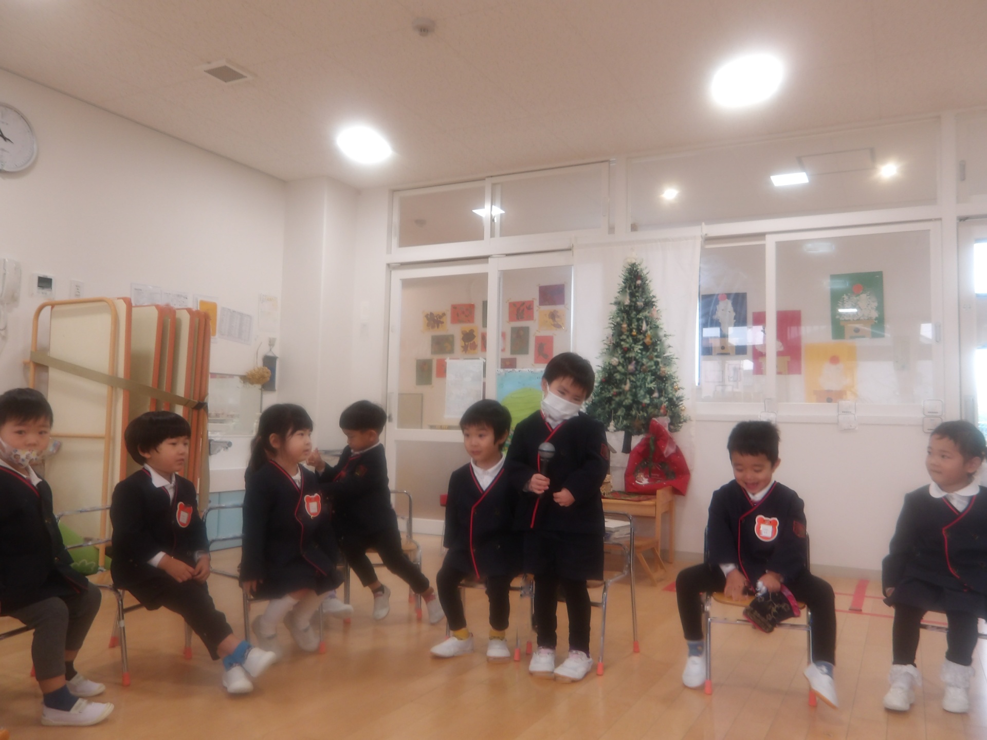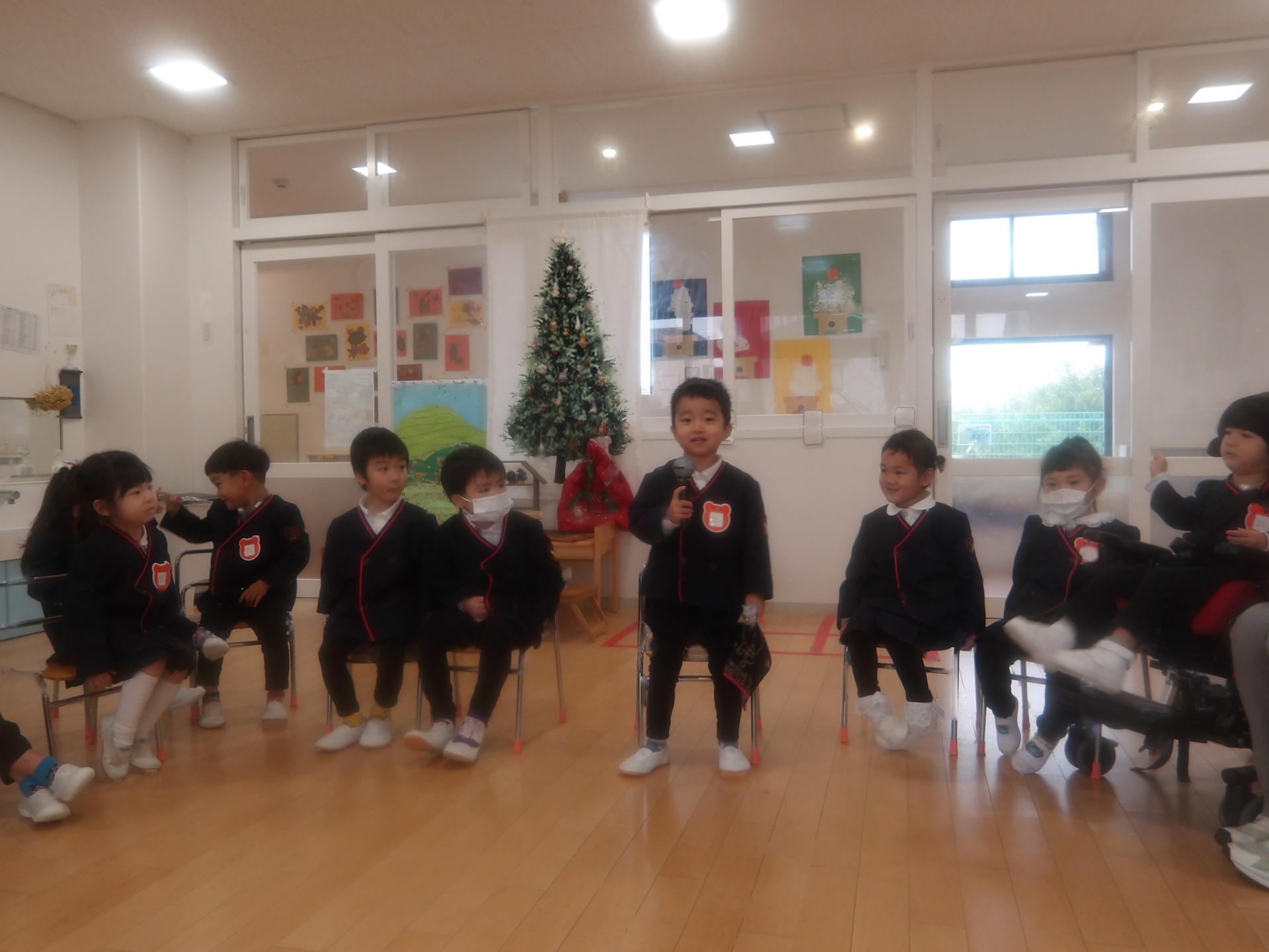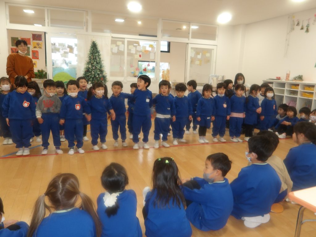 2学期もみんなが元気に通ってくれたことが何より嬉しいです。保護者の皆さまには、日々の保育にご理解とご協力をいただきありがとうございました。次にみんなが会うのは3学期の始業式です。元気に来てくださいね。よいお年をお迎えください。