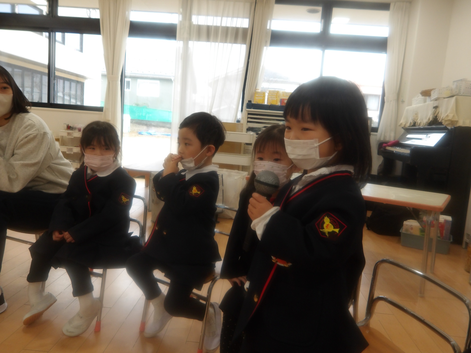 発表会で年長さんがうたっていた、「ありがとうの花」を歌いたい!とリクエストがあり、ひそかに練習をしていたのですが、年長さんが聴きにきてくれました!年長さんの前で大張り切りで歌っている様子です。