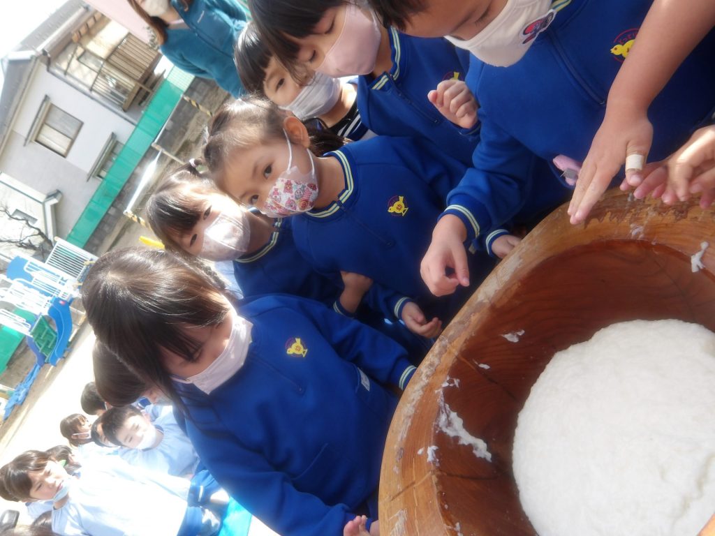 おもちつきにて つきたてのおもちを観察してみました。