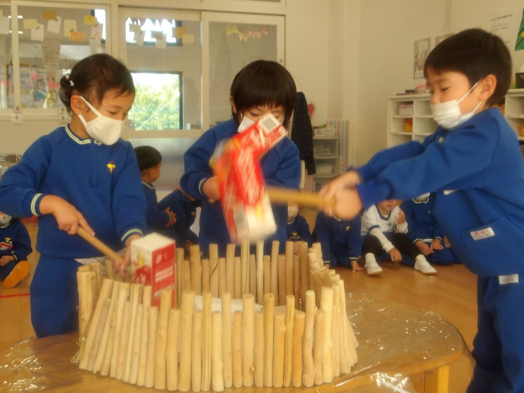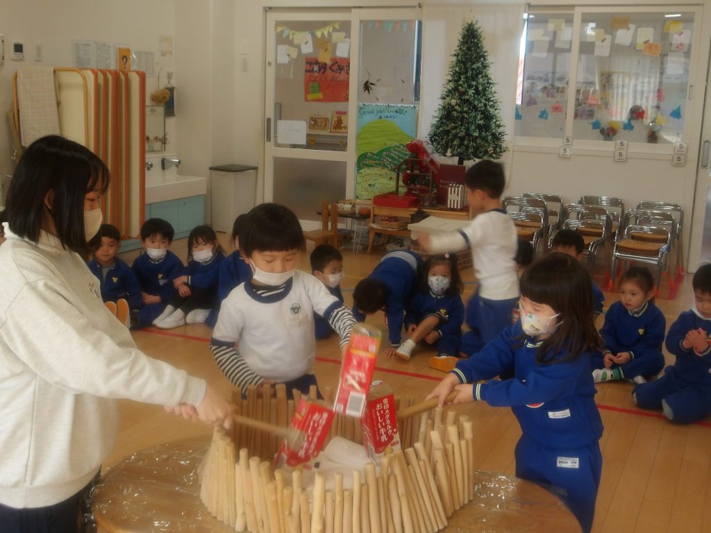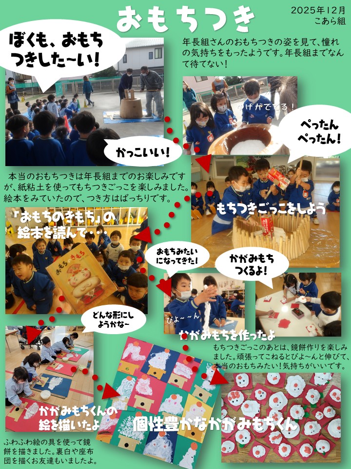 12月はクリスマス一色!とおもいきや、今はかがみもちに夢中のこあら組です。