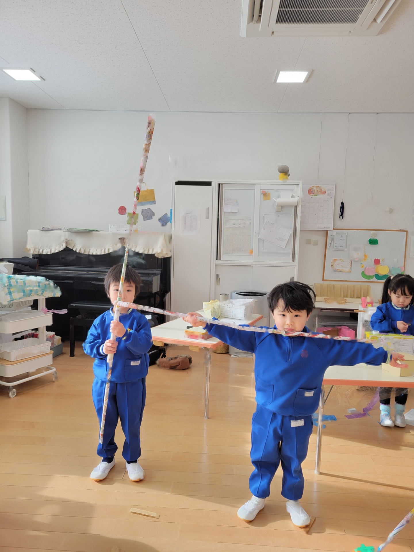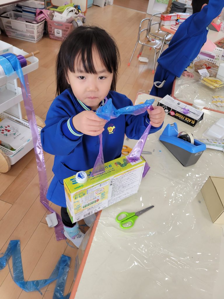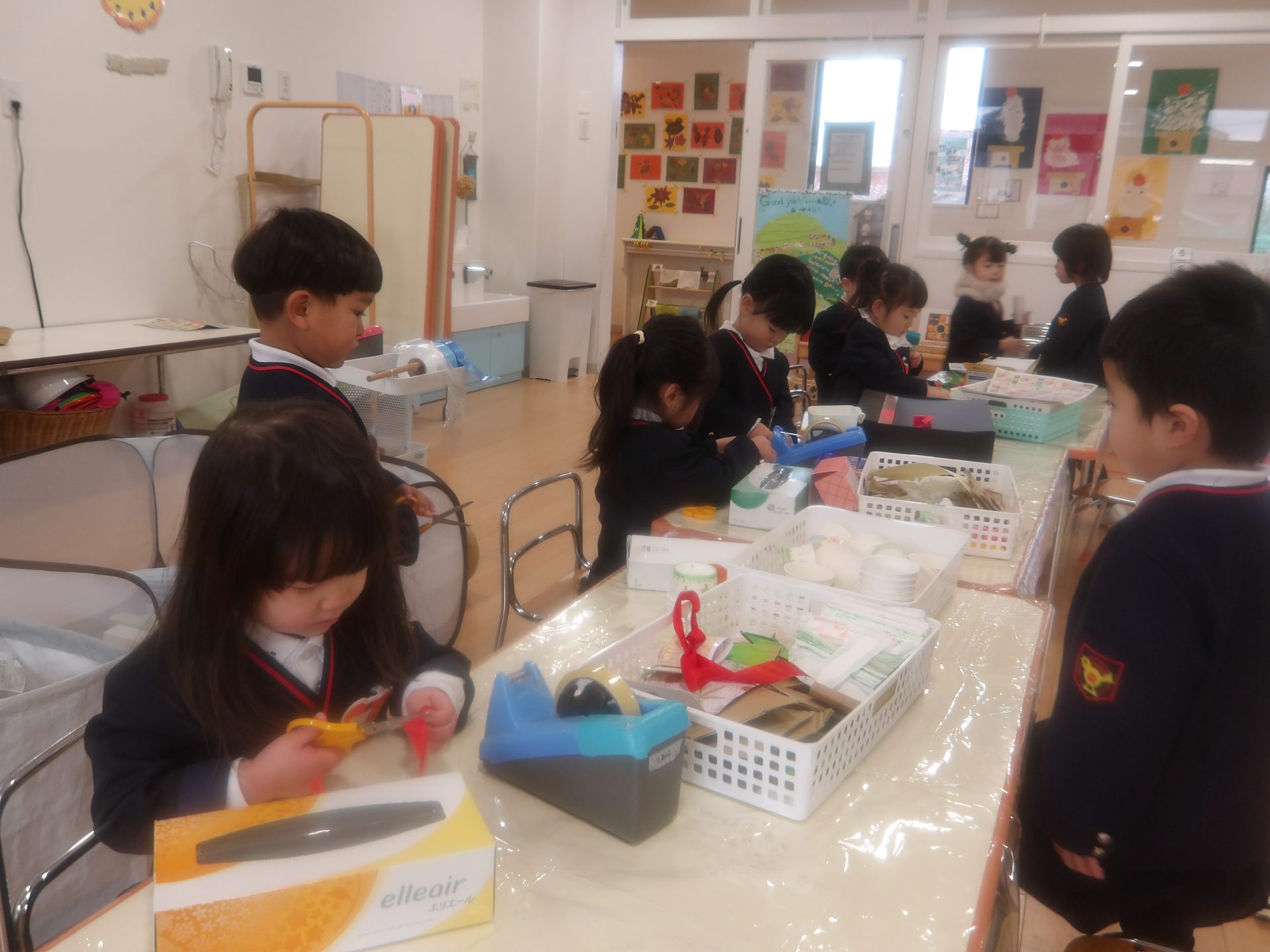 お正月遊びとは変わりますが、皆様たくさんのリサイクル材のご協力ありがとうございました!子ども達は毎日工作遊びを楽しんでいます。