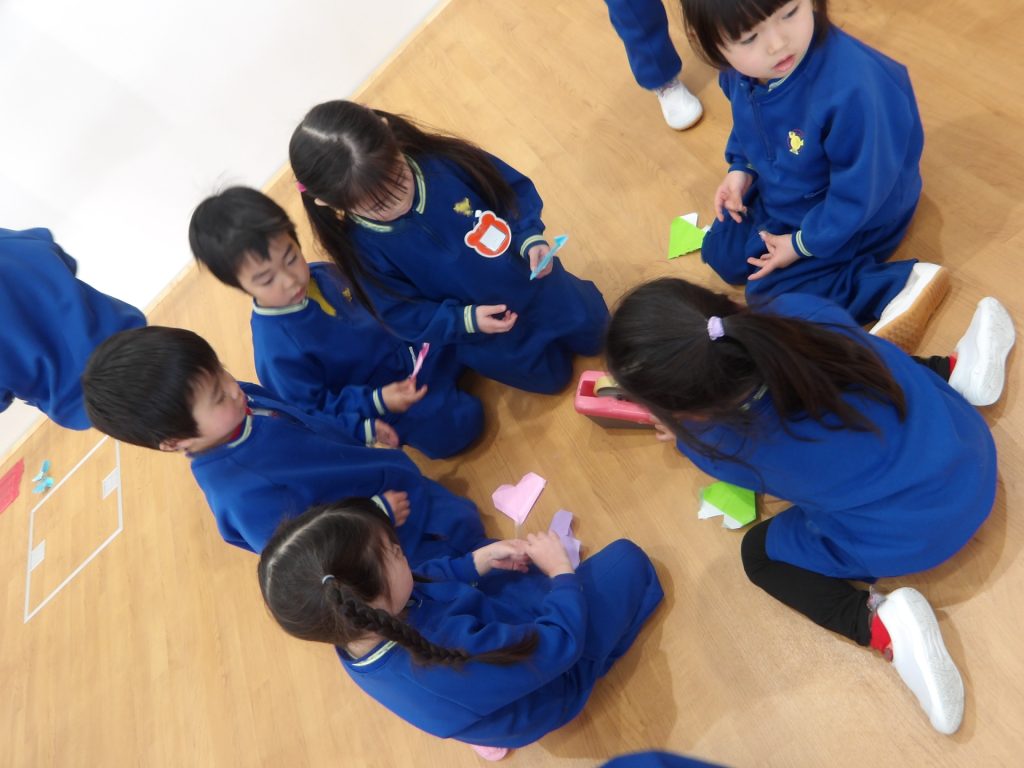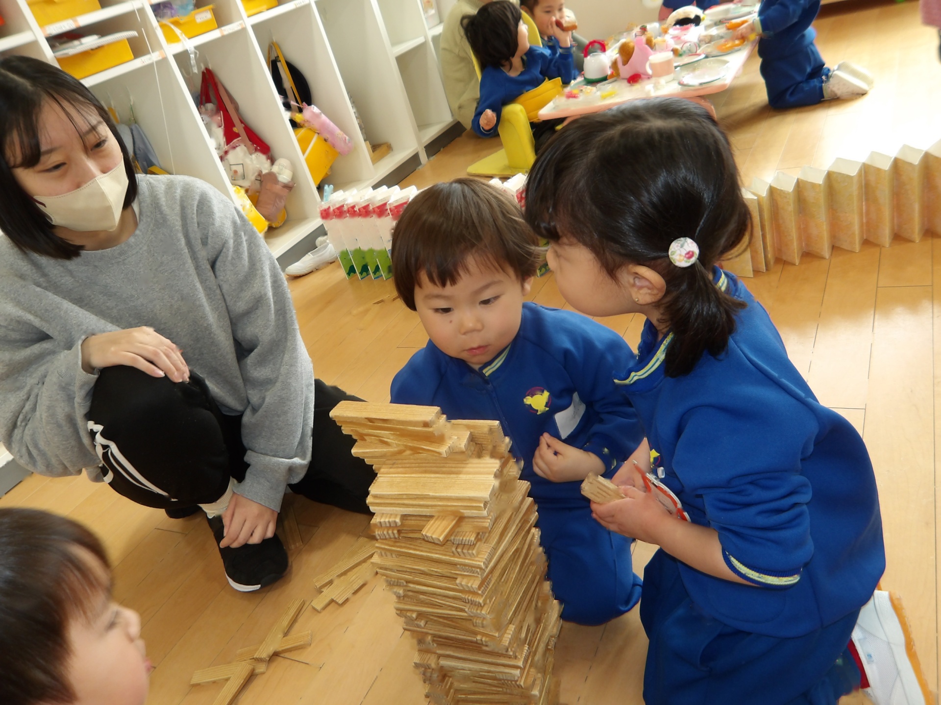 もうすぐ進級を控え、ぱんだ組になるのを心待ちにしています。そして、4月からこあら組になるうさぎ組のお友達と、もっと仲良くなろうと、最近よく遊んでいます。