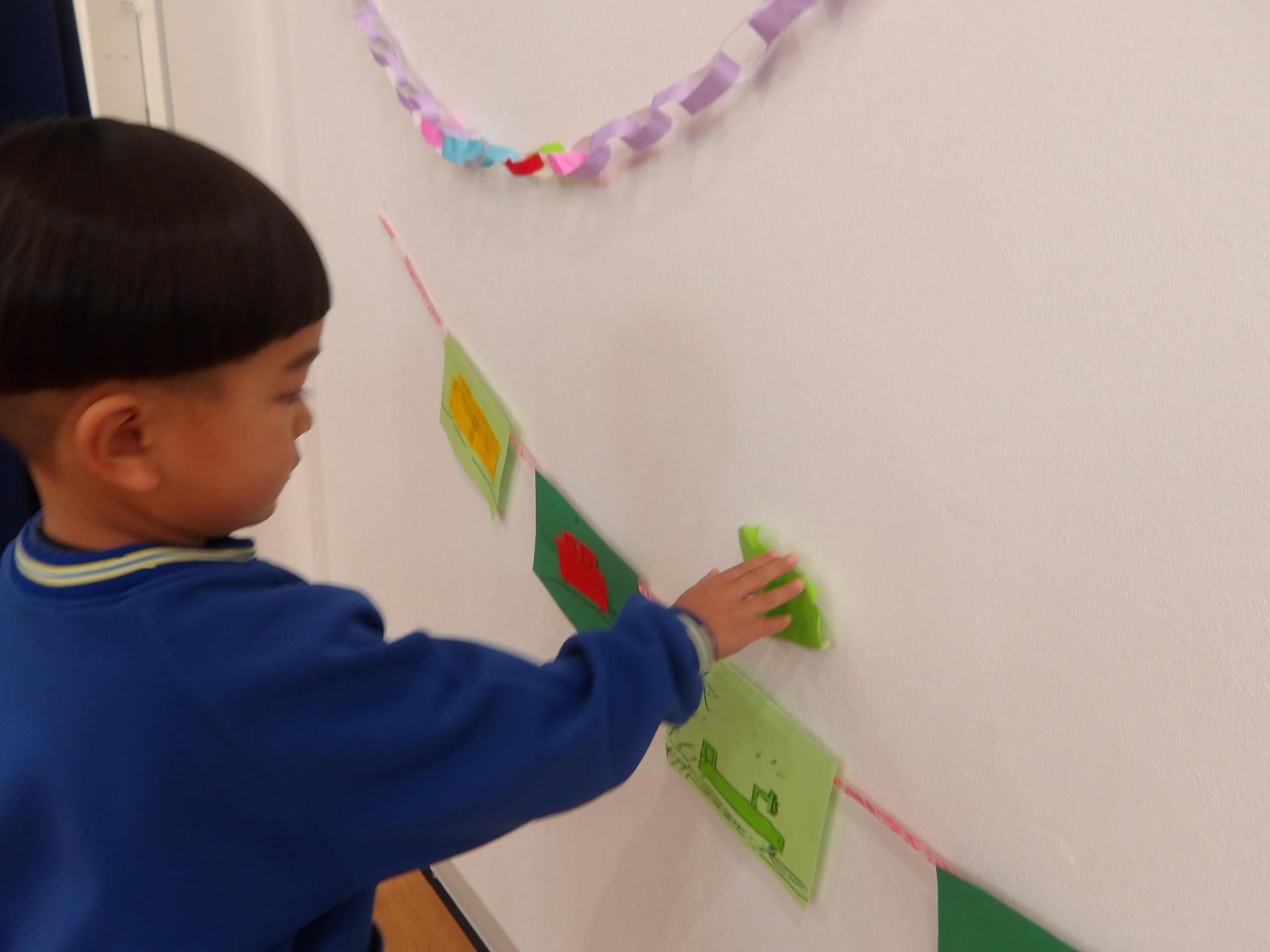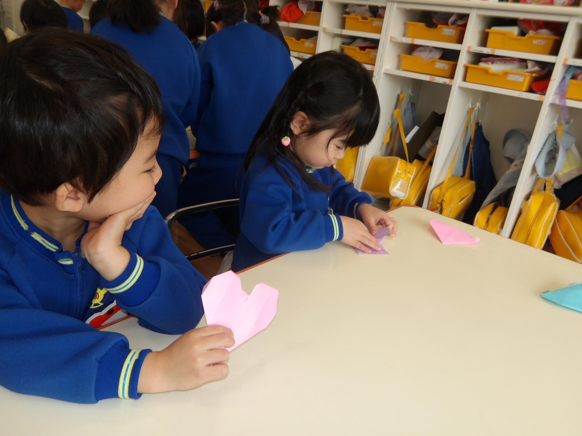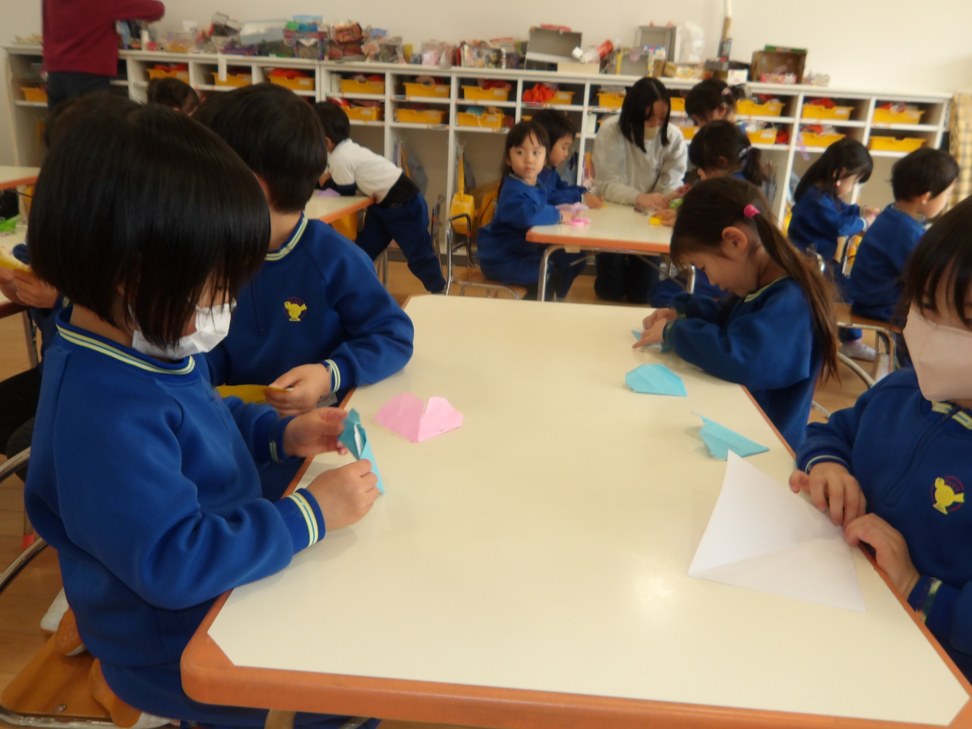 3月10日のおわかれ会に向け、年長さんを驚かせようと秘密で会場の飾りつけをしました。他にも「ありがとうの花」の歌のプレゼントを練習したり、プレゼント作りなどをしました。
