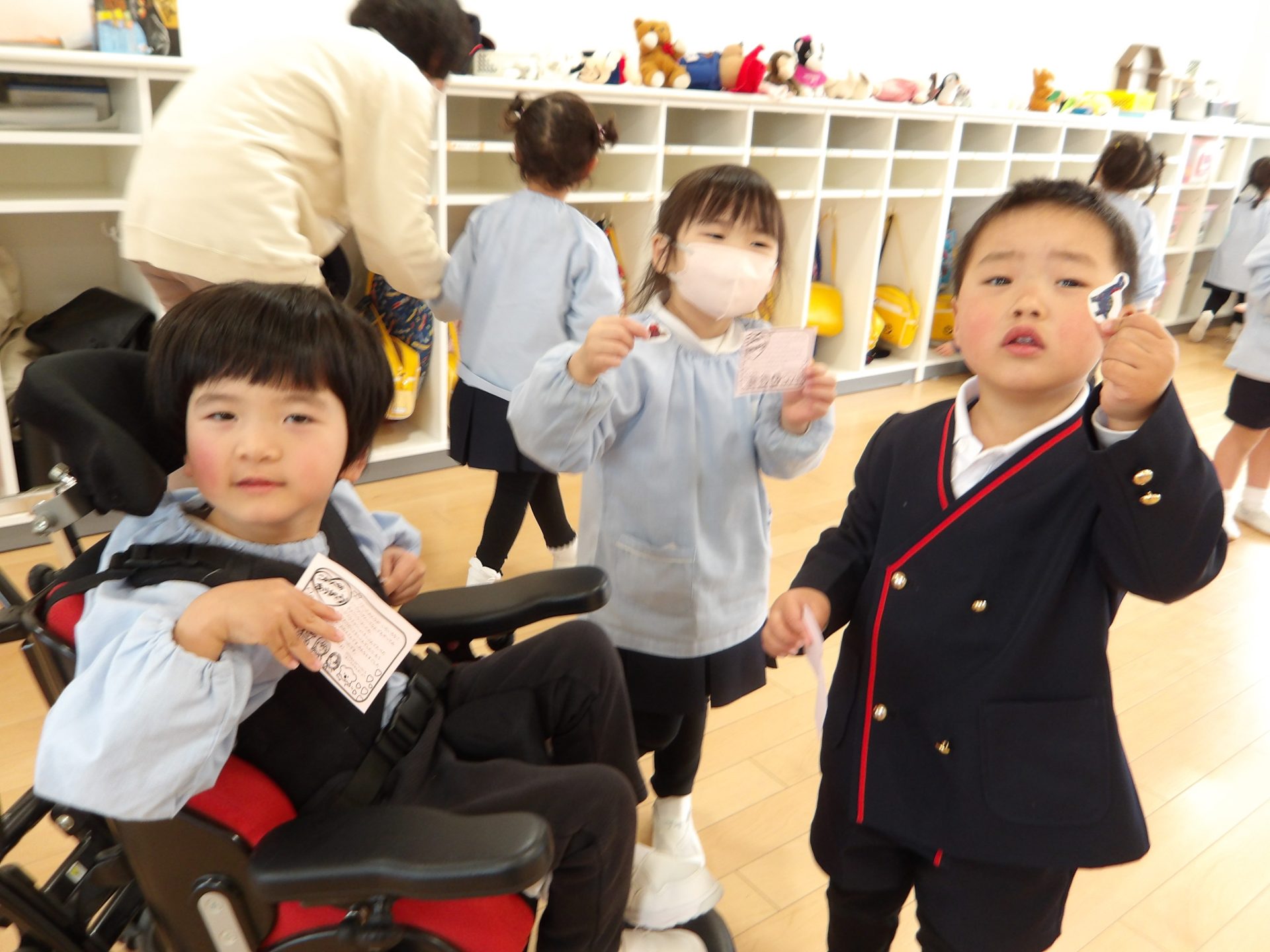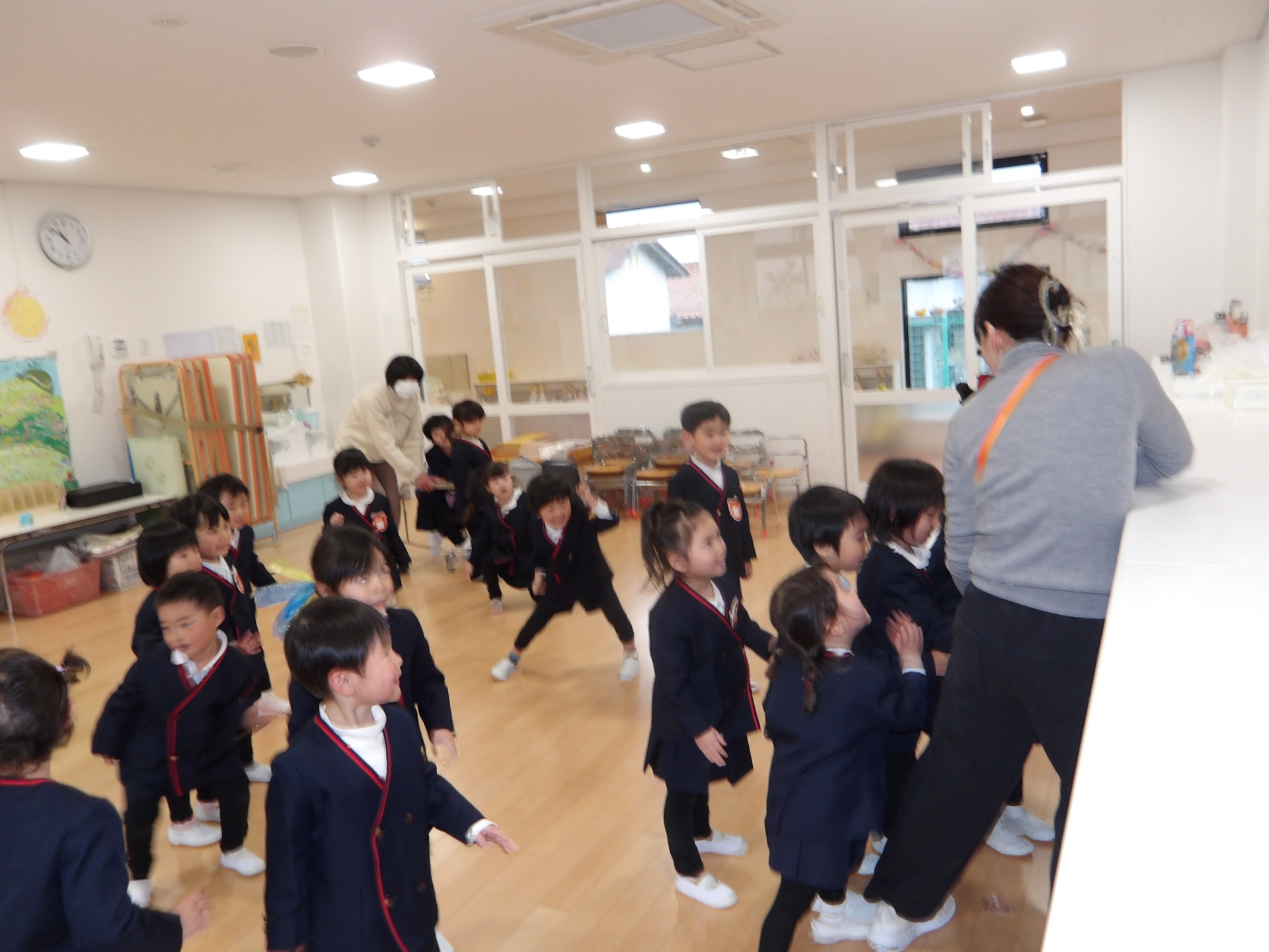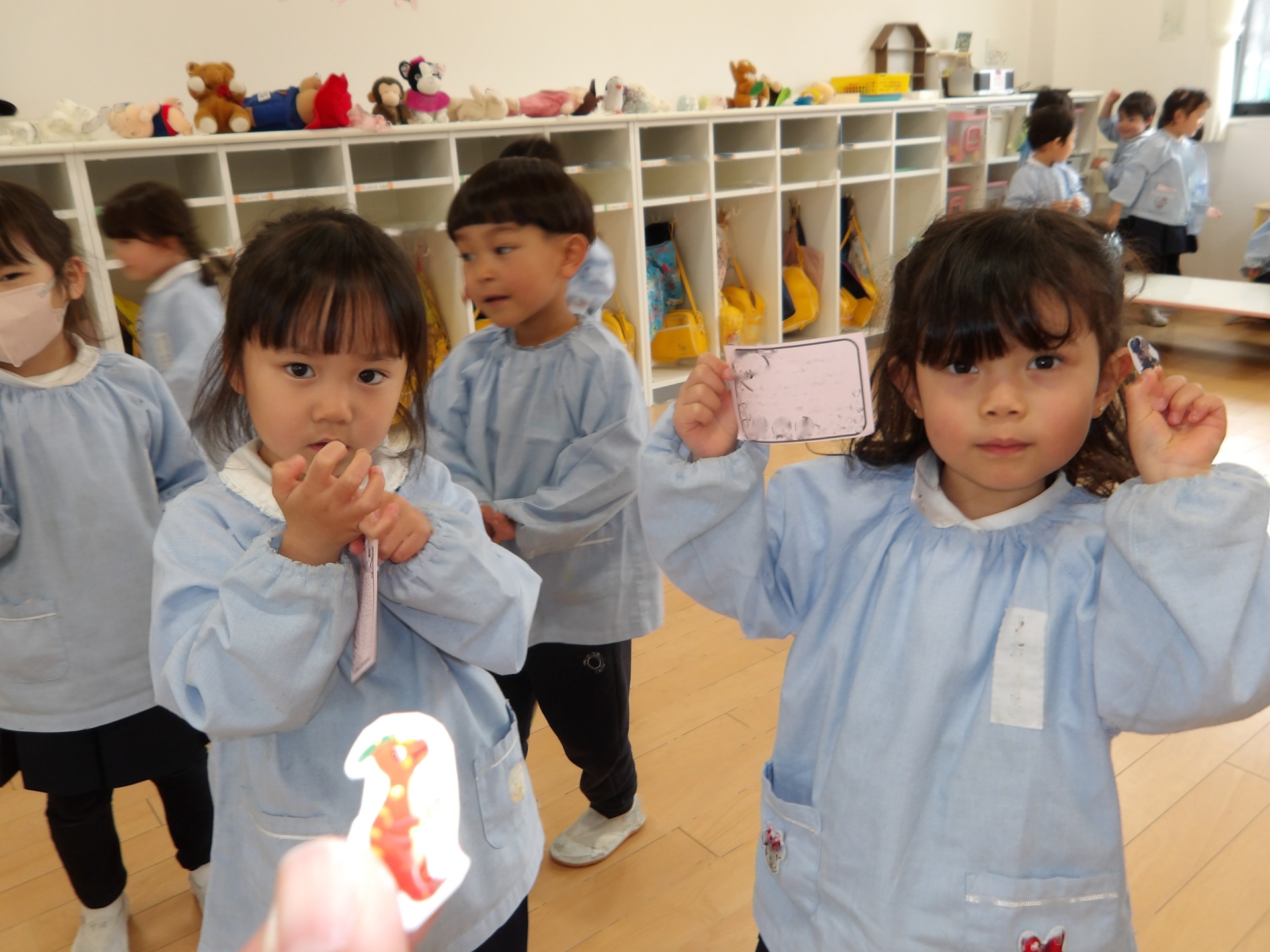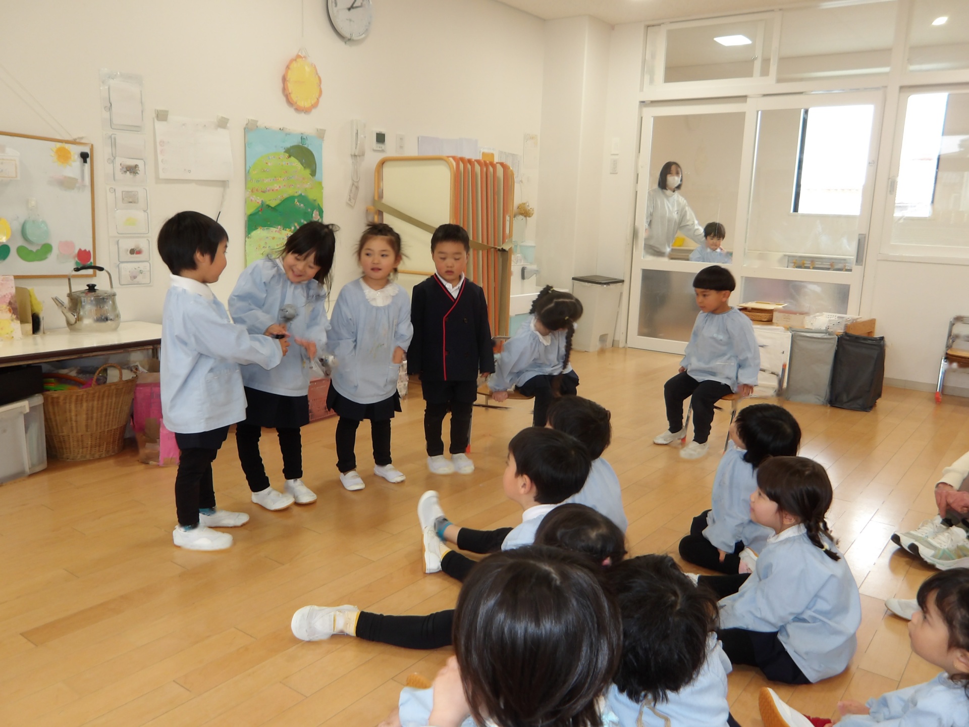 「もじゃぽんぽんのダンスをしたこと」「みんなでカプラで遊んだこと」「遠足に行ったこと」など、いろいろな思い出が思い返されました。みんながしっかりと自分の思いを言えていたので、担任は成長ぶりにびっくりでした!