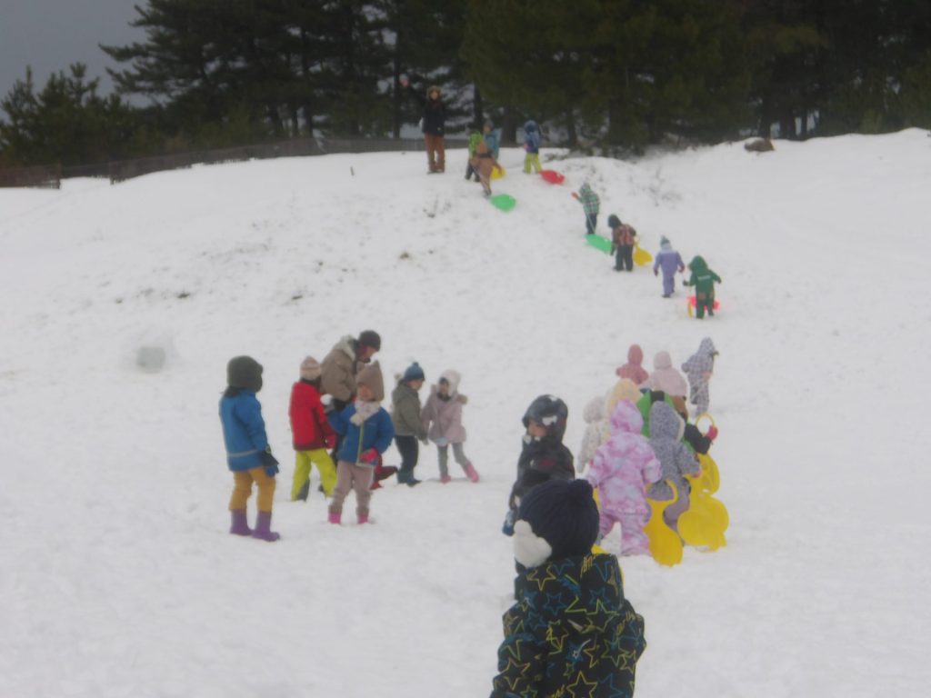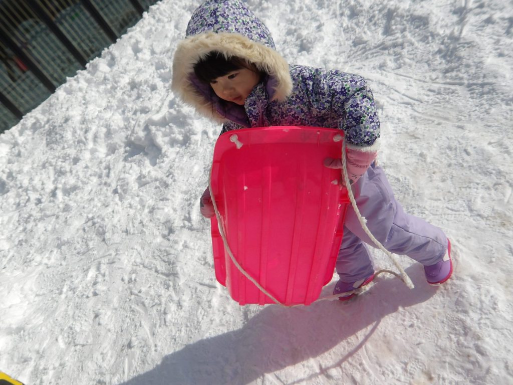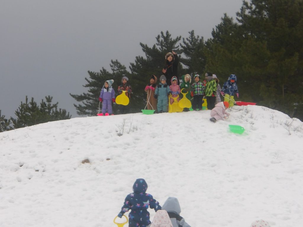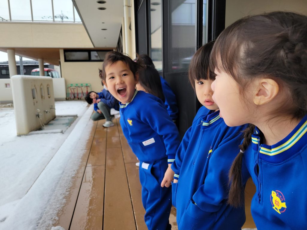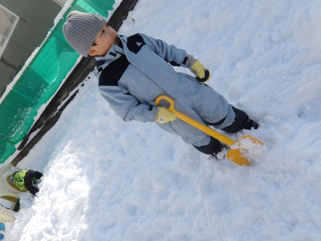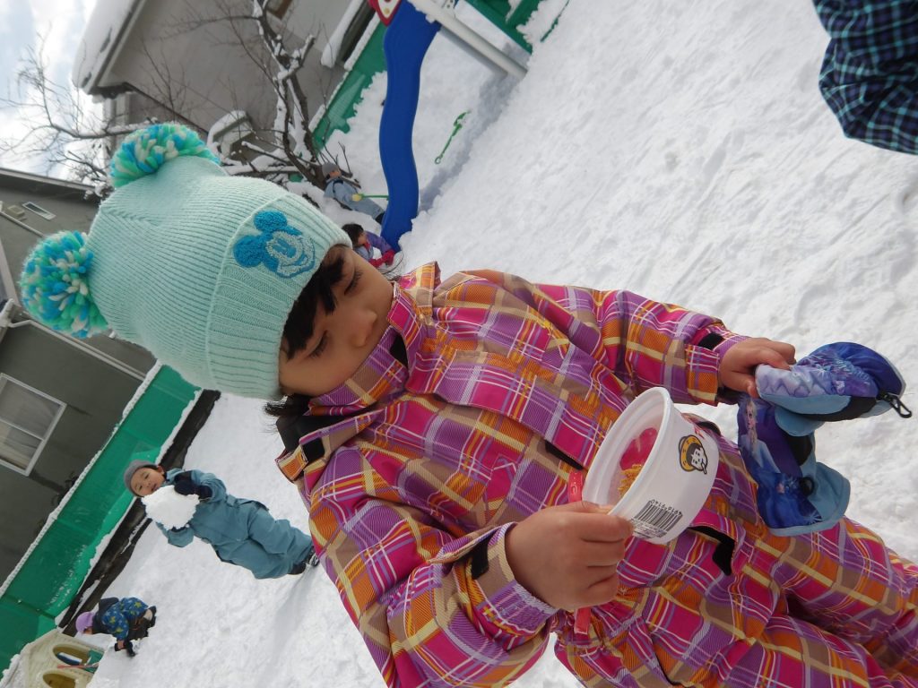 今月はお正月遊びや鬼ごっこ、工作、楽器作りなどいろいろ楽しんでいますが、なんといっても冬の醍醐味は雪遊び!