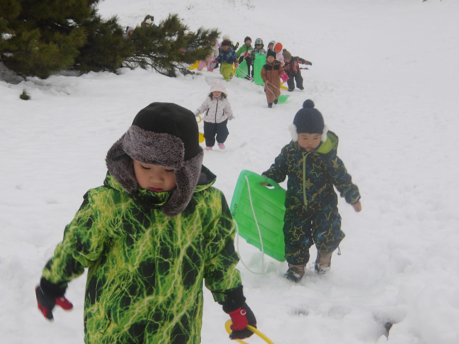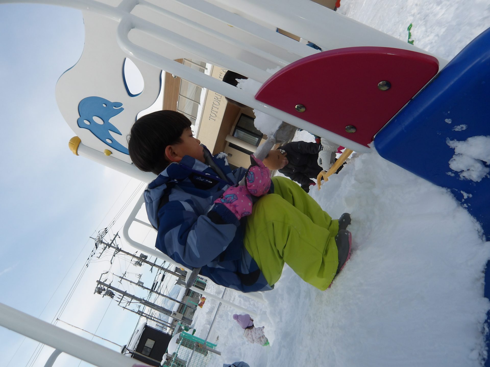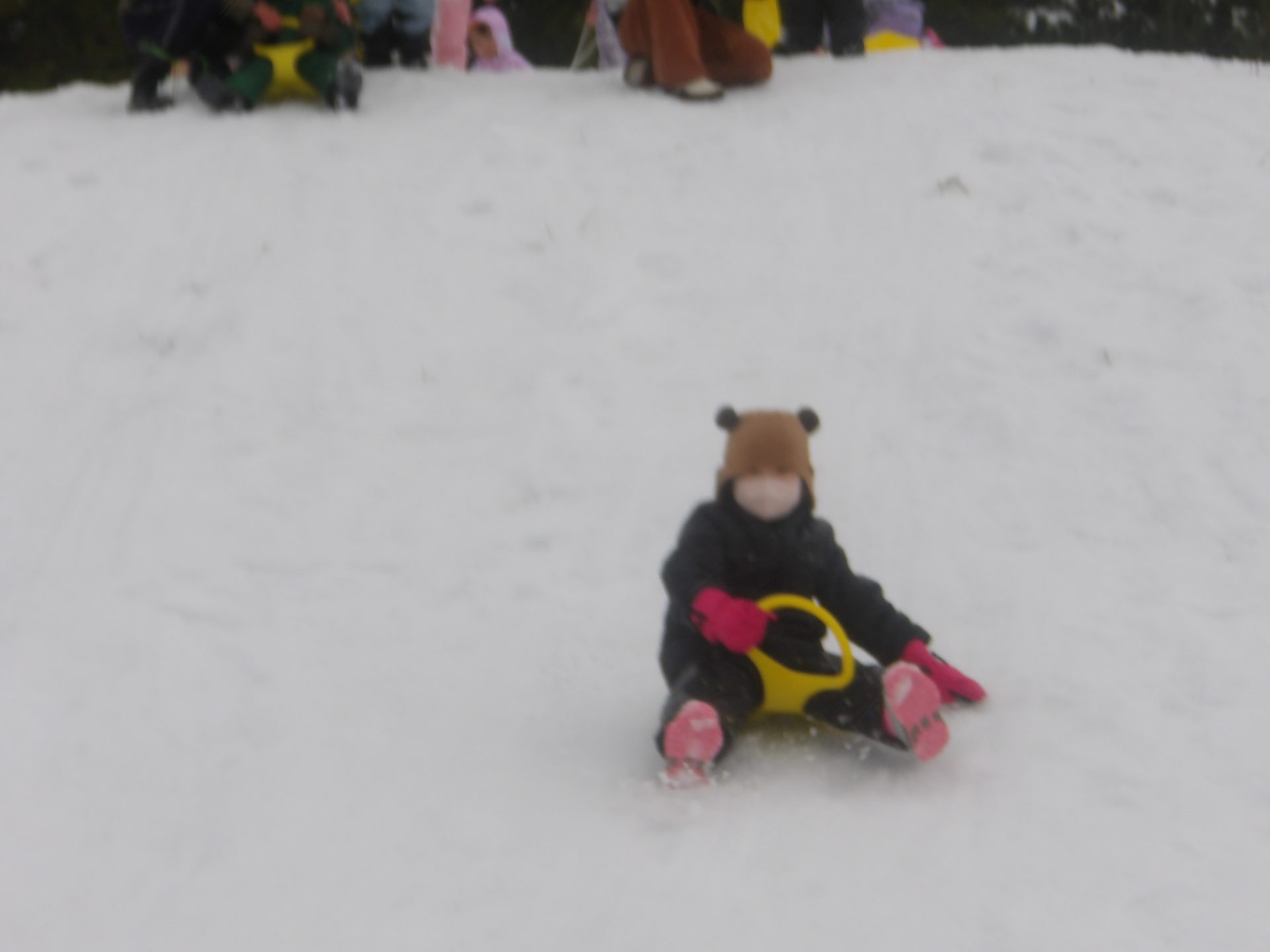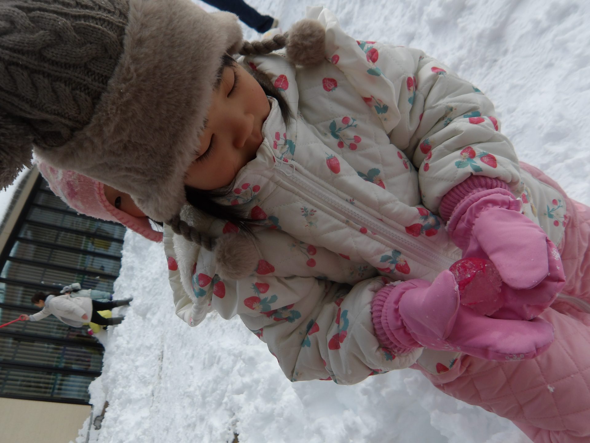 今月はお正月遊びや鬼ごっこ、工作、楽器作りなどいろいろ楽しんでいますが、なんといっても冬の醍醐味は雪遊び!