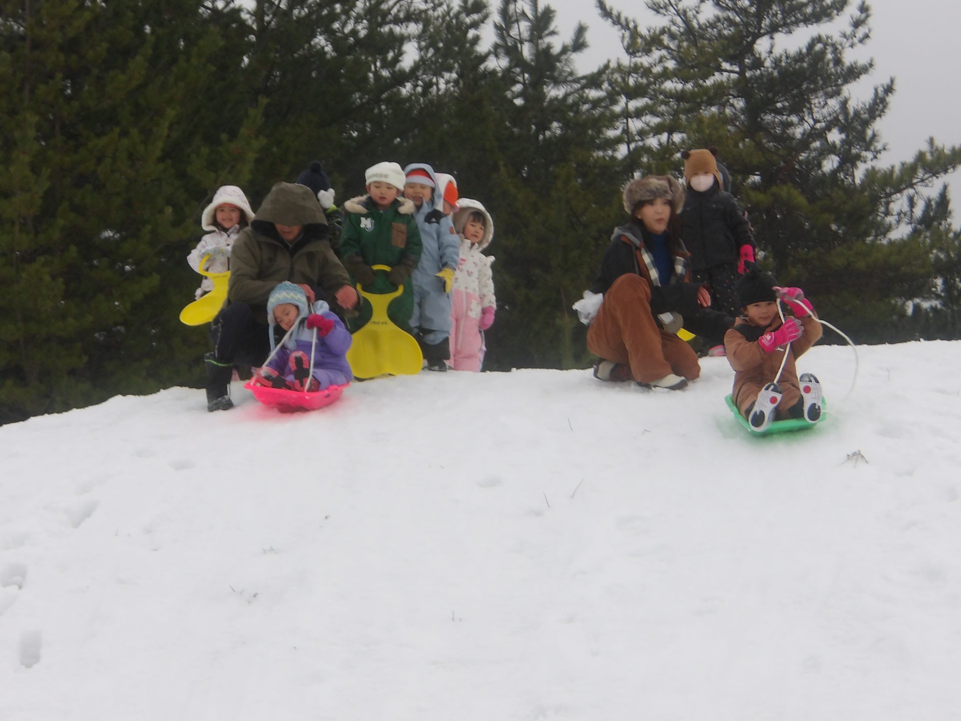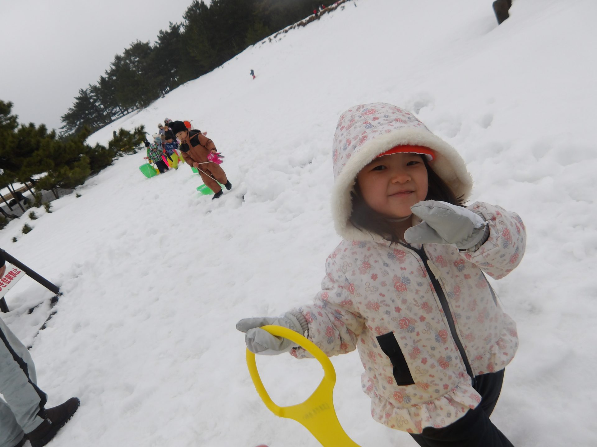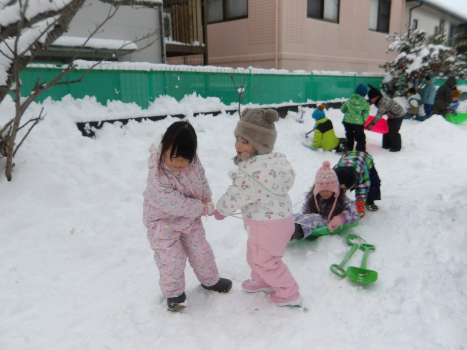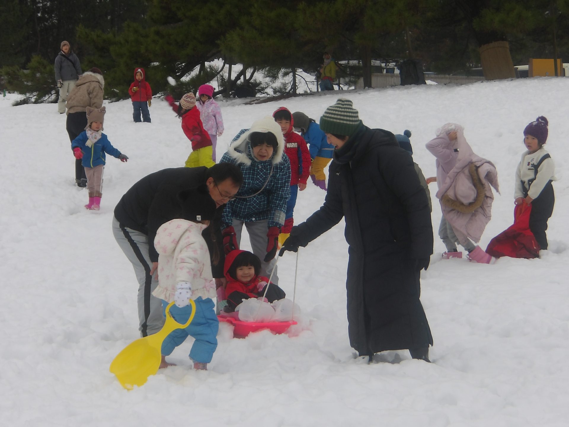 今月はお正月遊びや鬼ごっこ、工作、楽器作りなどいろいろ楽しんでいますが、なんといっても冬の醍醐味は雪遊び!