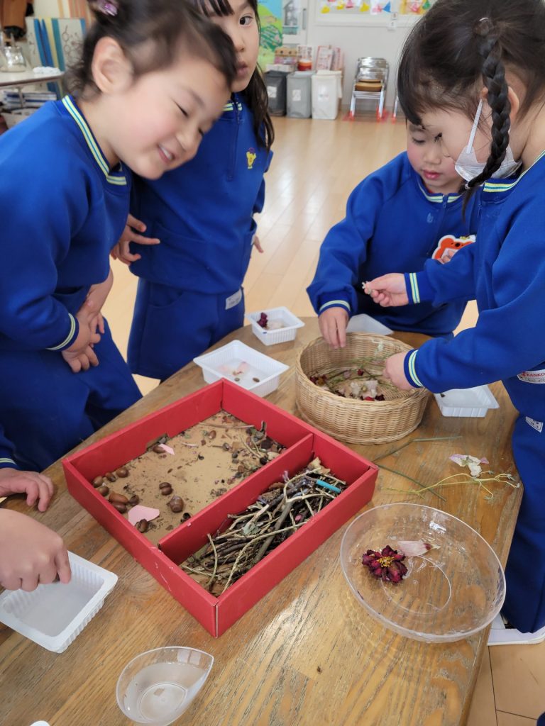 お正月遊びとは変わりますが、皆様たくさんのリサイクル材のご協力ありがとうございました!子ども達は毎日工作遊びを楽しんでいます。