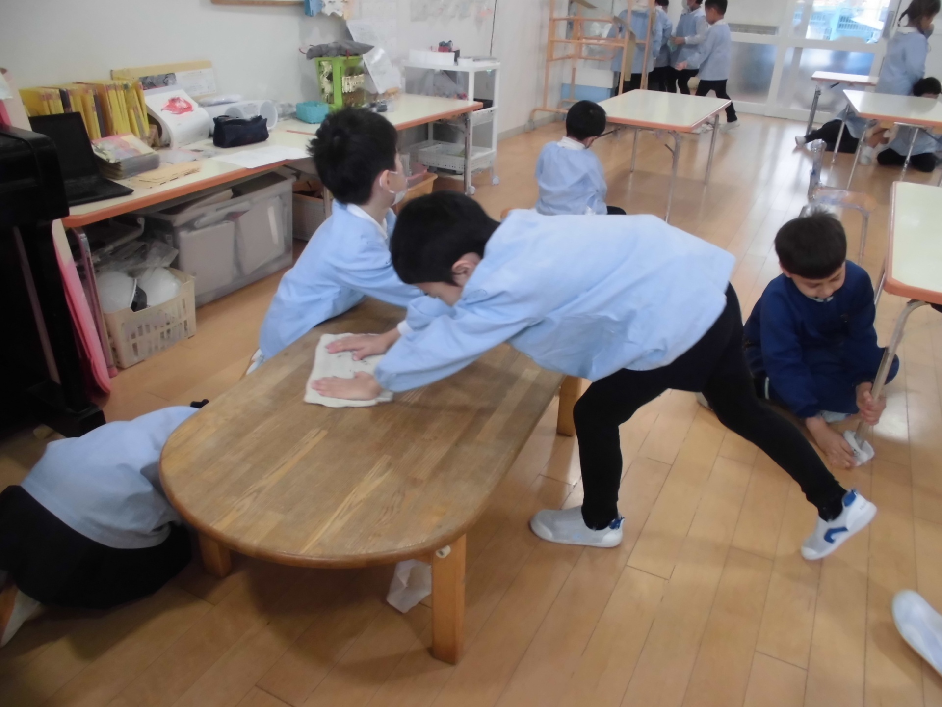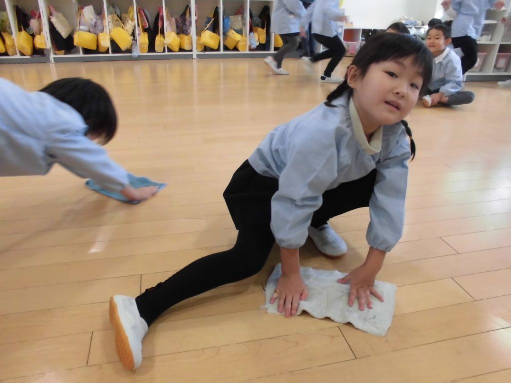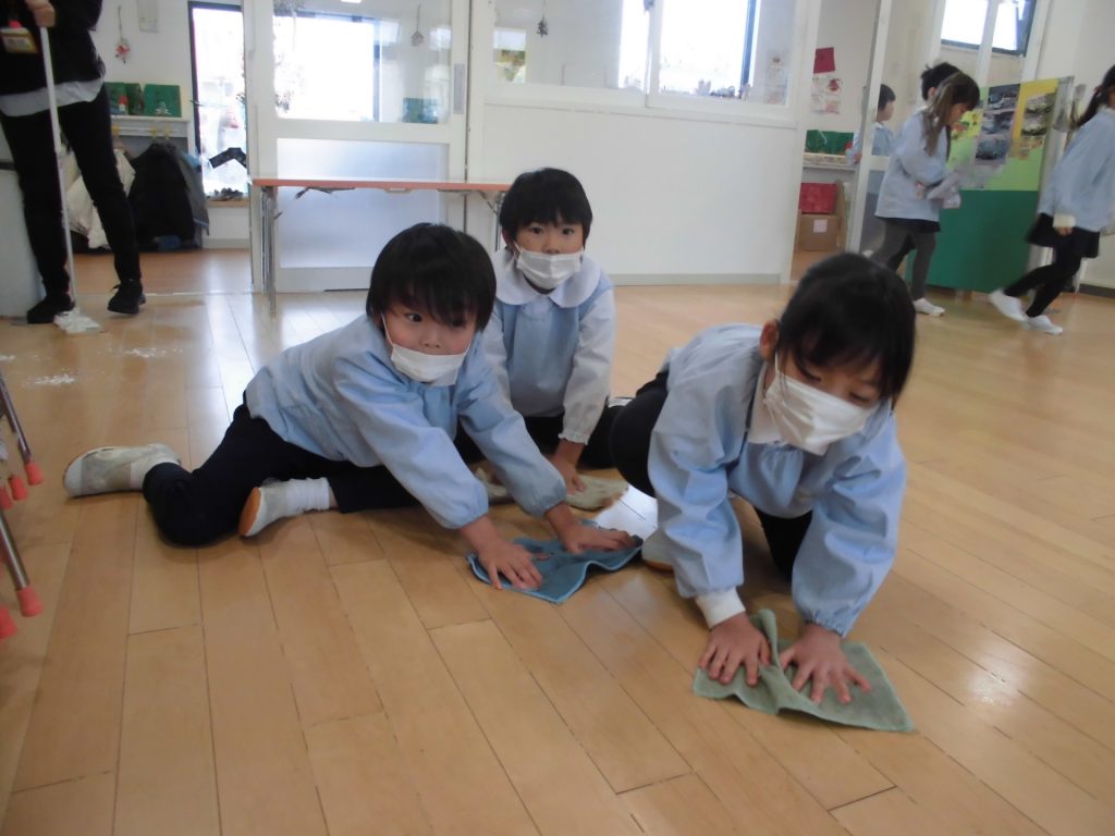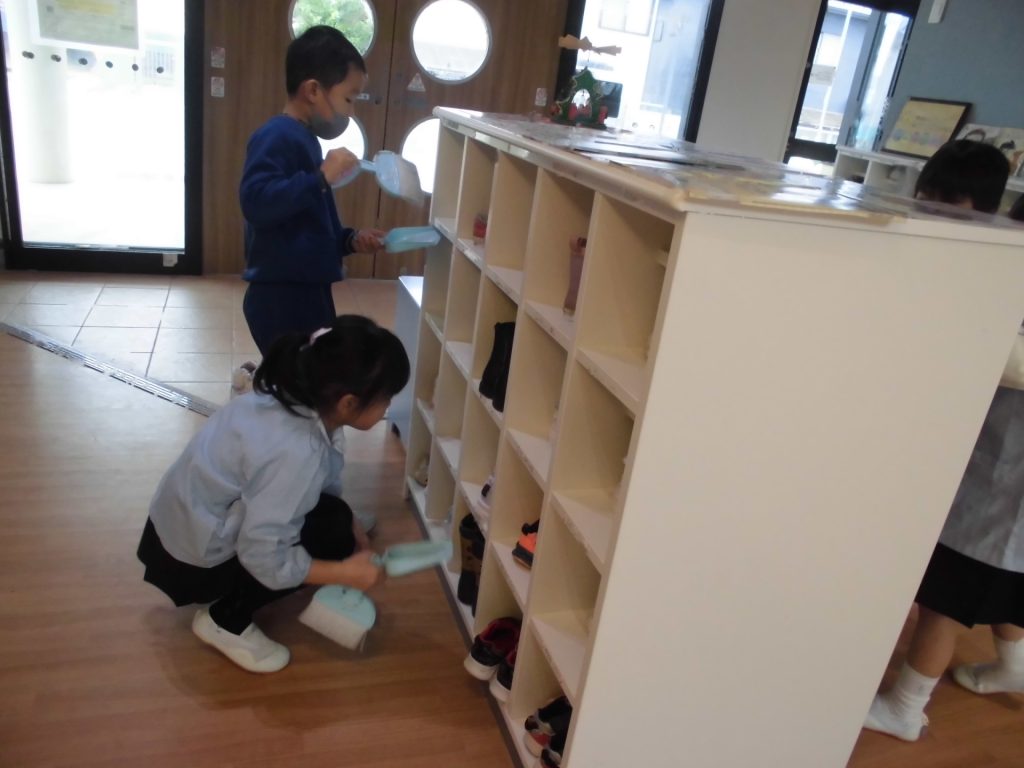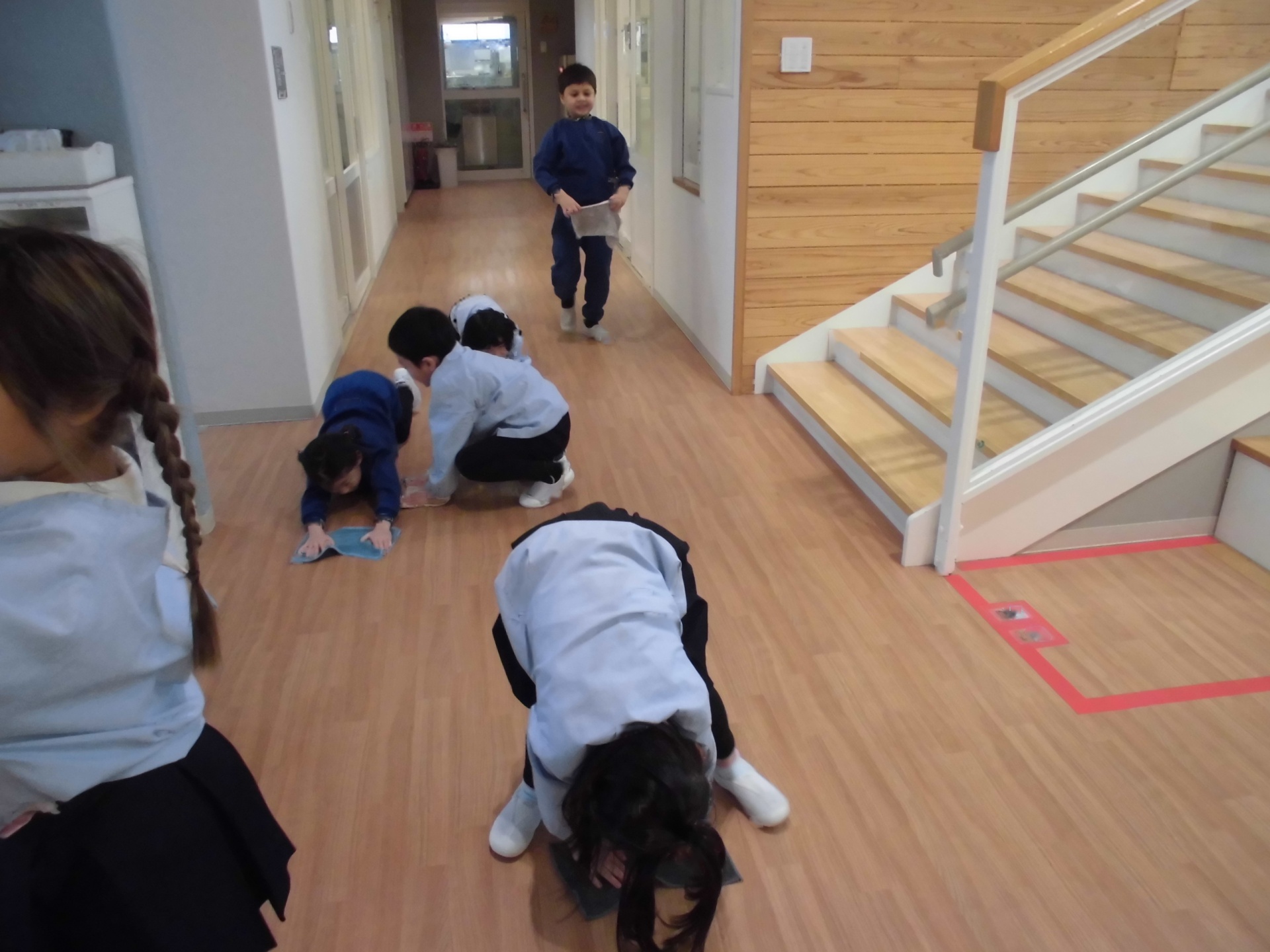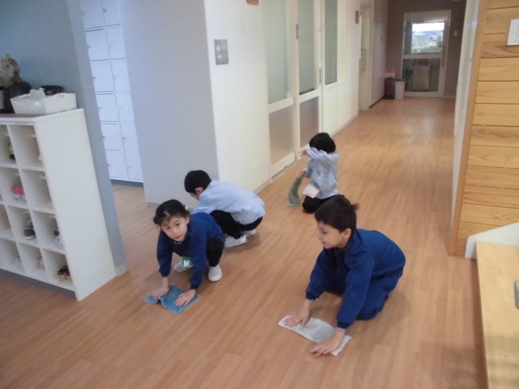 そして、保育室や廊下、玄関を綺麗に掃除しました。