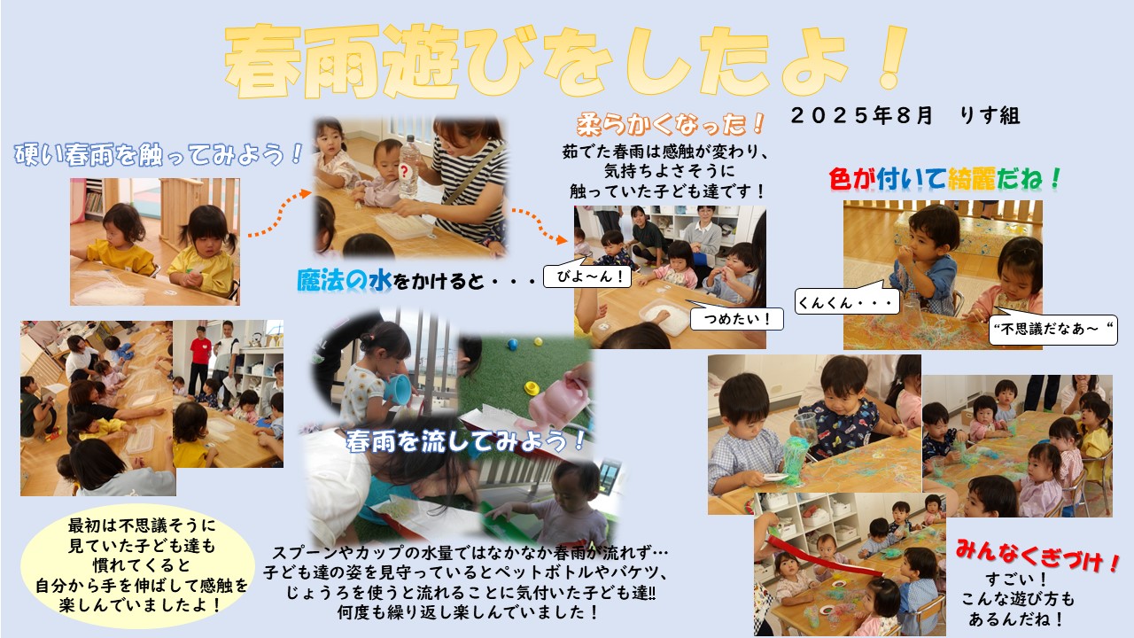 8月のドキュメンテーションを保育室前に掲示しておりますのでぜひご覧くださいね♪