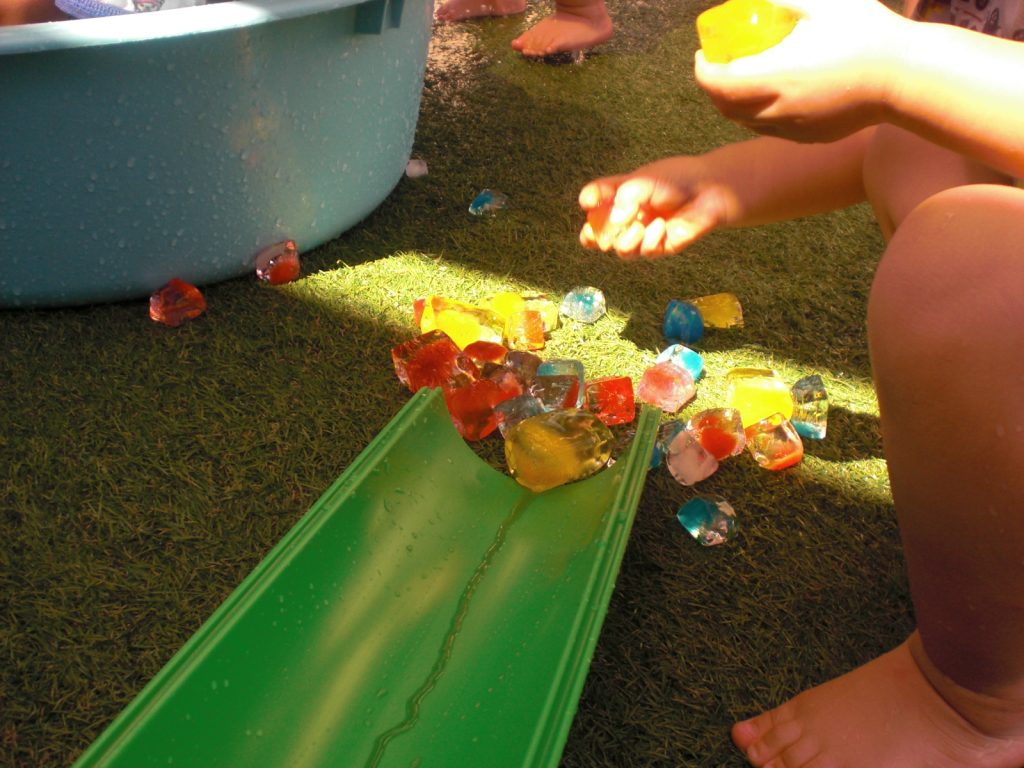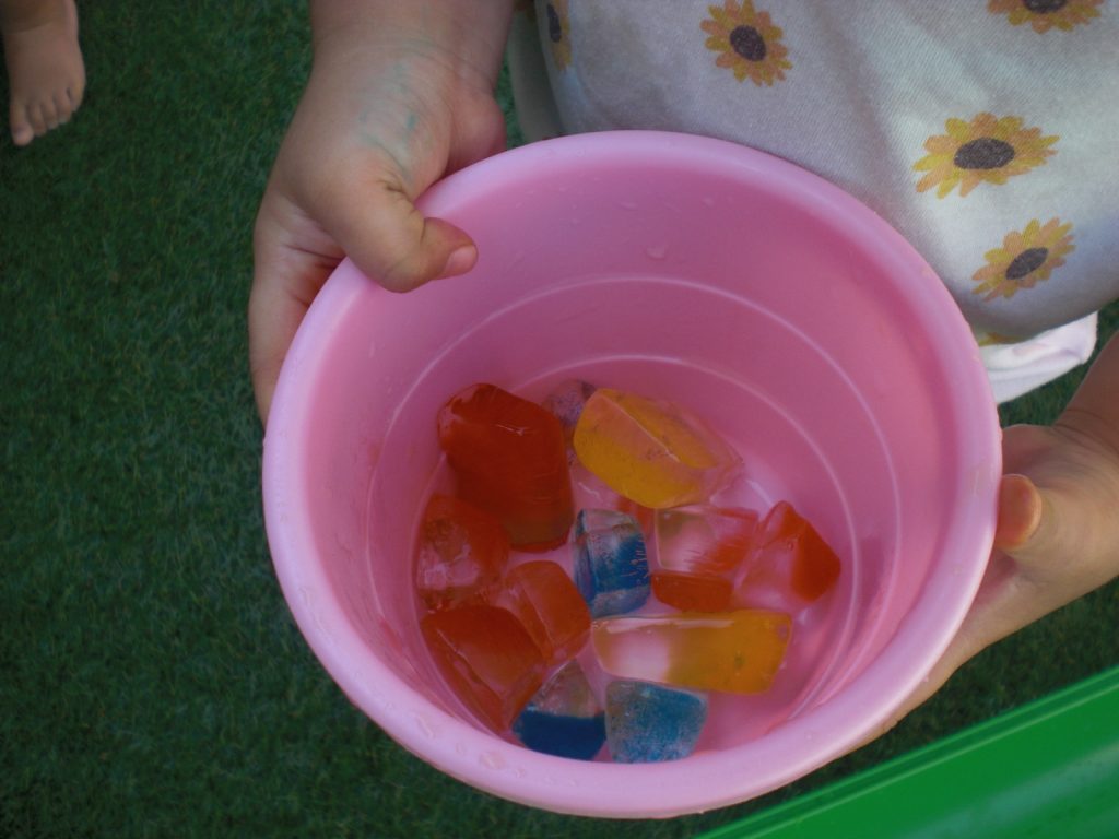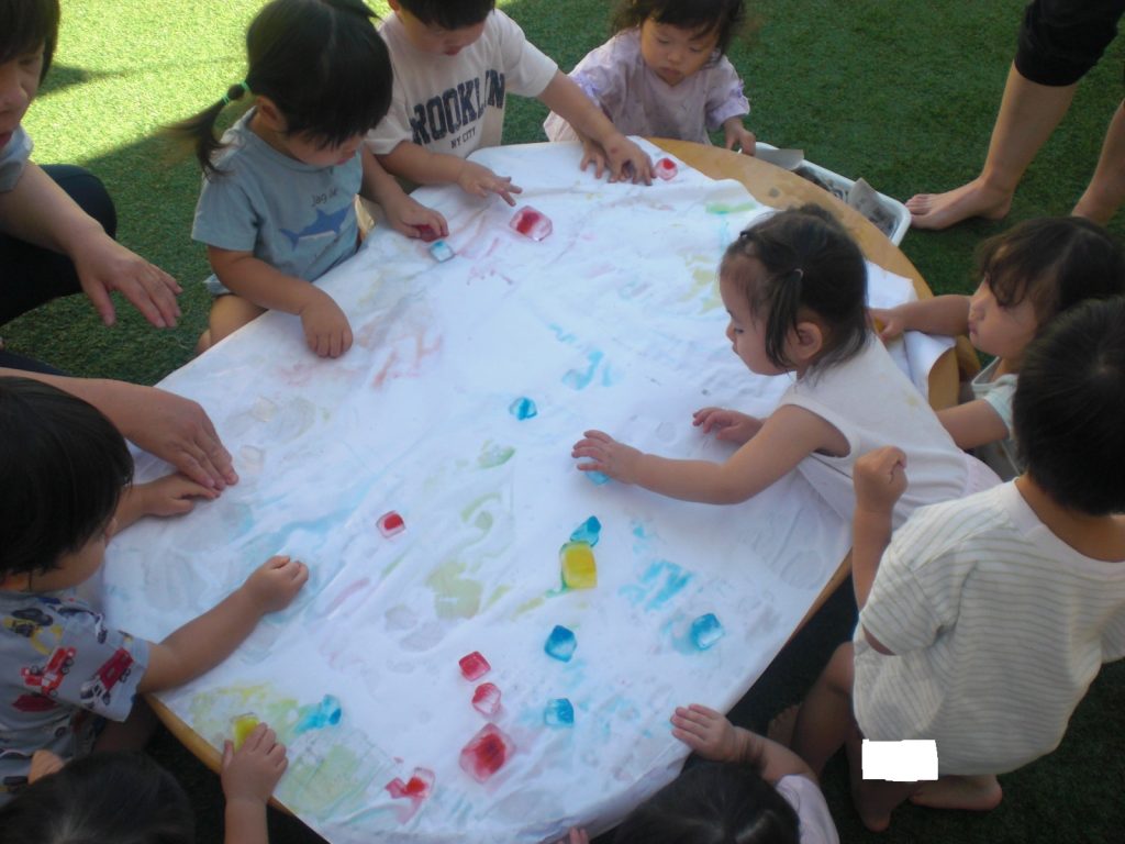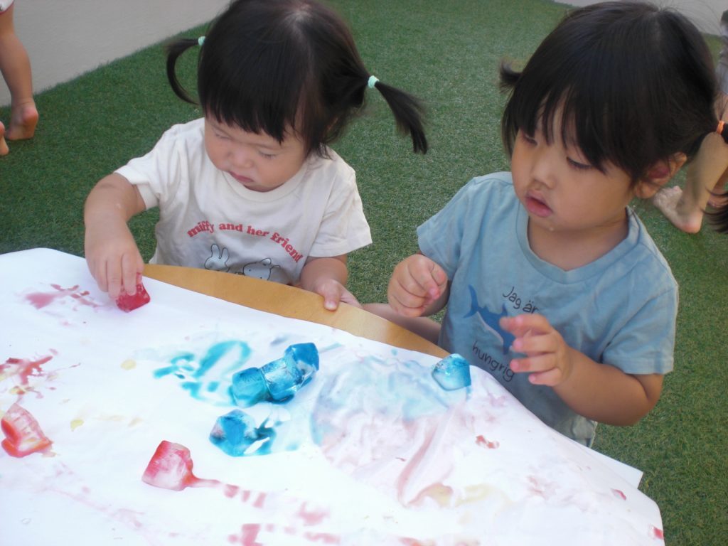 色が付いた氷を不思議そうに眺めていた子ども達!