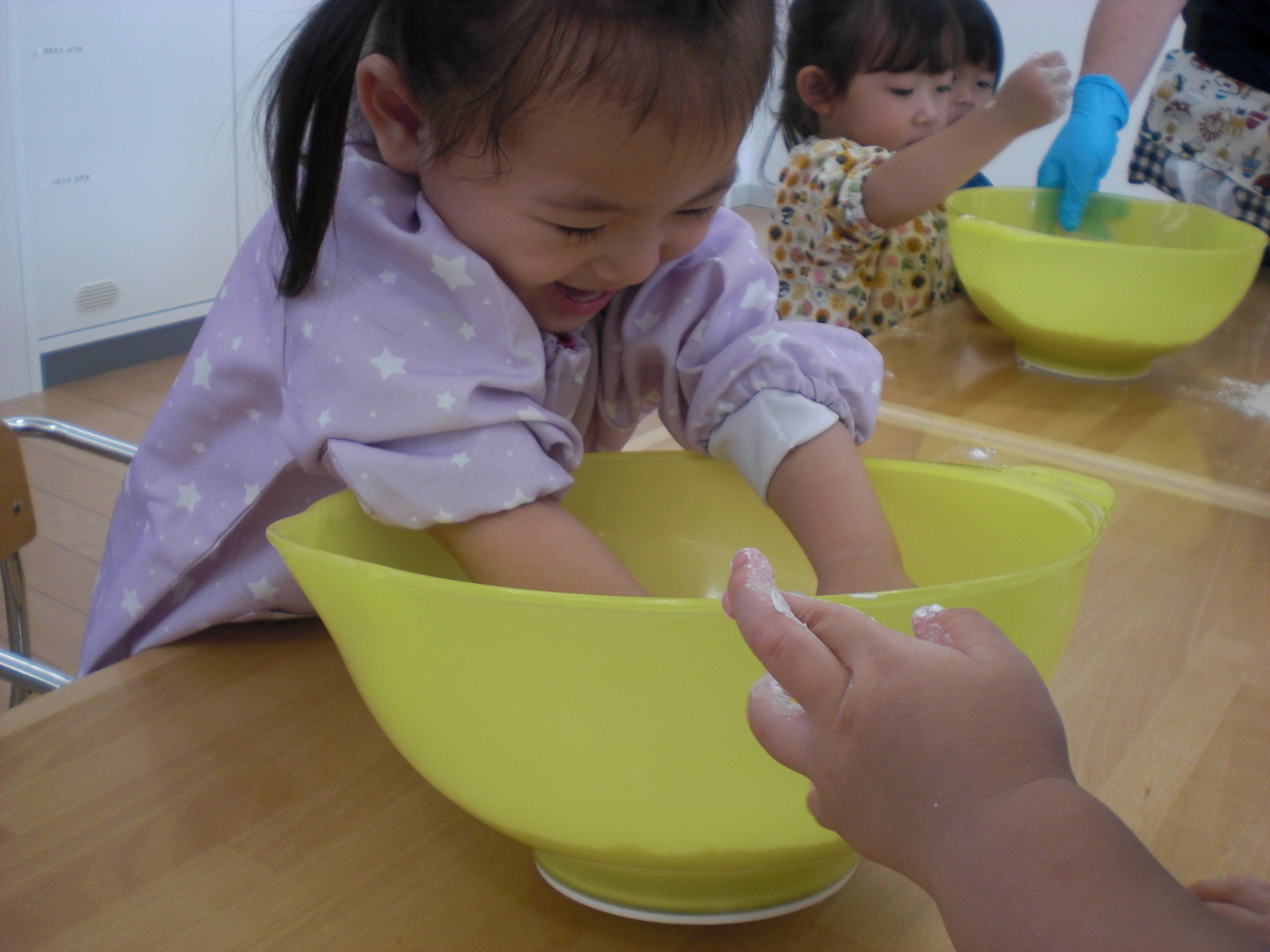 今後もいろんな感触遊びを通して「不思議!」「気持ちいいな!」「ちょっと…苦手かも…」などいろんな感情や体験を大切にしながら保育を進めていけれたらと思います。
