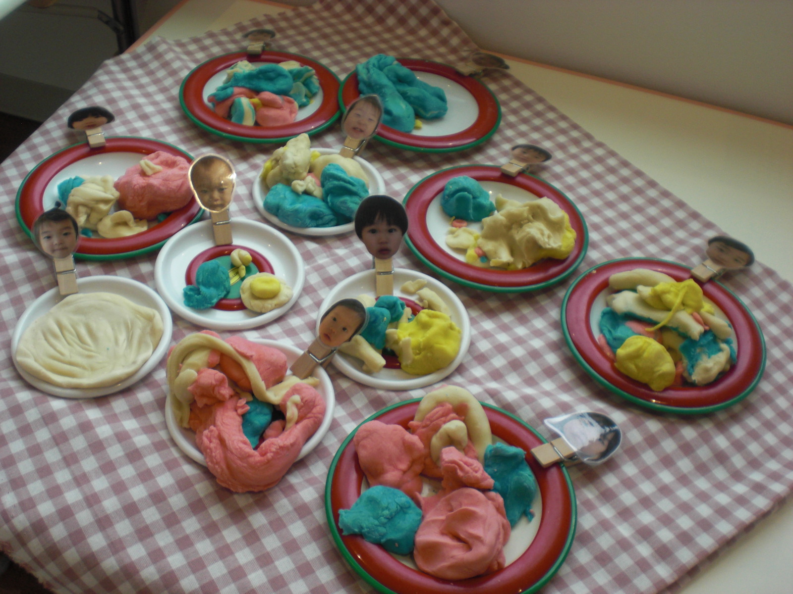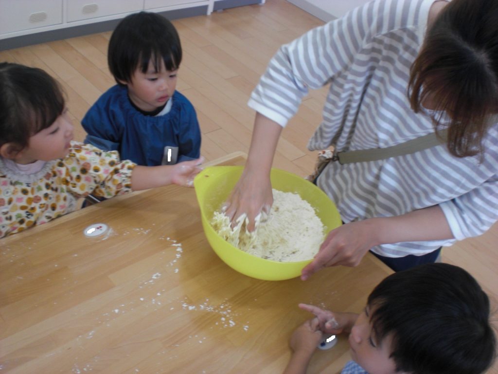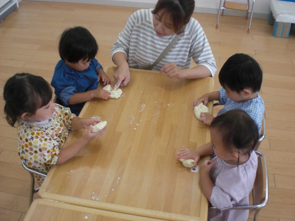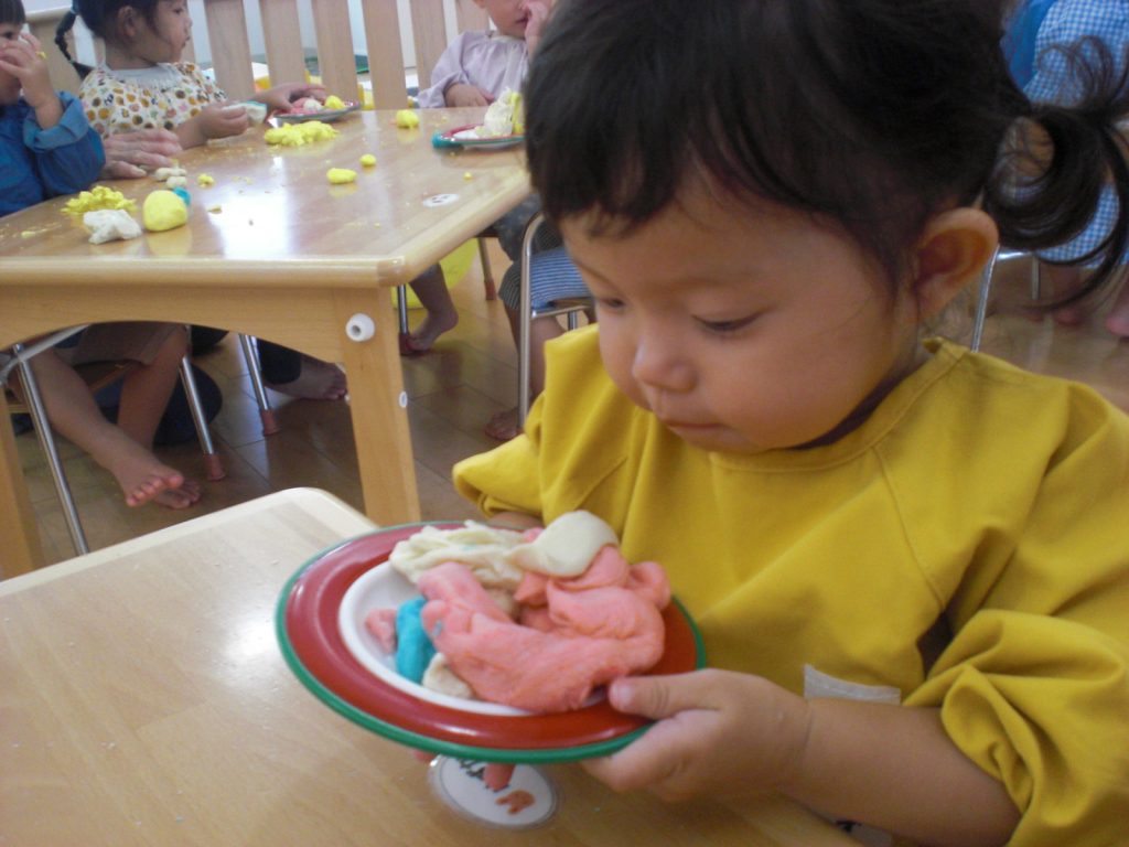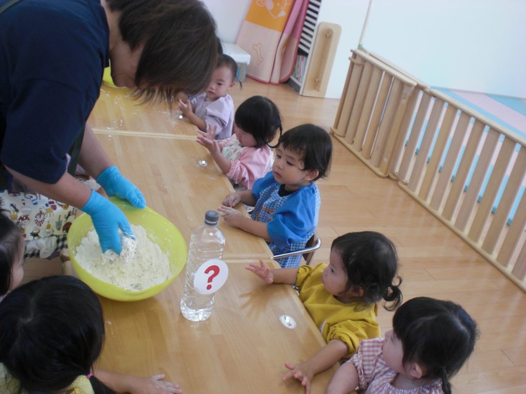 もちもちの感触を指を触って楽しんでいたり、伸ばしたり、ちぎったりして遊んでいましたよ。