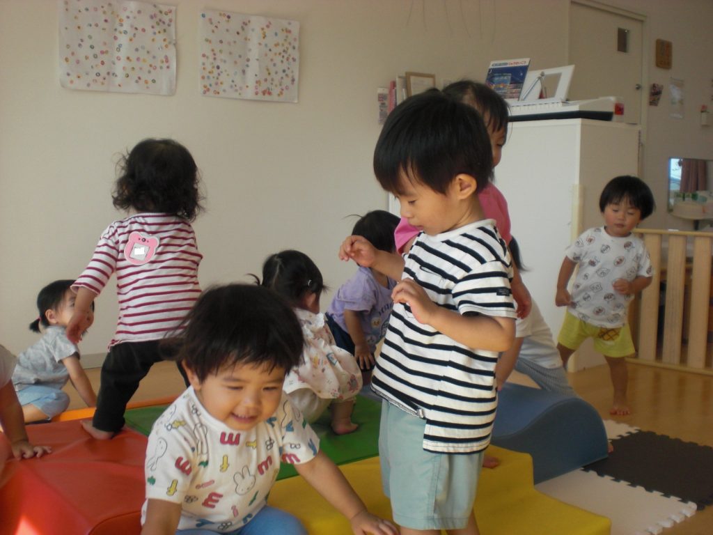 ソフト積み木では登ったり…降りたりして繰り返し楽しんでいる子ども達!