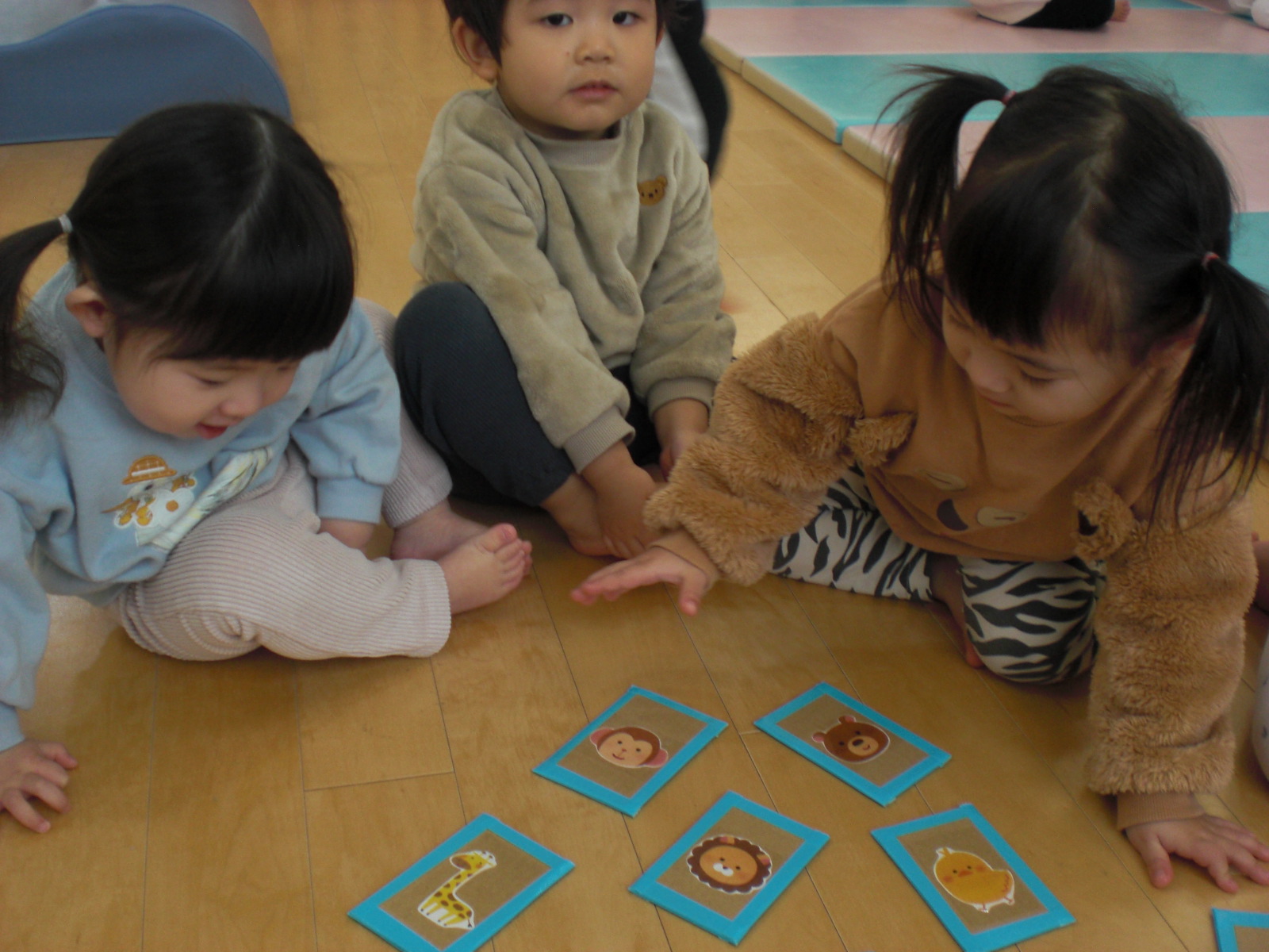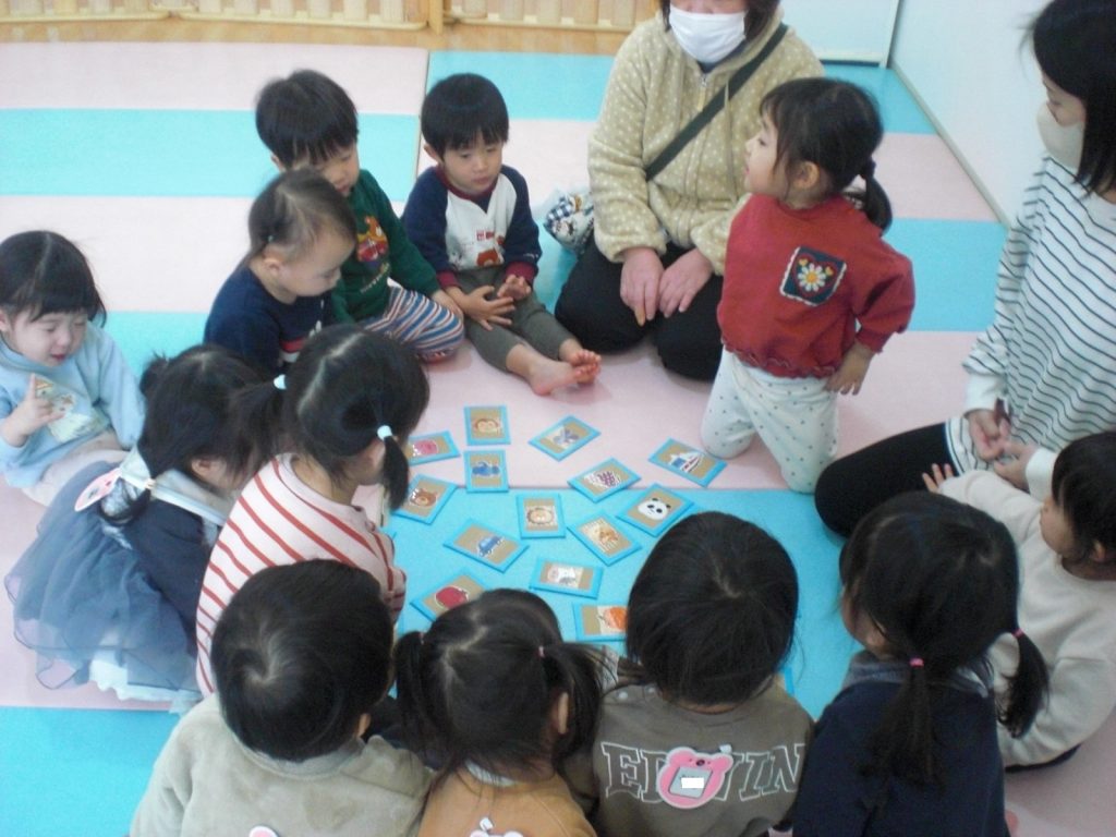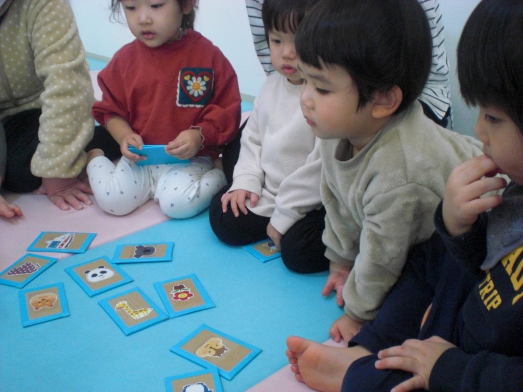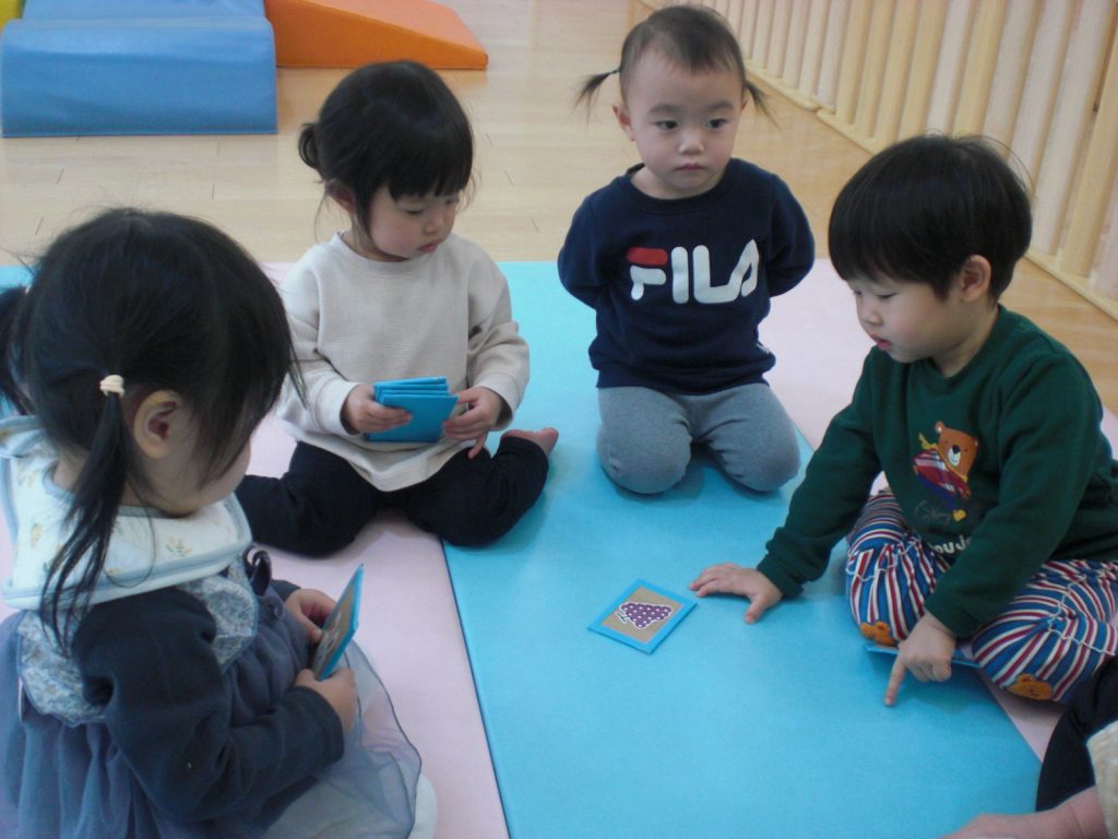 かるた遊びの様子です!担任の声を聞き、パっと手を伸ばして上手に取っていましたよ!