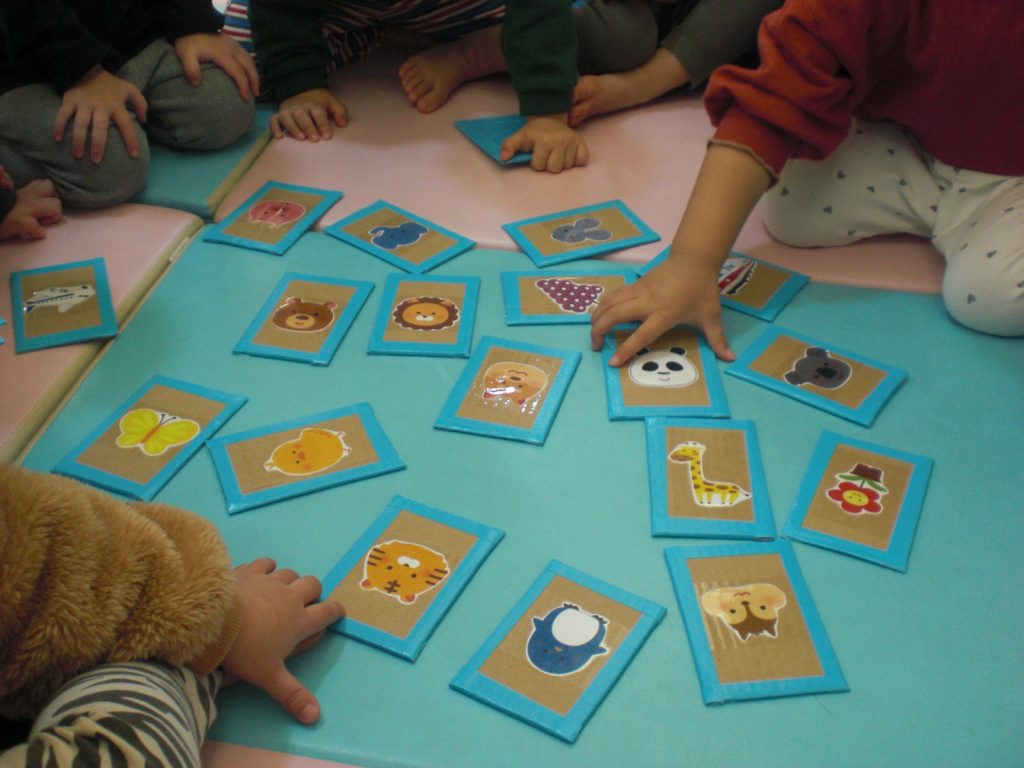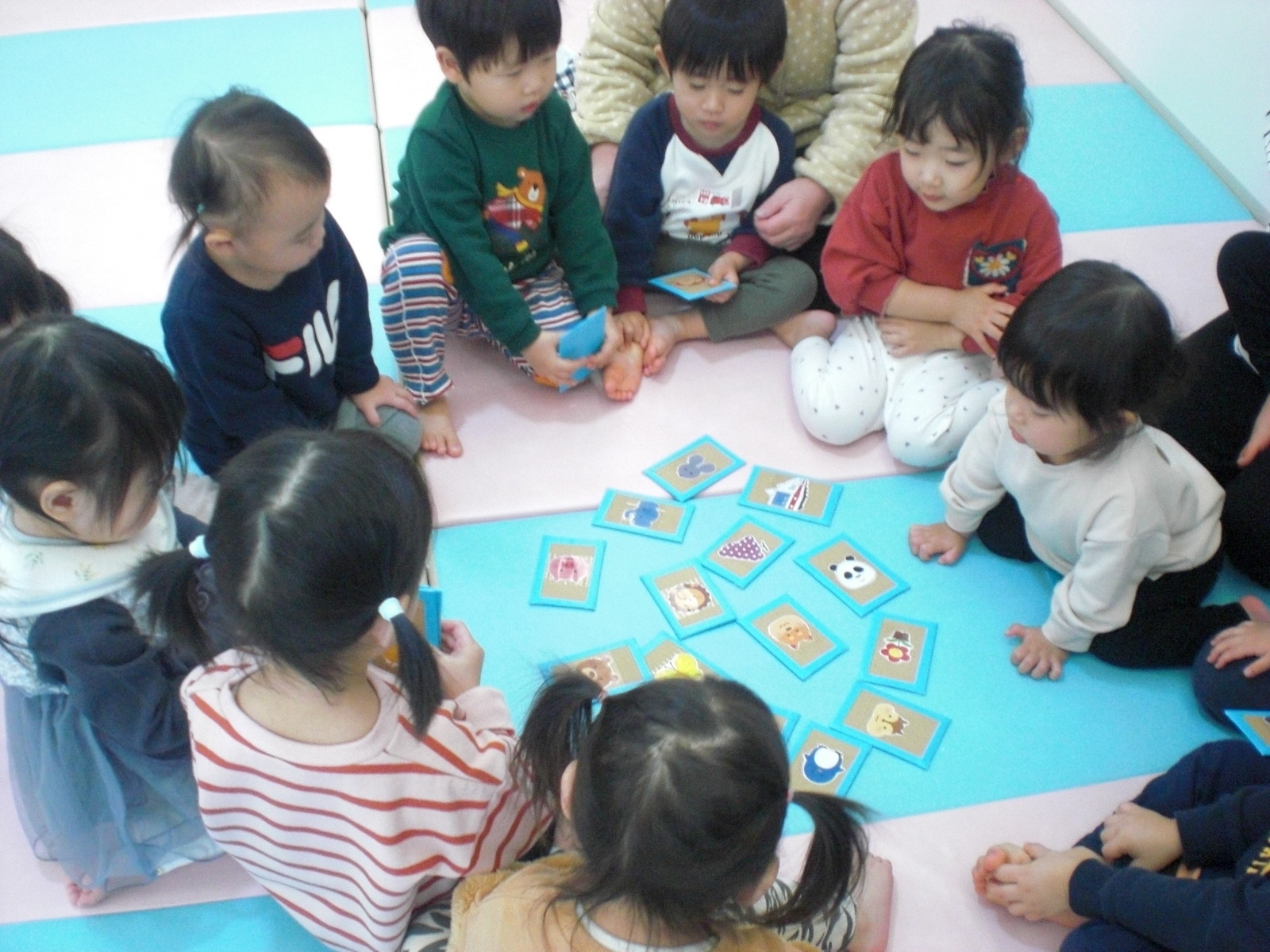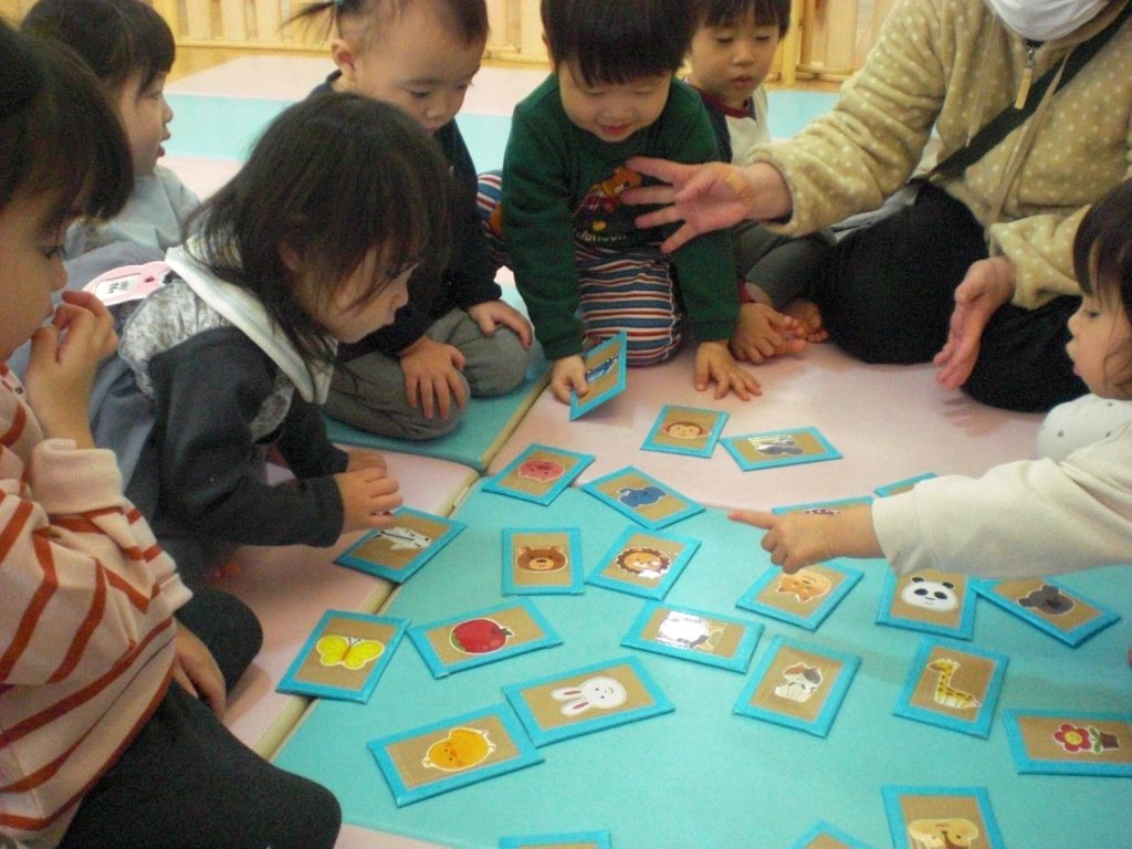 かるた遊びの様子です!担任の声を聞き、パっと手を伸ばして上手に取っていましたよ!