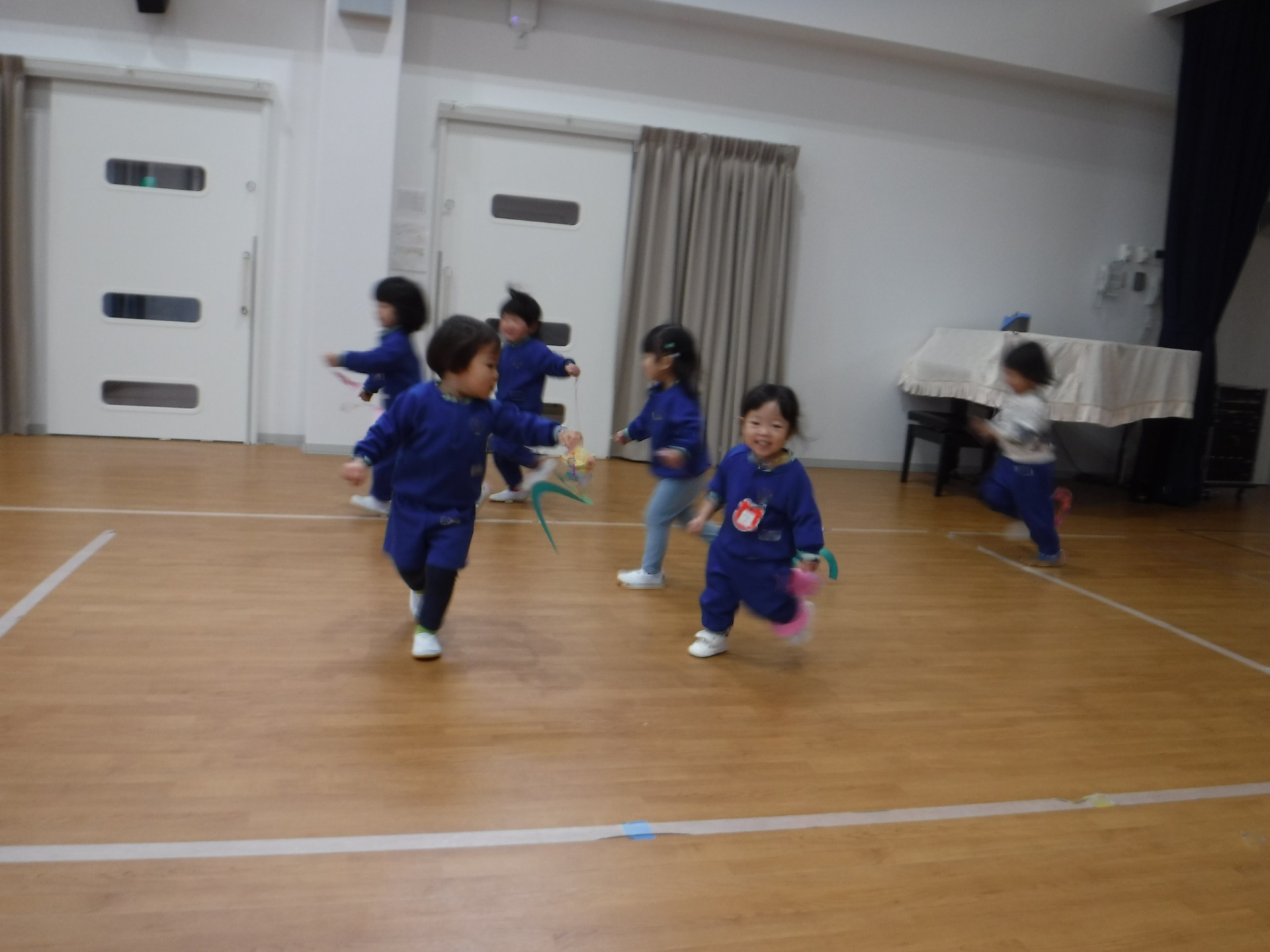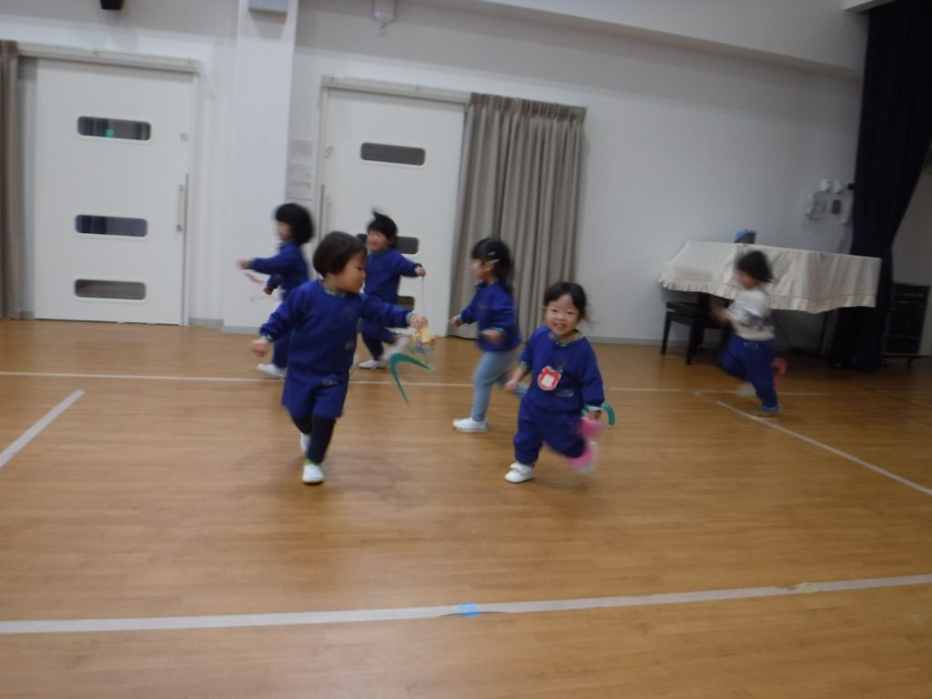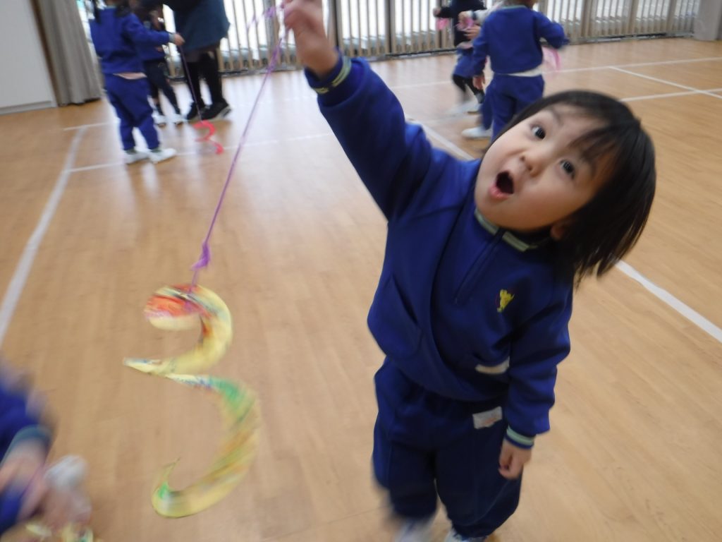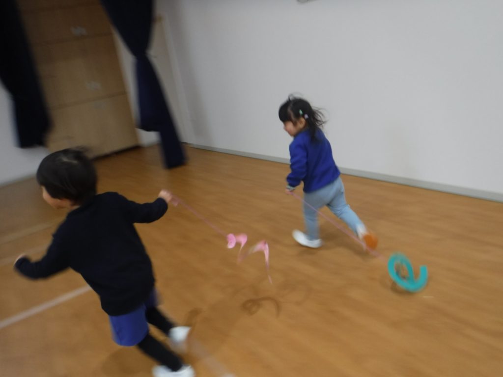 くるくる回る凧ができました。ホールで走って遊びました☆