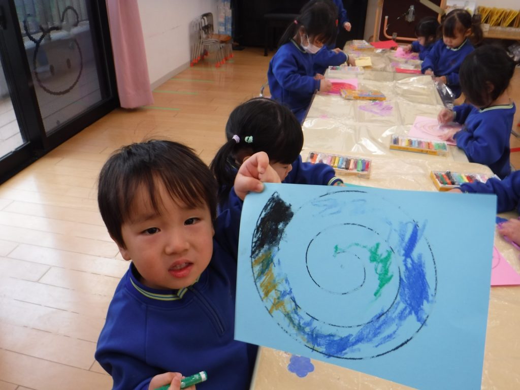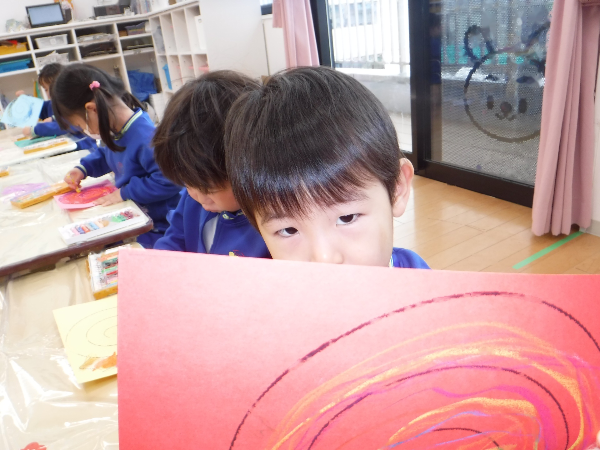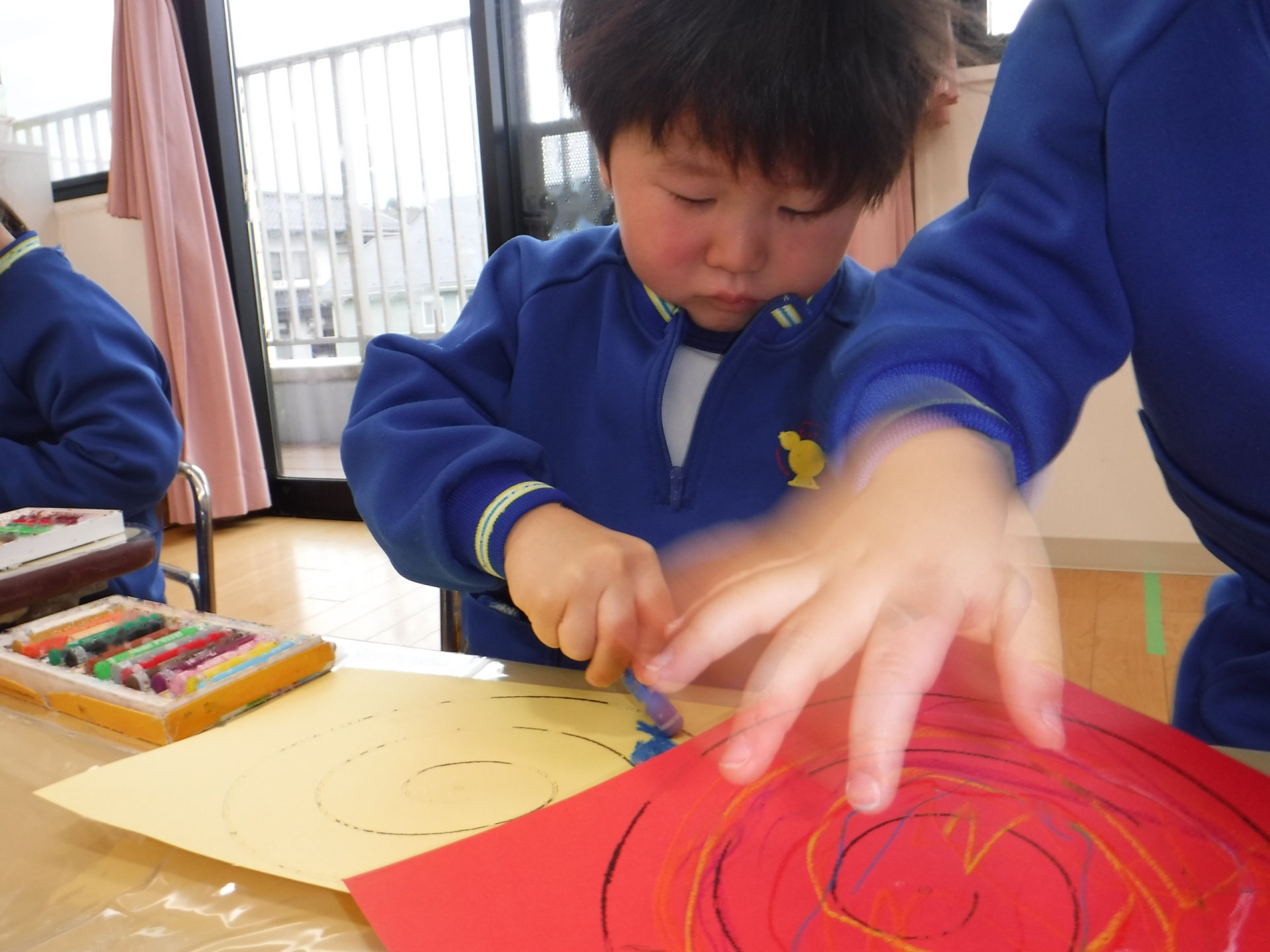 くるくる回る凧ができました。ホールで走って遊びました☆