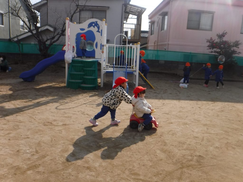 19日(月)、週の始めはとても良い天気で、園庭で元気いっぱい外遊びを楽しみました☆
