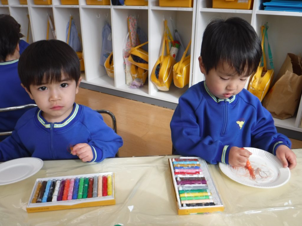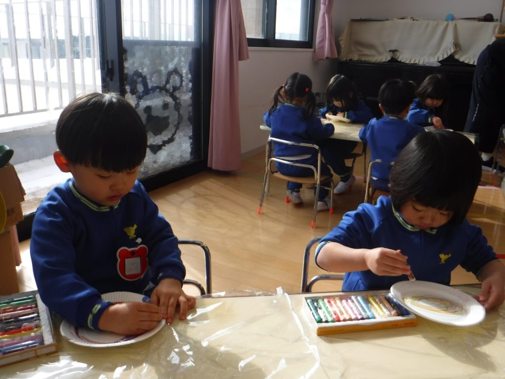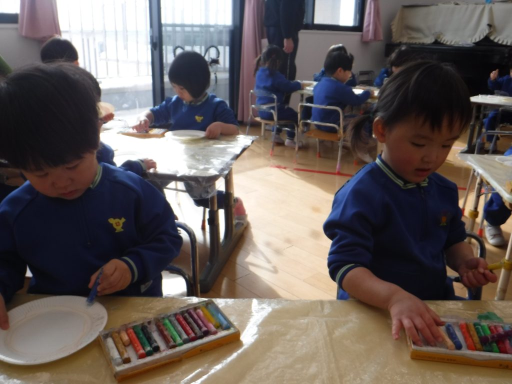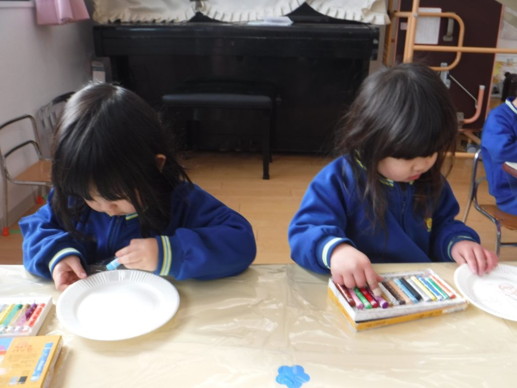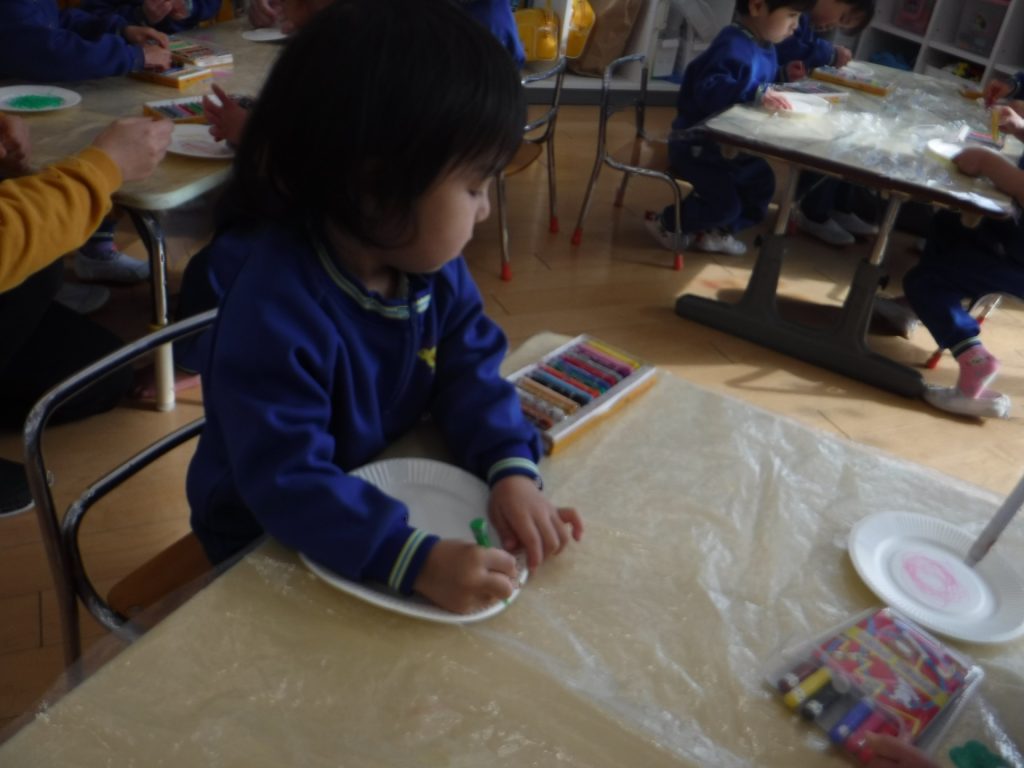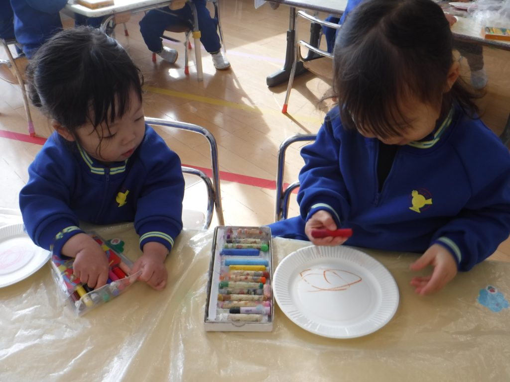 14日(水)、クレヨンで色を塗って…