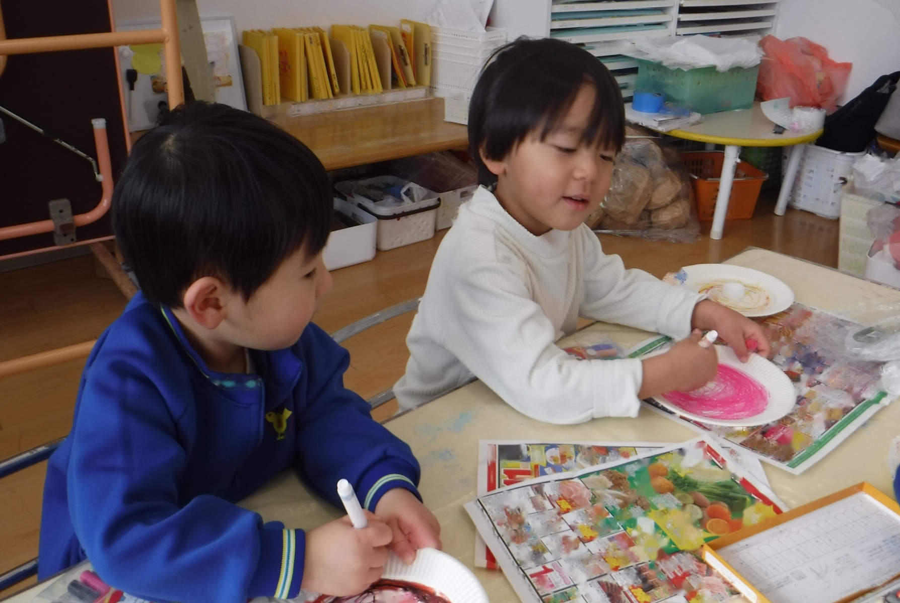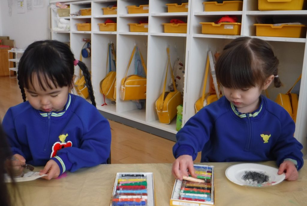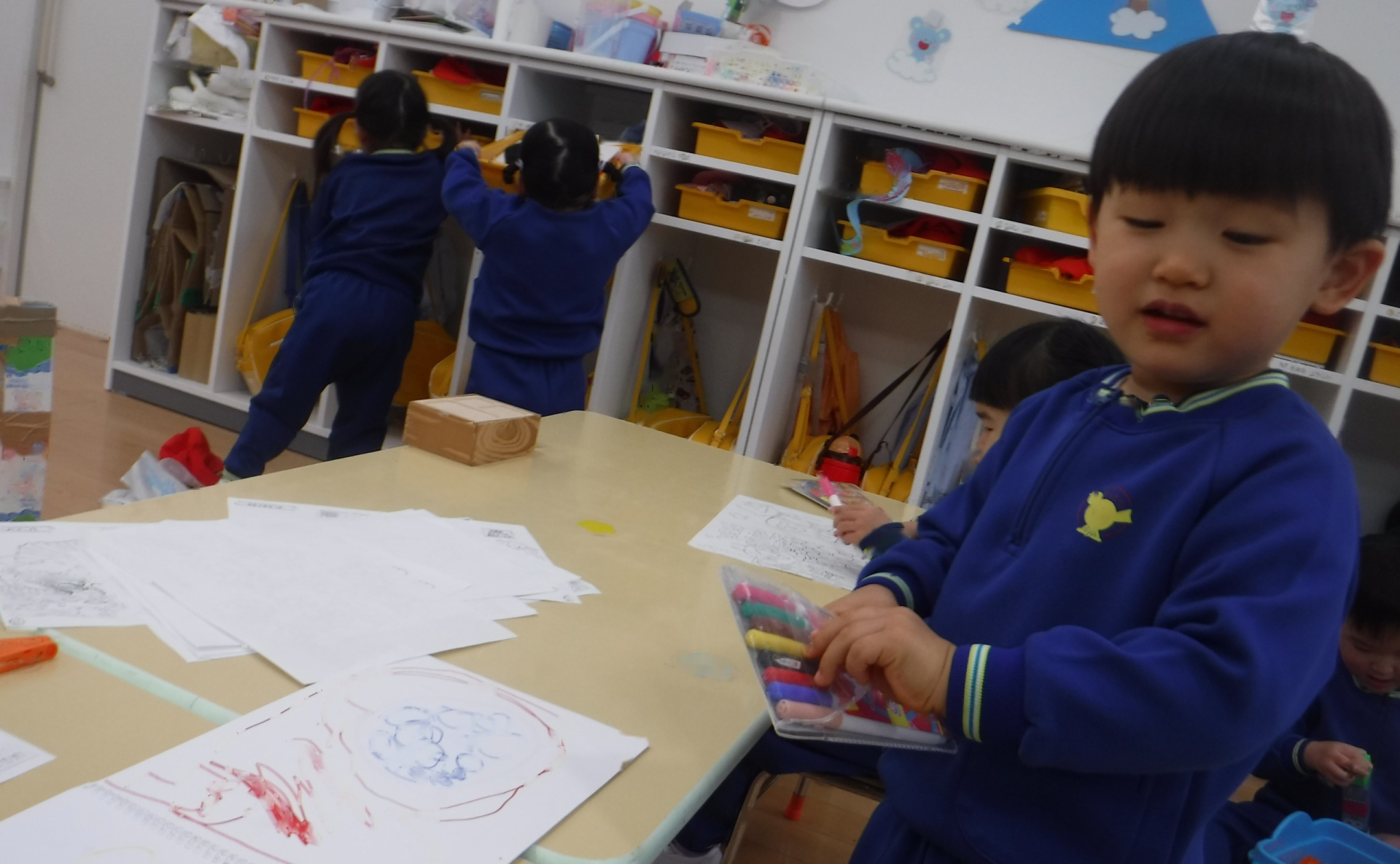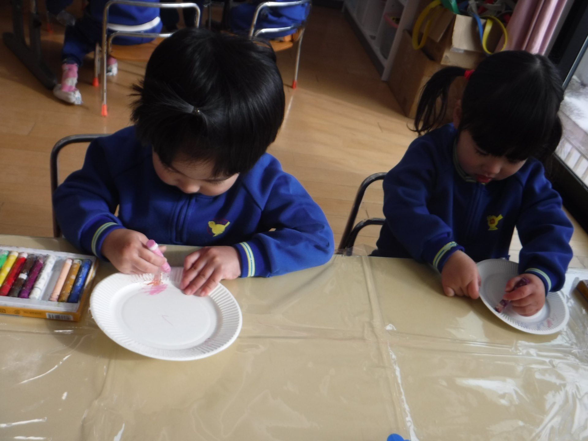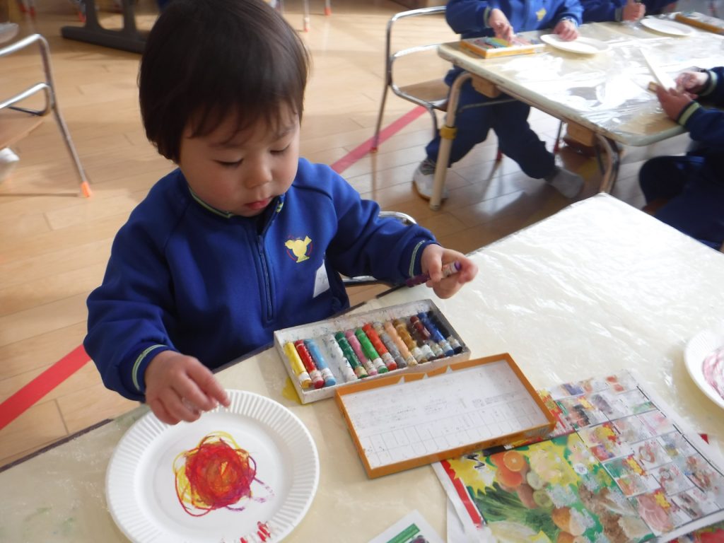14日(水)、クレヨンで色を塗って…