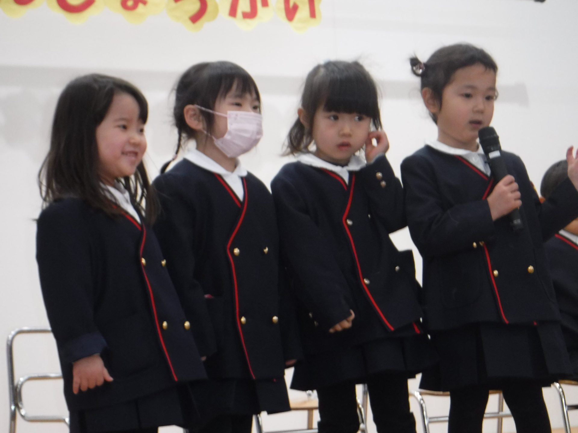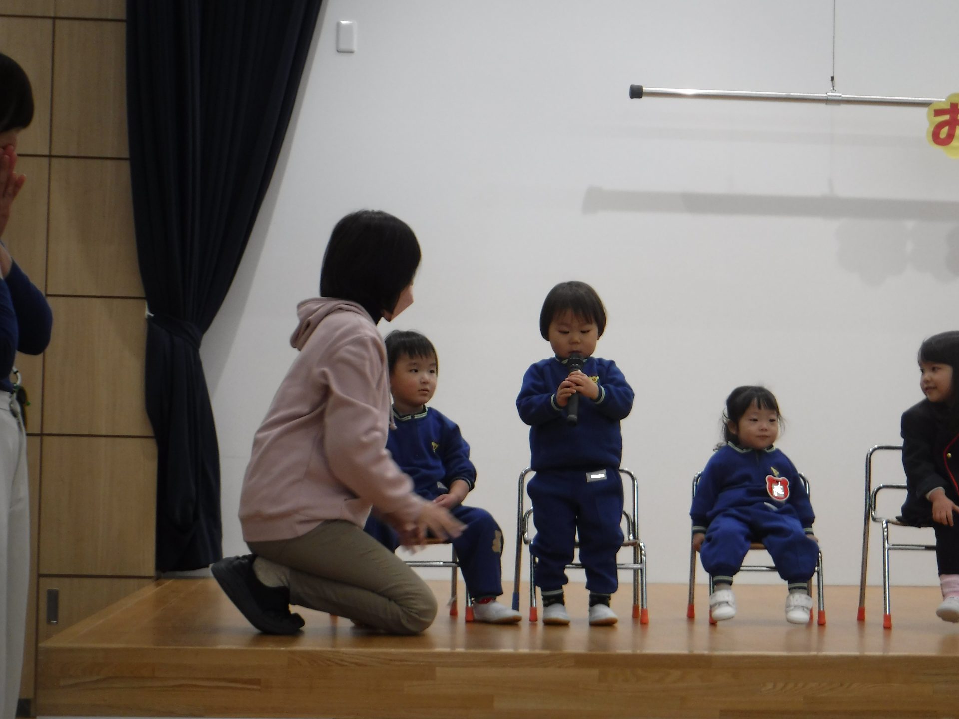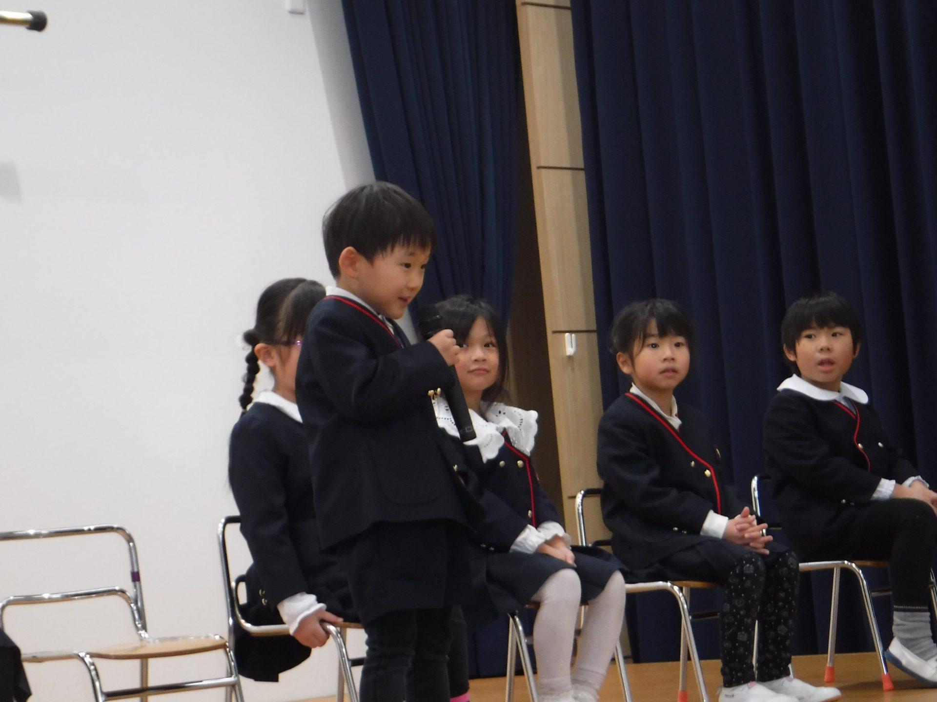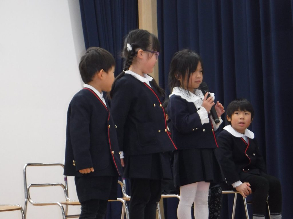 1月9日(金)3学期始業式。みんながホールに集まって、園長先生のお話を聞きました!