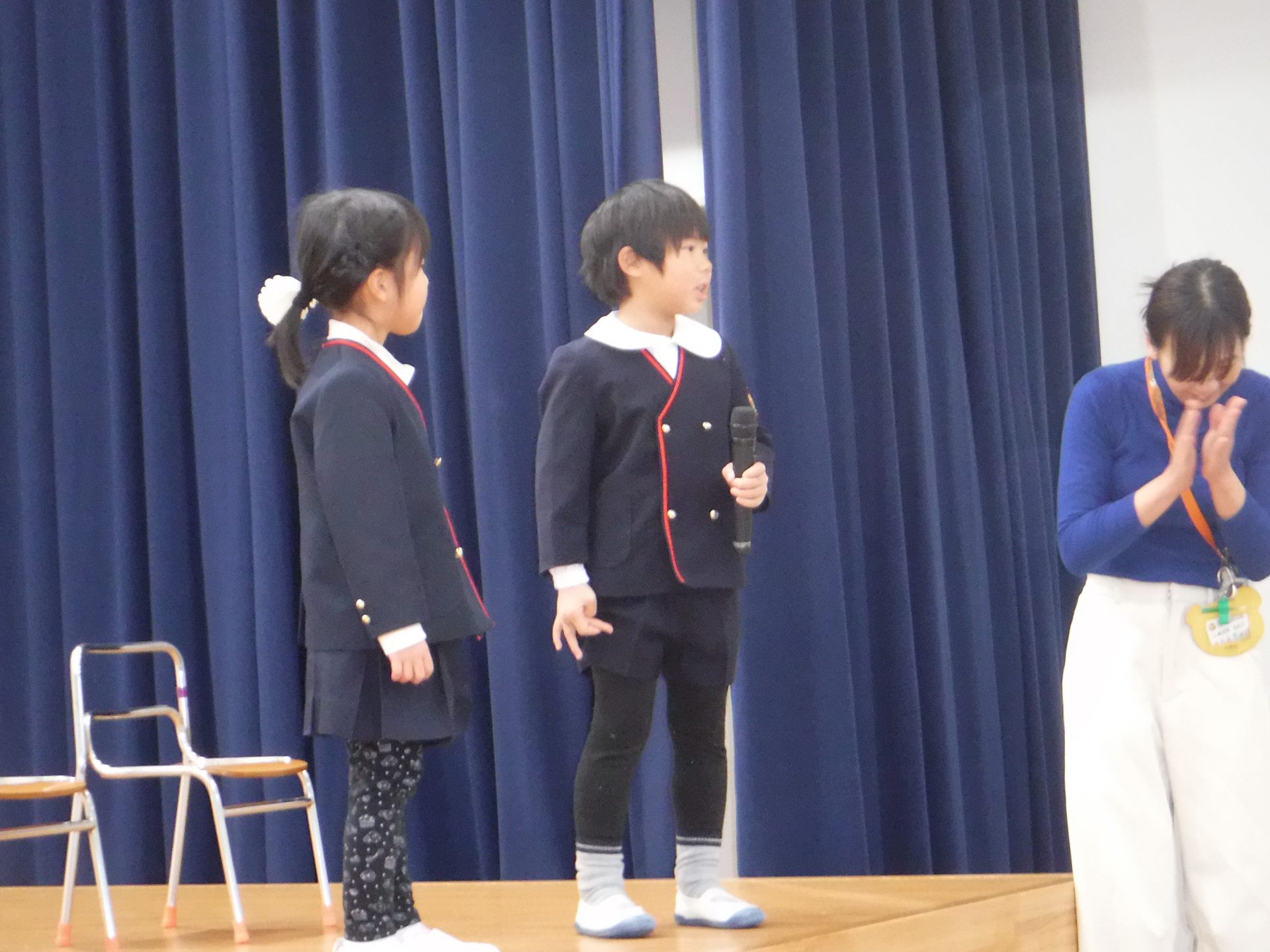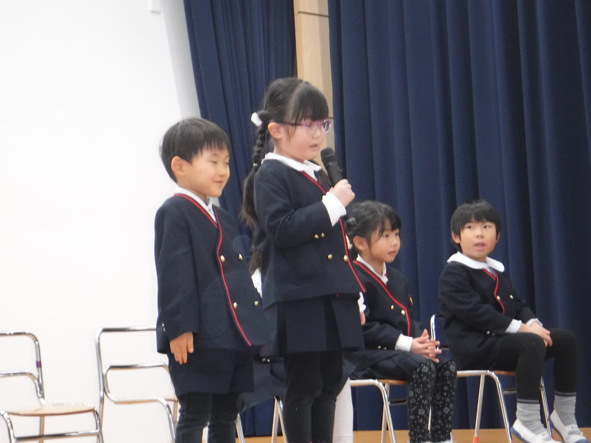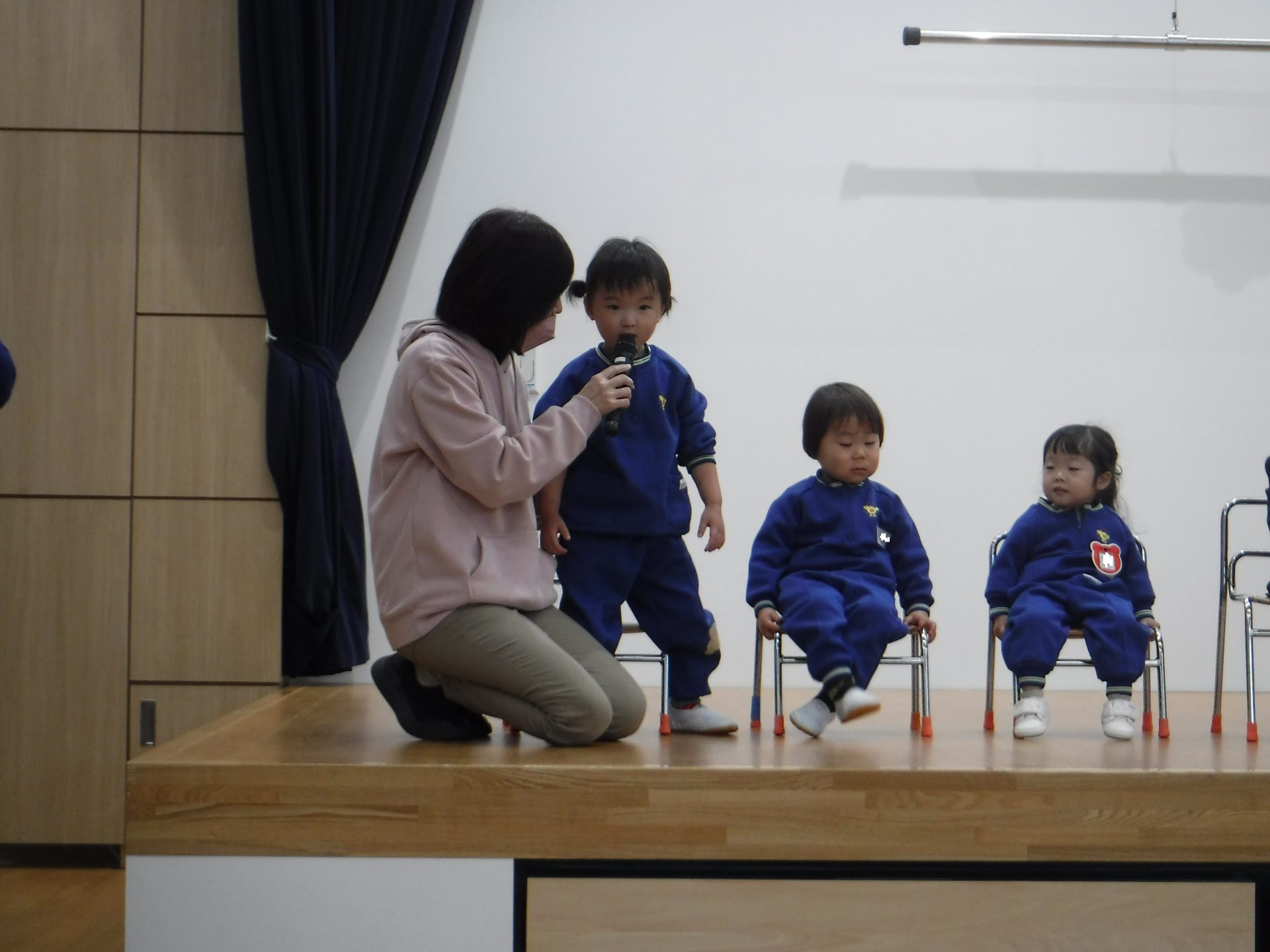 1月9日(金)3学期始業式。みんながホールに集まって、園長先生のお話を聞きました!