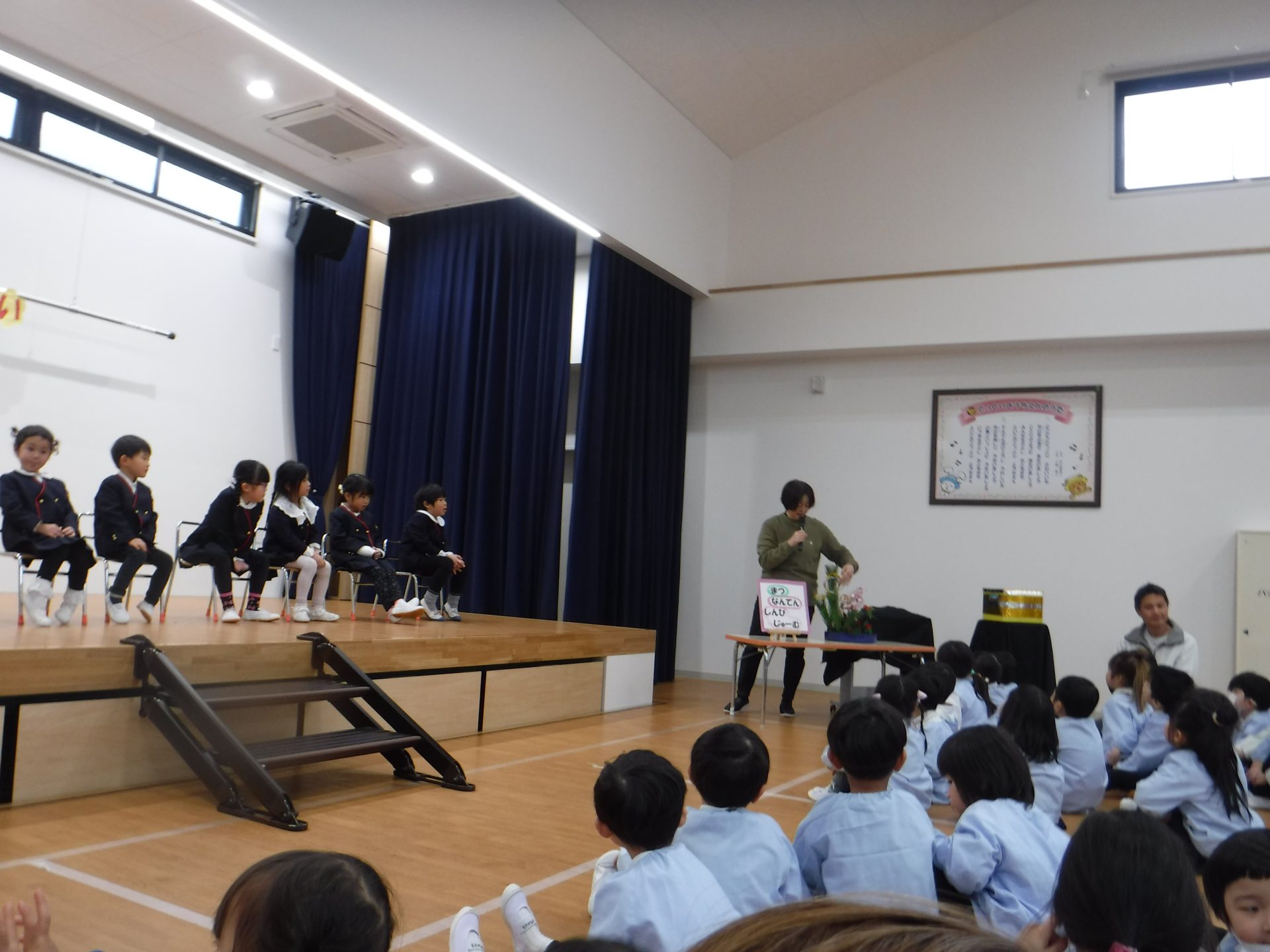 園長先生から、1月のお花の紹介やマジック!!