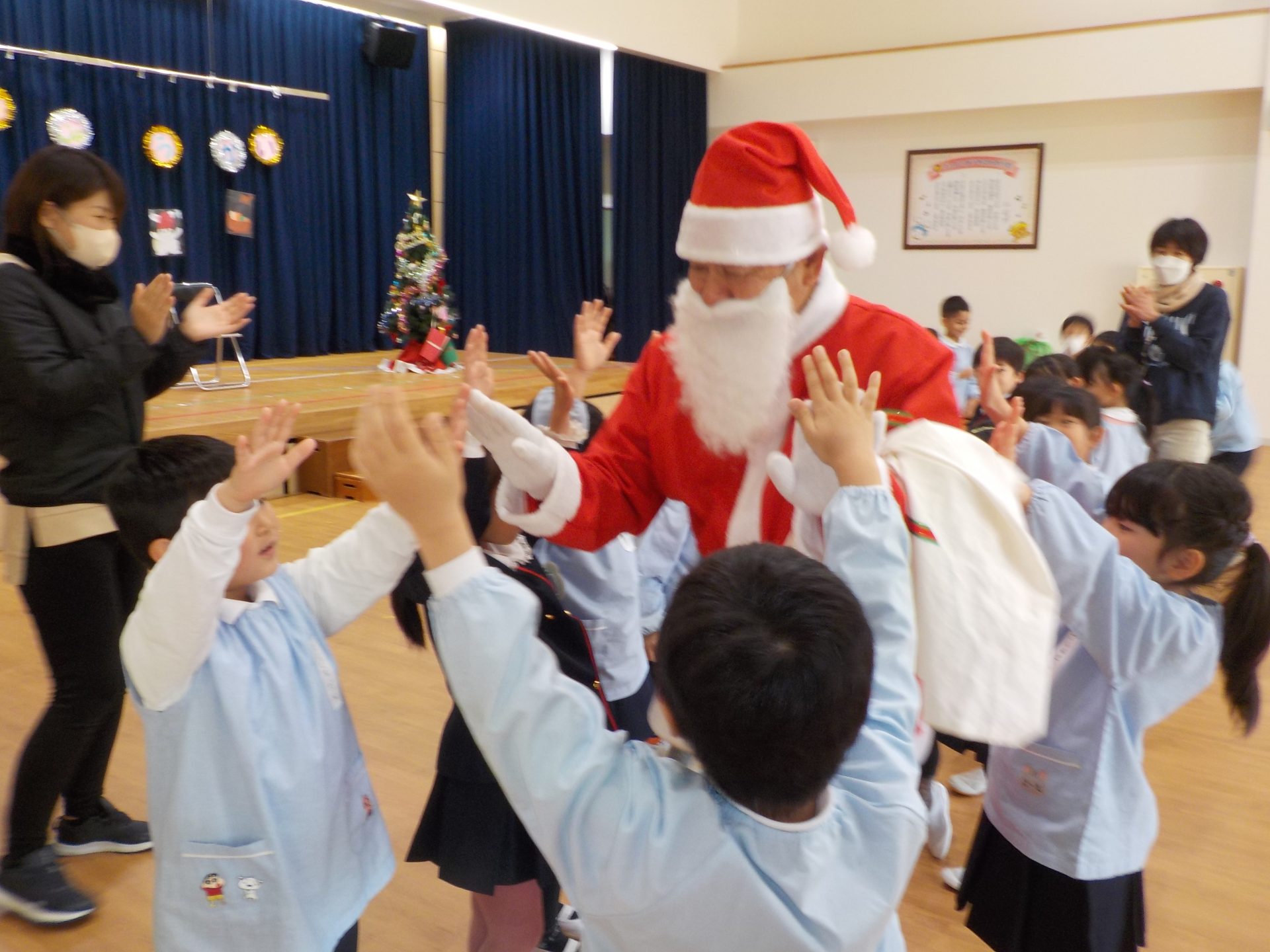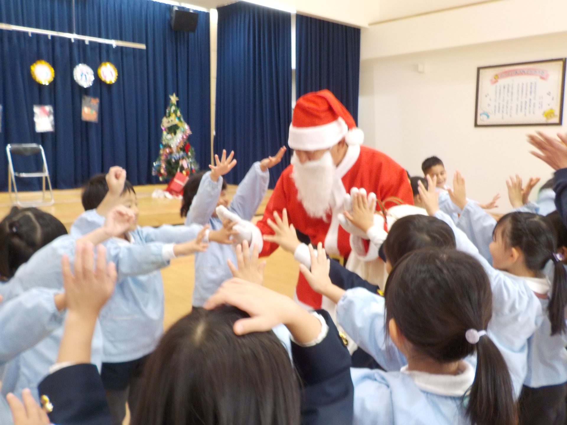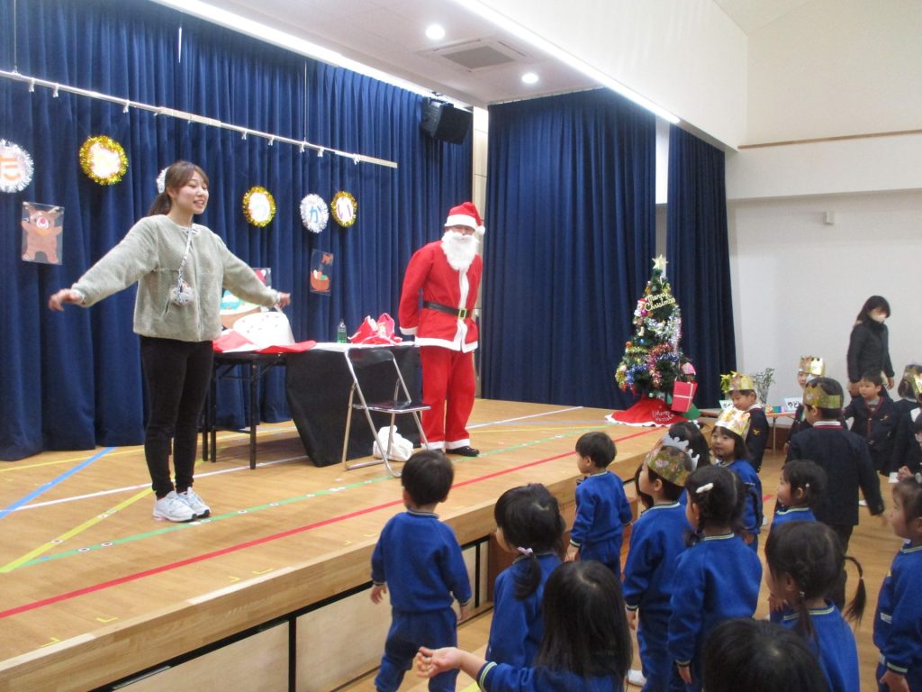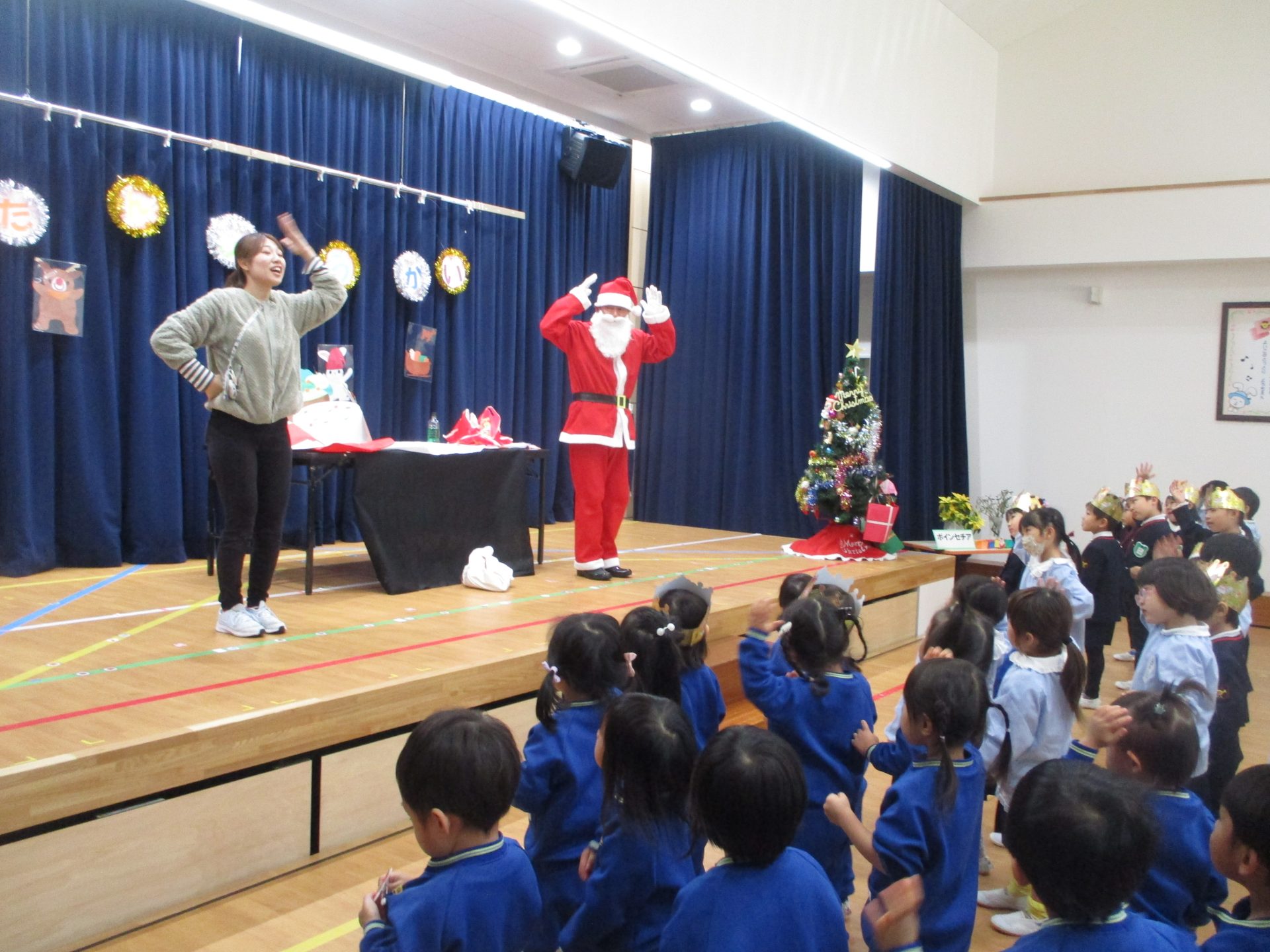 プレゼントのお礼に、サンタさんと一緒に「あわてんぼうのサンタクロース」でダンスをしました。サンタさんもノリノリでダンスしています。
