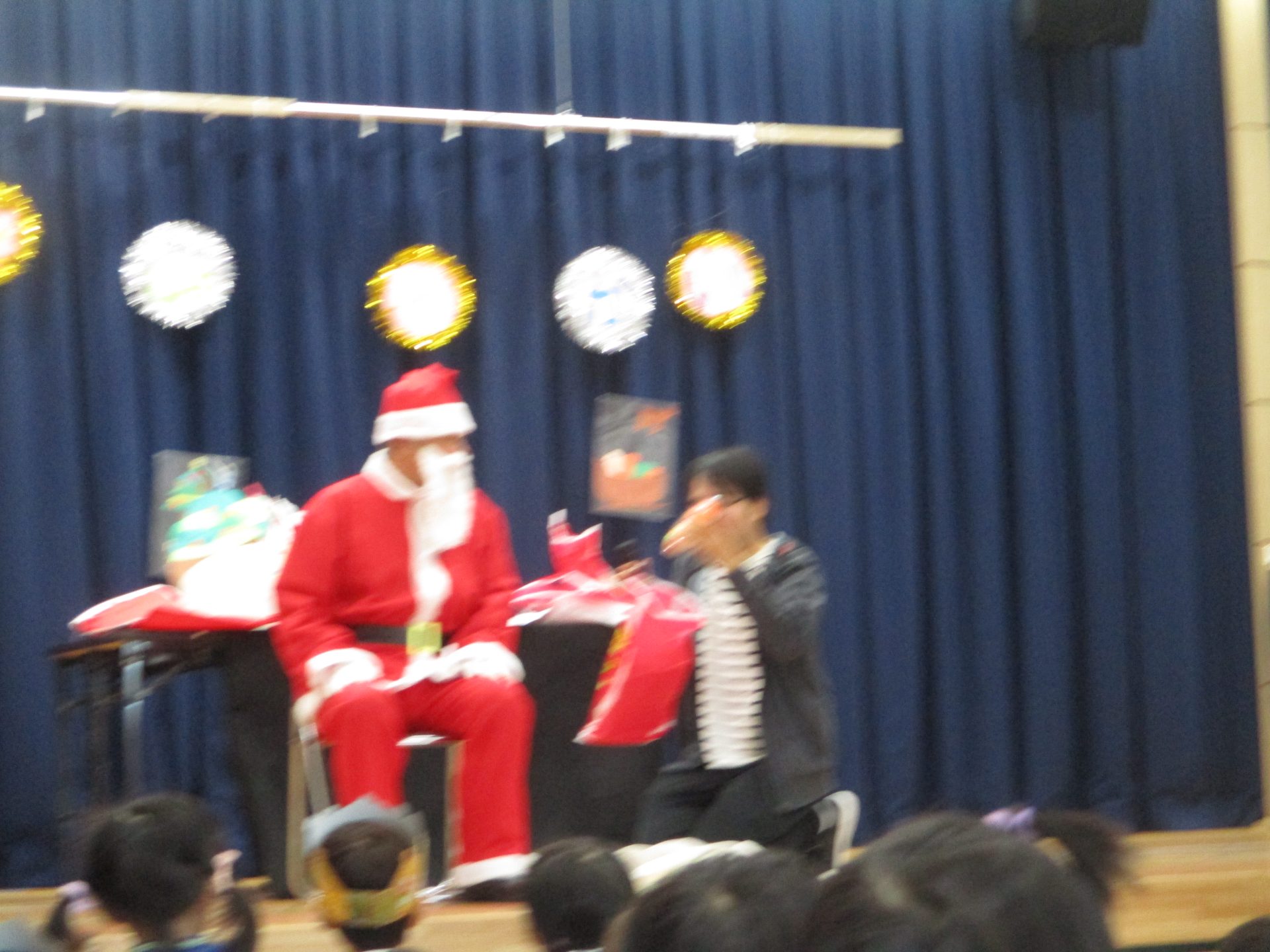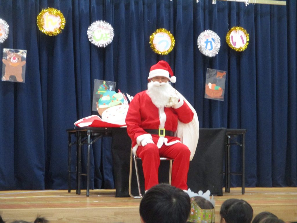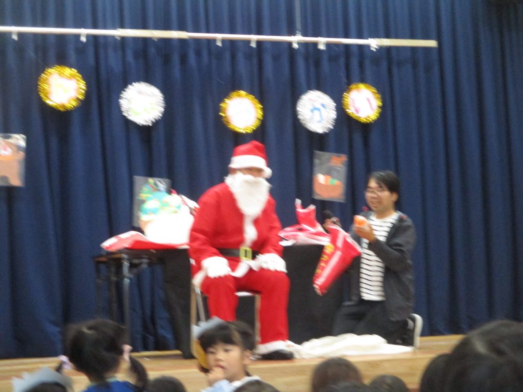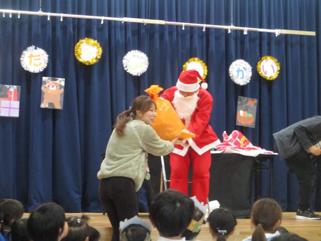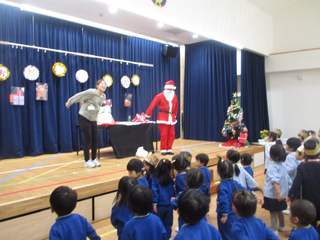そして、劇が終わったすぐ後!どこからか音楽が流れ始め、サンタさんが登場しました!