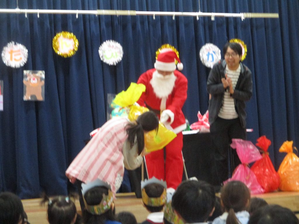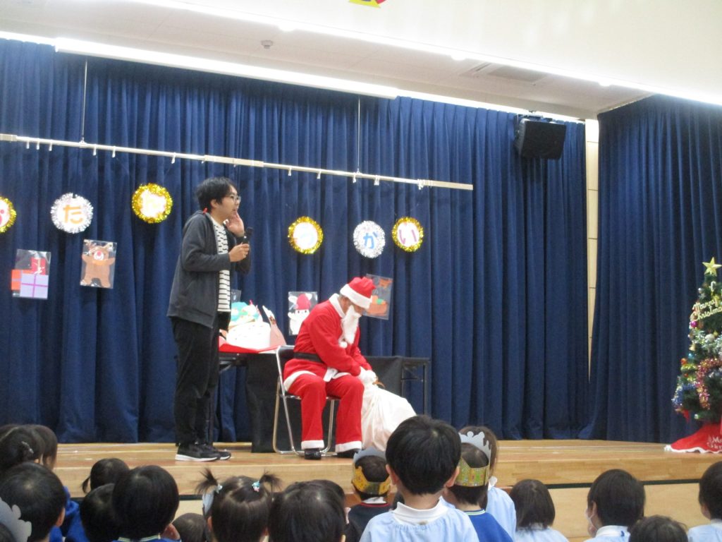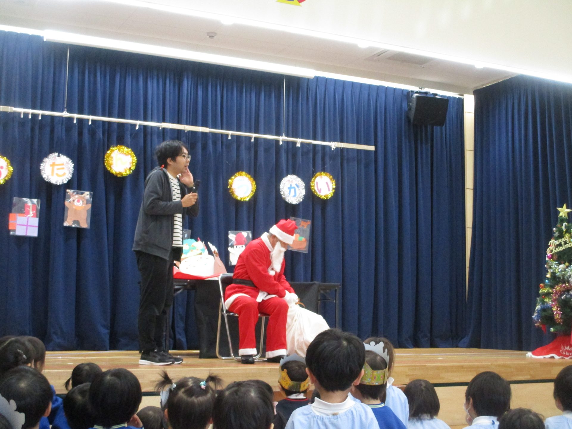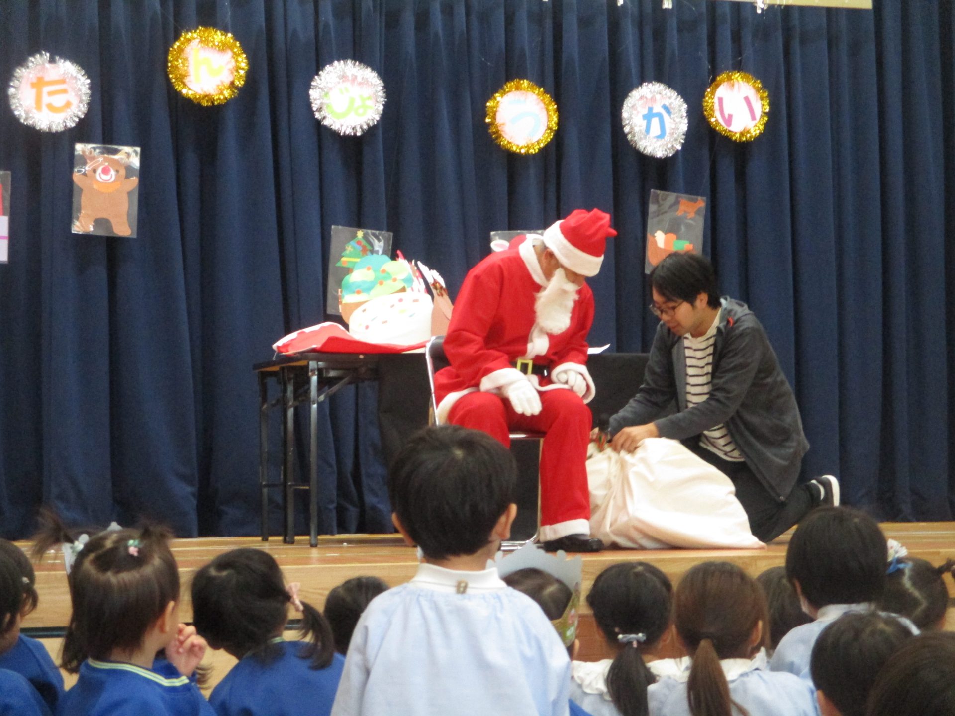 そして、劇が終わったすぐ後!どこからか音楽が流れ始め、サンタさんが登場しました!