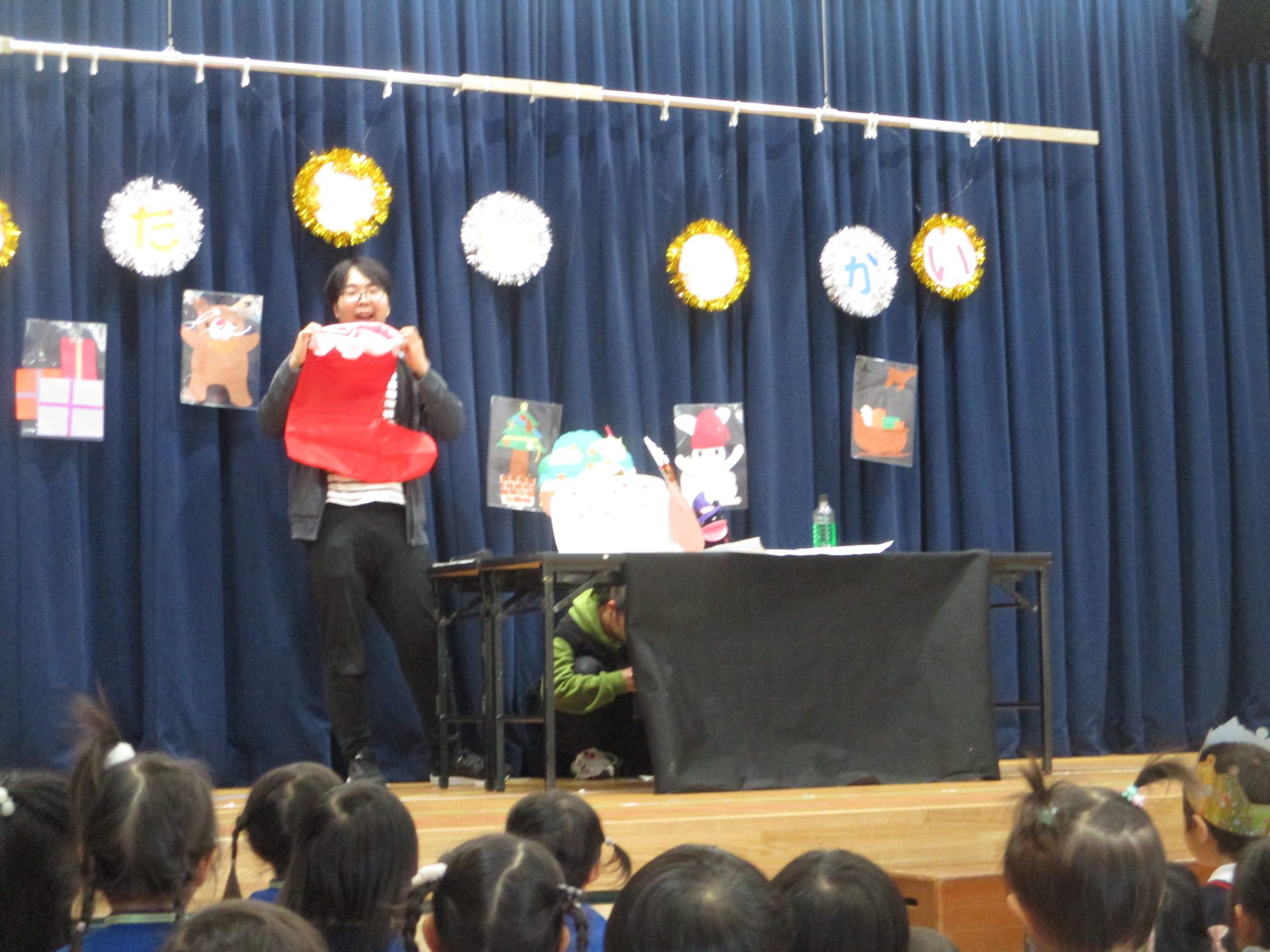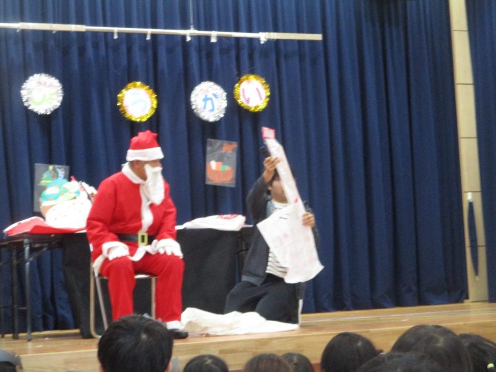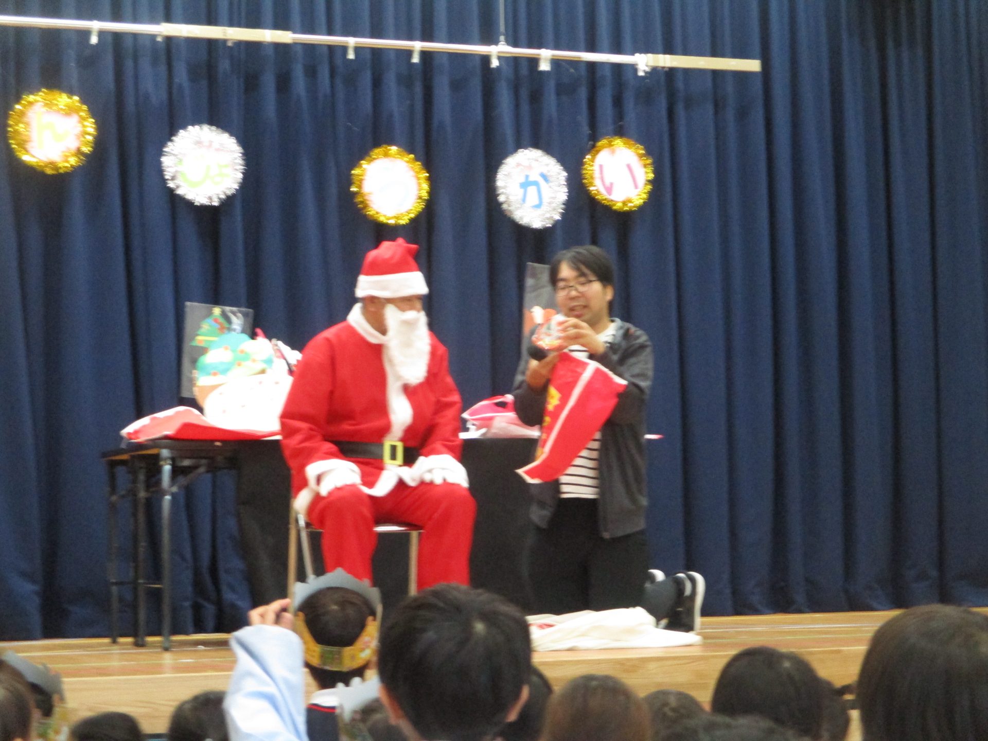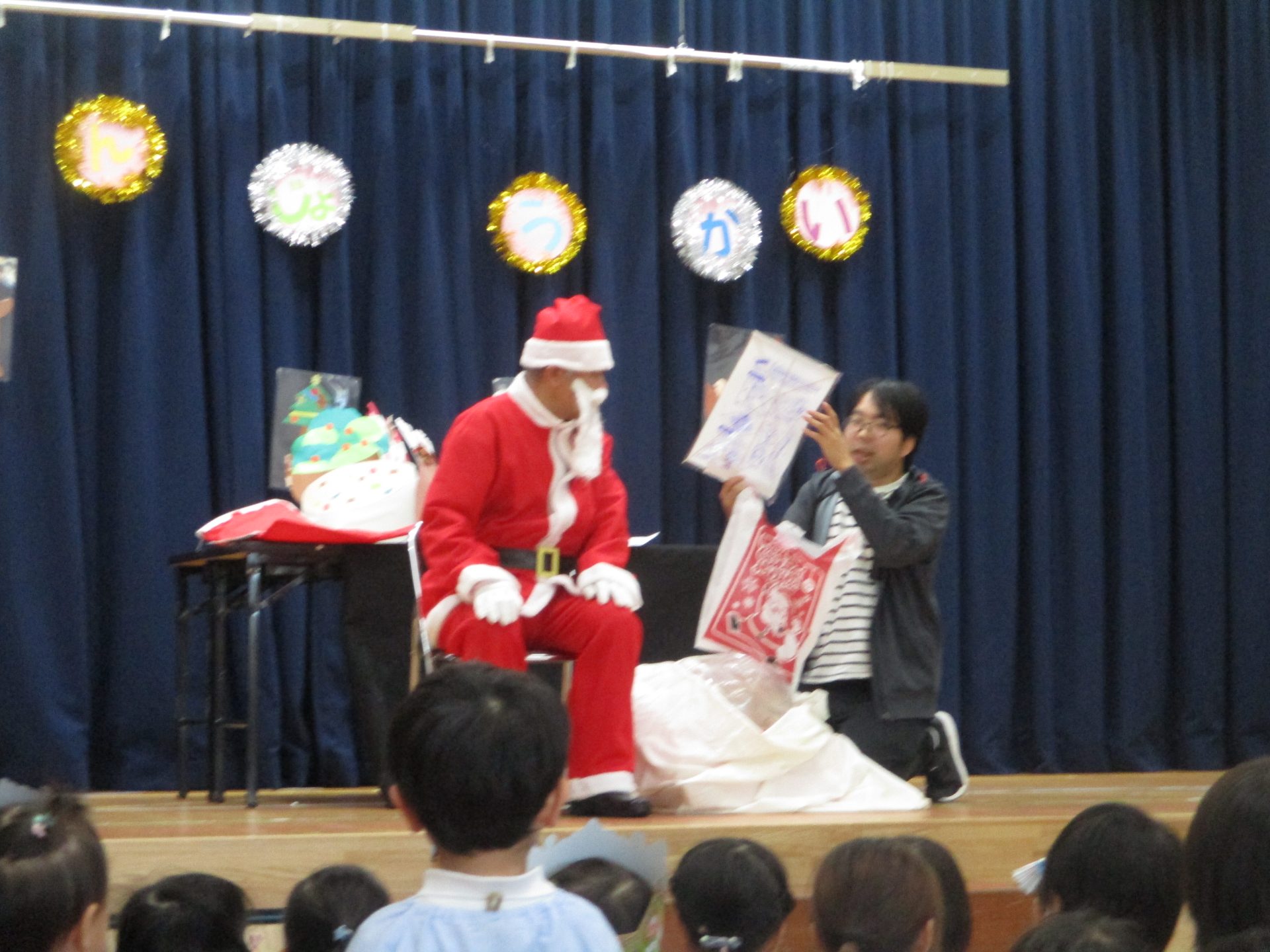 そして、劇が終わったすぐ後!どこからか音楽が流れ始め、サンタさんが登場しました!