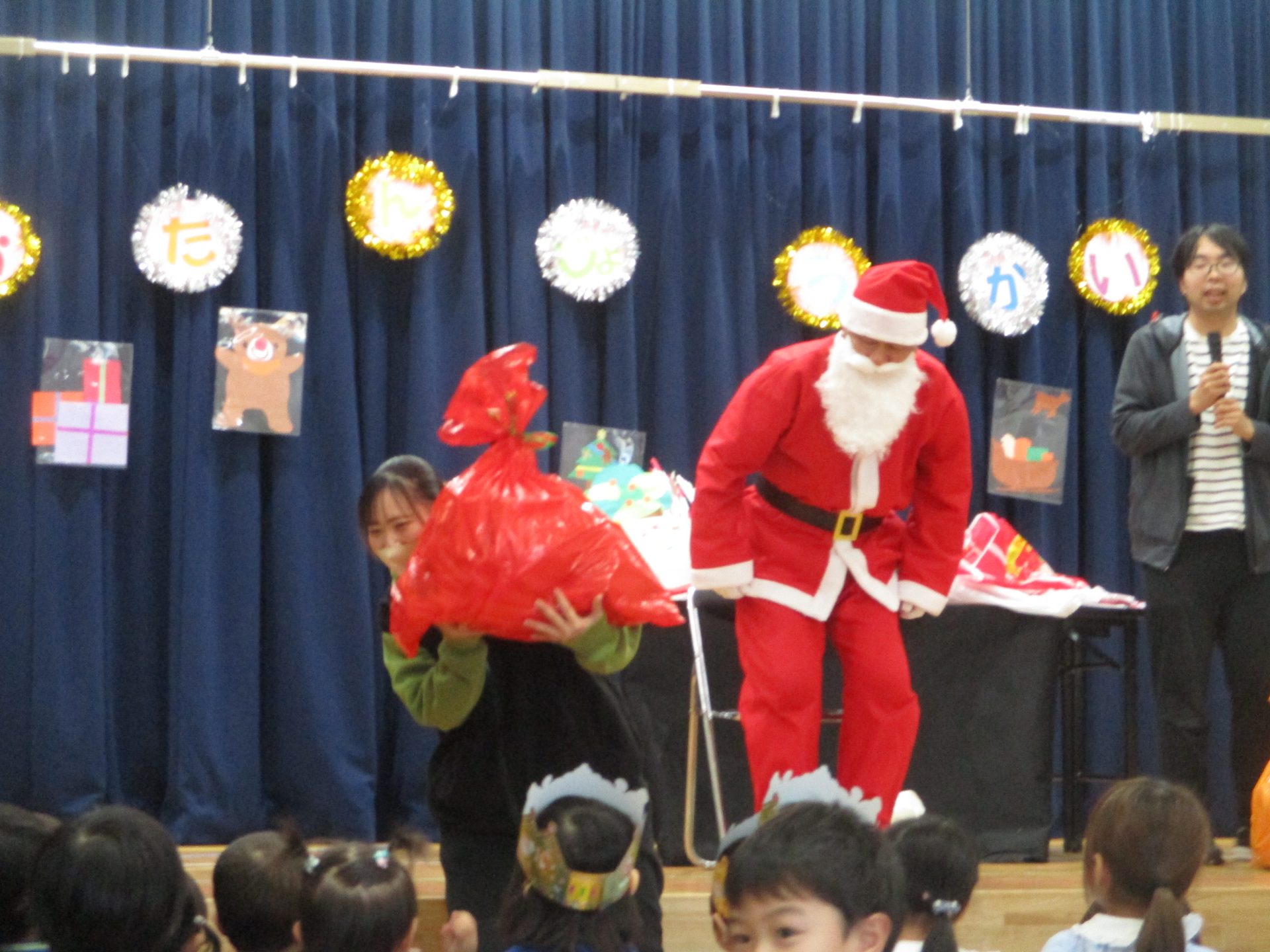 もちろんプレゼントは子ども達全員分あります。お部屋の先生がプレゼントを受け取り、子ども達は大盛り上がりでした。