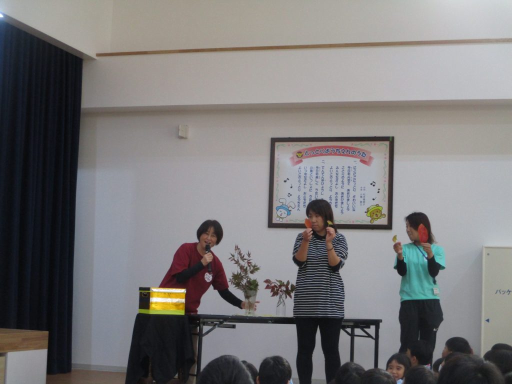 園長先生からは紅葉した綺麗な葉っぱや秋に美味しい柿を紹介してもらいました!