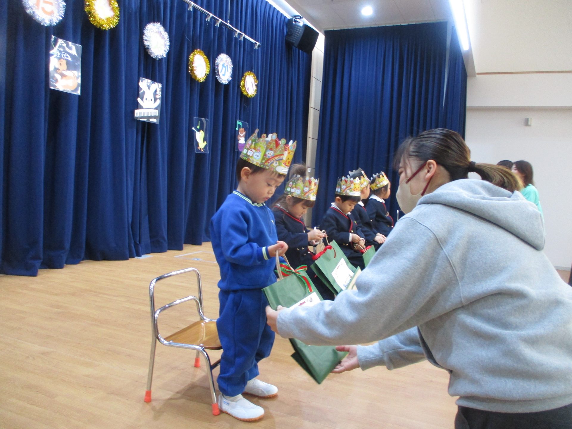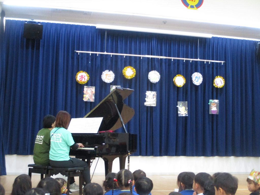 年中組がバルーンで披露していた「愛のしるし」や年長組が歌っている「遠き山に日は落ちて」など一緒に子ども達も口ずさみながら楽しんでいました!