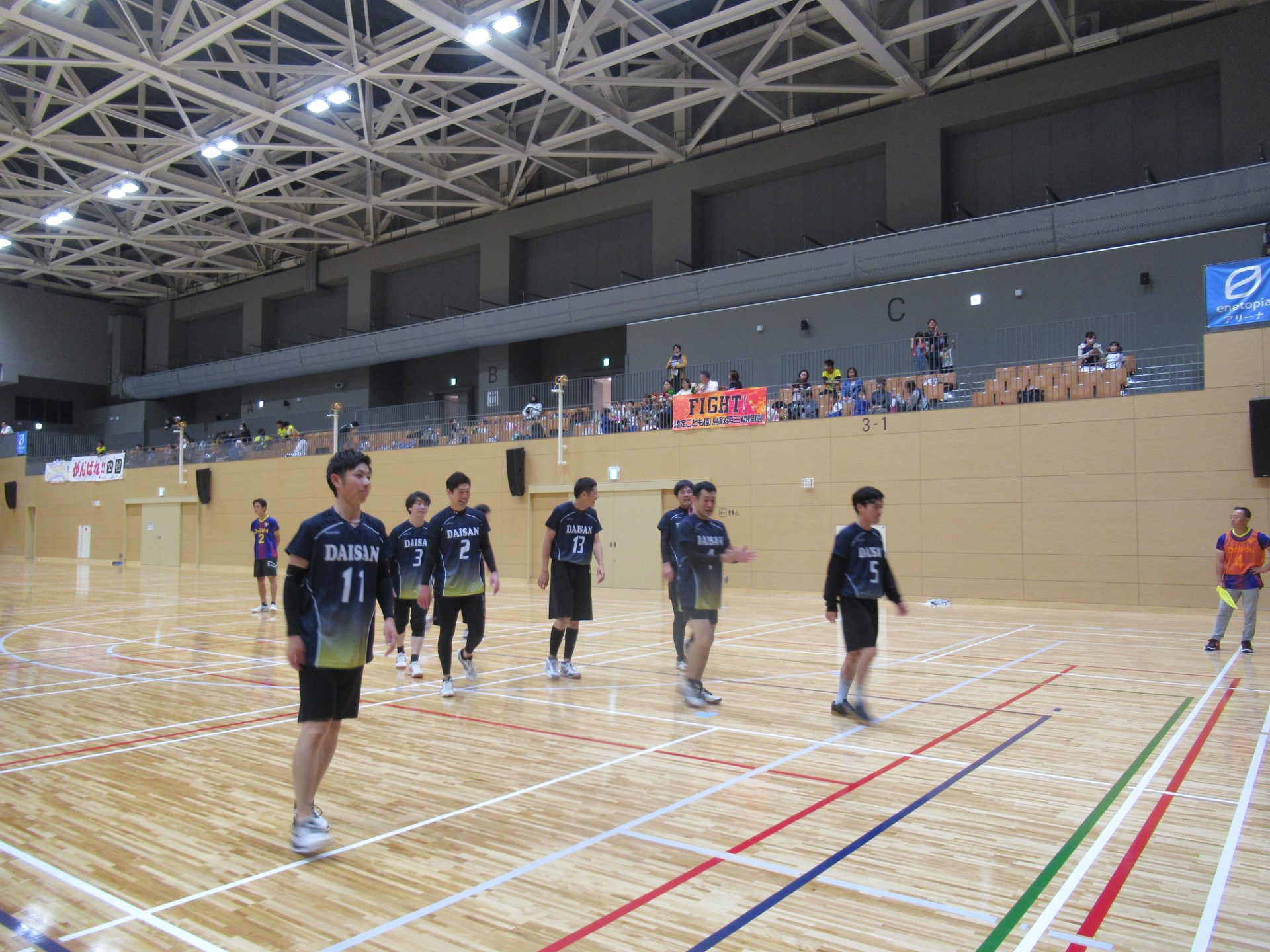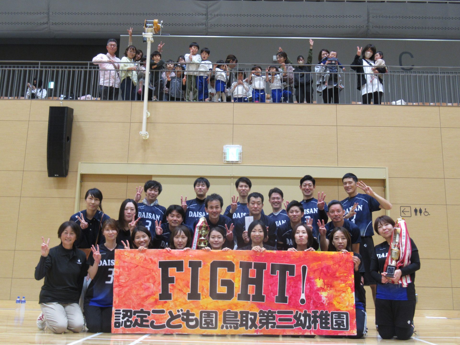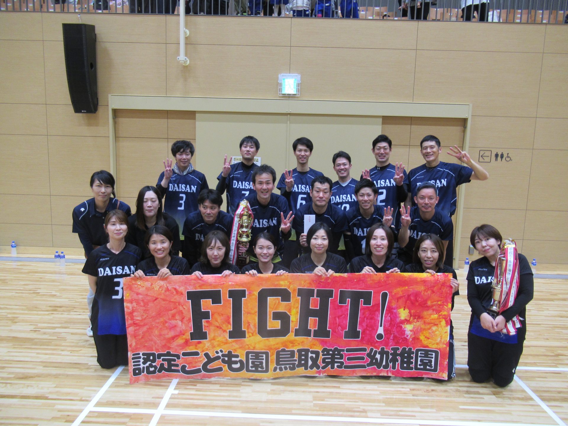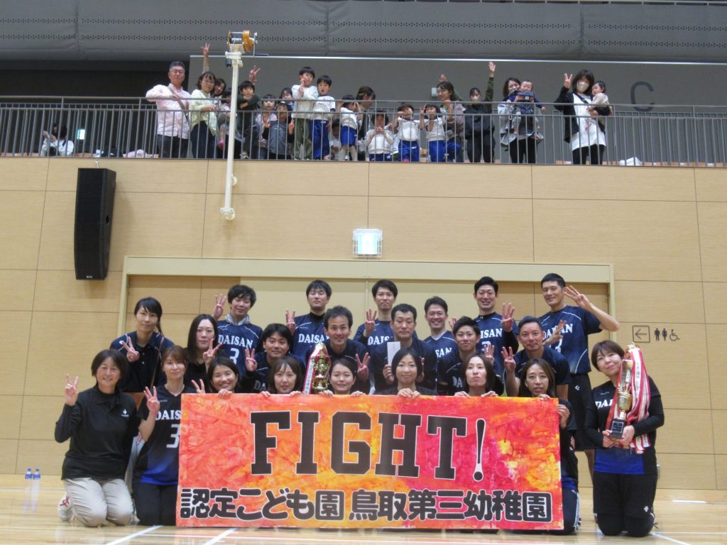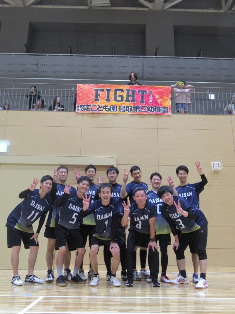 11月4日(土)鳥取市民体育館にて鳥取幼稚園PTAソフトバレーボール大会が行われました。鳥取第三幼稚園は、男性11名、女性10名の選手の皆さんが参加してくださいました。