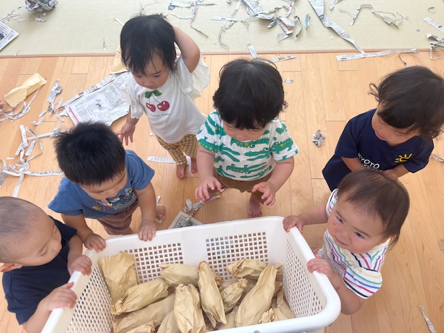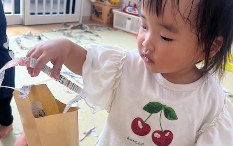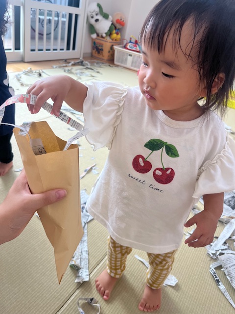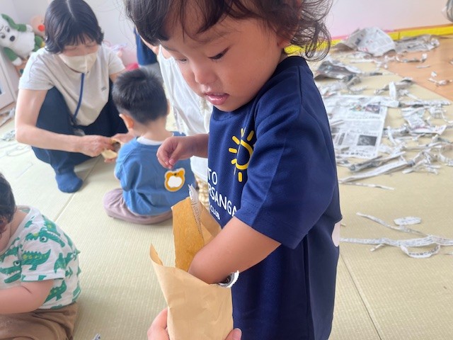 茶色い封筒にちぎった新聞紙を集めては入れて集めては入れてを繰り返しして・・・