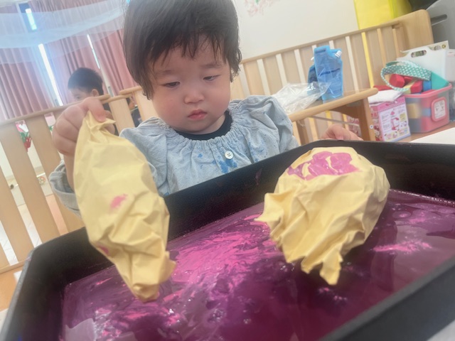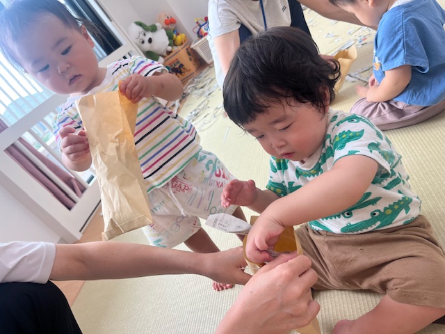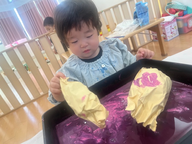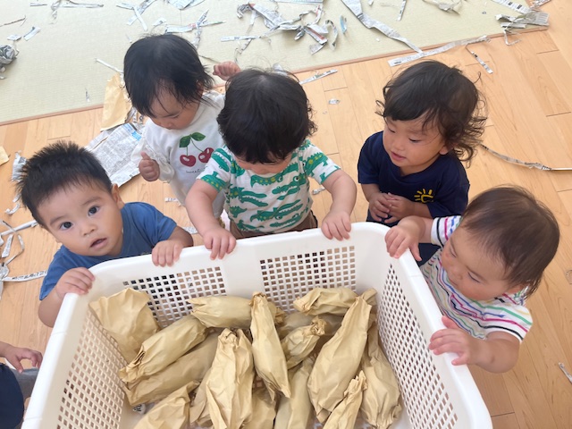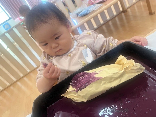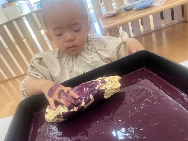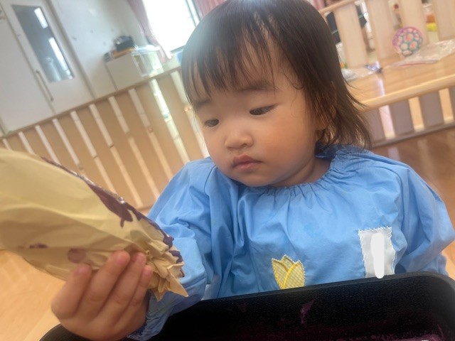 おいもほりに向けて「いもほりのうた」のお歌を歌ったり、さつまいもを制作しました。