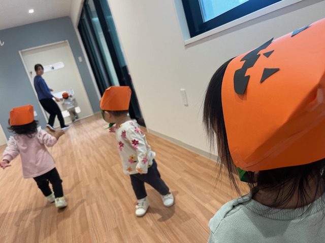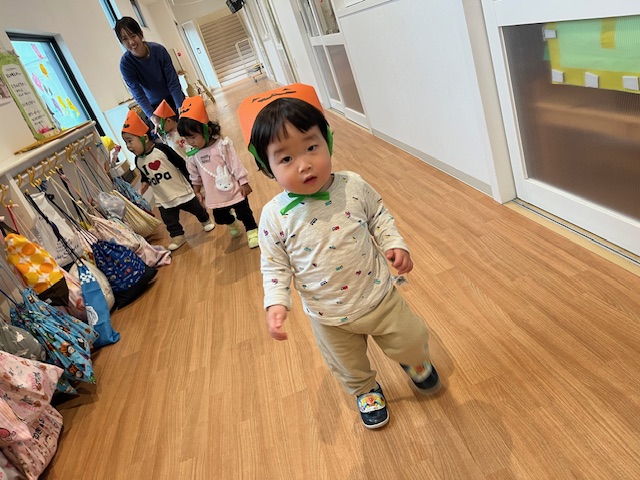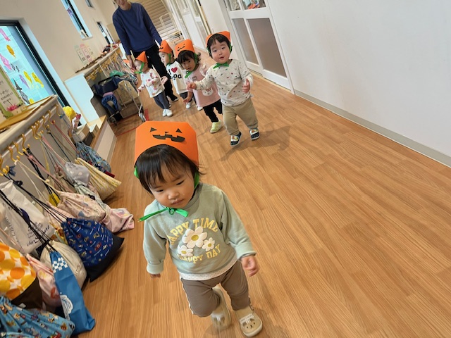 ハロウィン当日には被って園内散歩をしました。歩いていると「可愛い~!」と言われ嬉しそうにしておられました!後ろ姿もかわいい♡